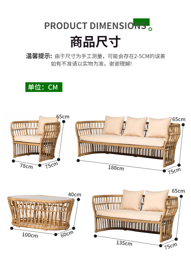 동남 아시아 야외 등나무 소파 코트야드 발코니 레저 야외 야외 홈스테이 방수 더블 등나무 의자 조합스토어 가기