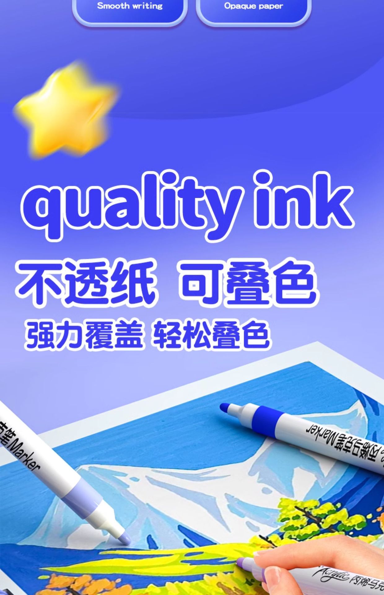 초등학생을위한 아크릴 마커 펜 불투명 한 색 쌓을 수있는 컬러 아트 브러시 어린이의 빨 수있는 수채화 펜 엔 리필 페인팅스토어 가기
