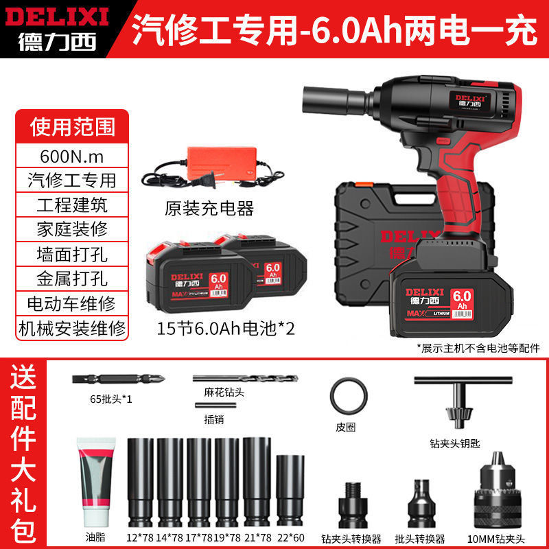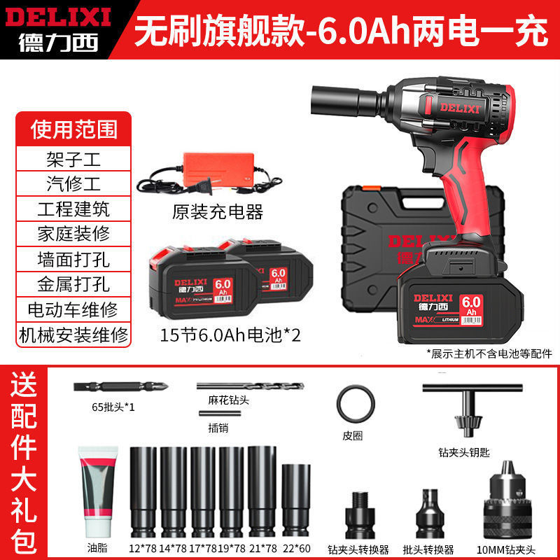 Delixi 대형 토크 전기 렌치 자동 수리공 브러시리스 충전식 리튬 렌치 선반 작업자 공기 총 도구스토어 가기