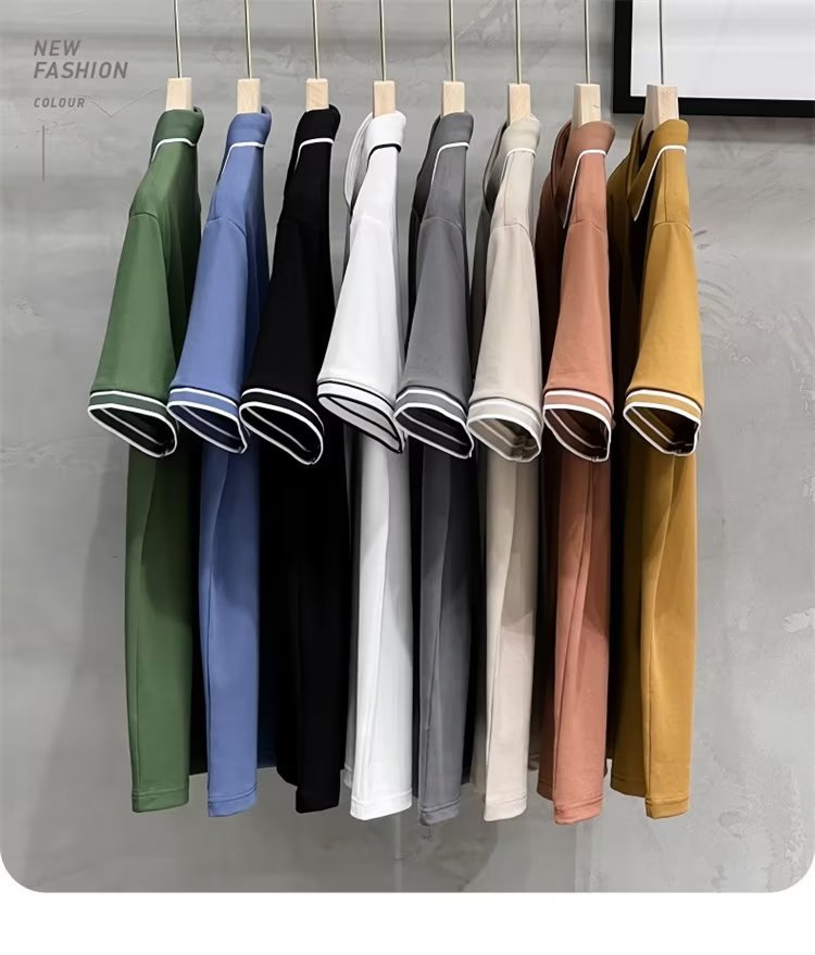 여름 아이스 실크 하이 엔드 남자 올 매치 반팔 탑 얇은 라인 스트라이프 패션 캐주얼 옷깃 티셔츠베이스 폴로 셔츠스토어 가기