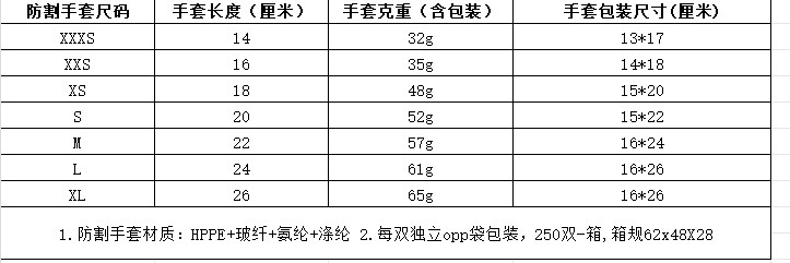 • 레벨 5 절단 방지 PU 고무 M(파란색 가장자리 또는 기타 가장자리)