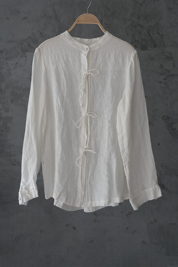원래 봄과 여름 캐주얼 예술적 목가적 인 레이스 업 리넨 셔츠 자연 경량 차양 카디건 탑 S21022스토어 가기