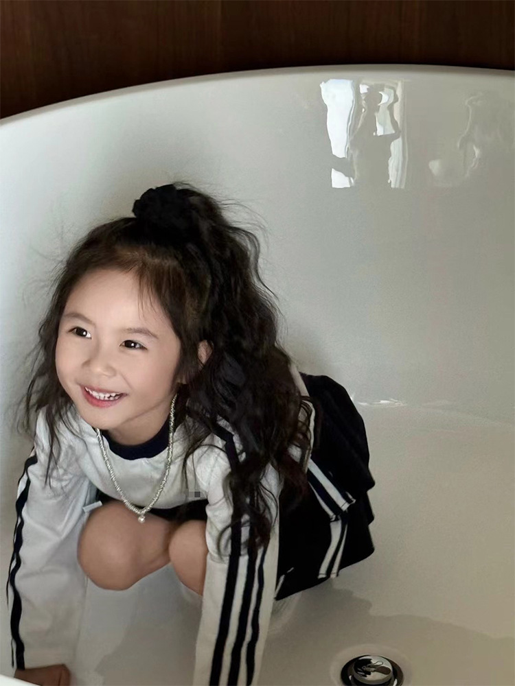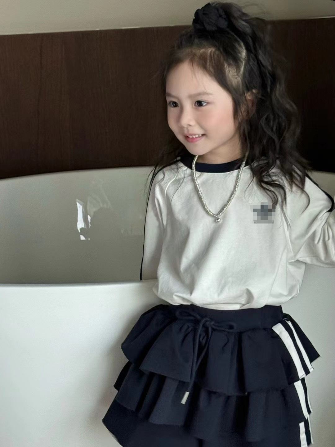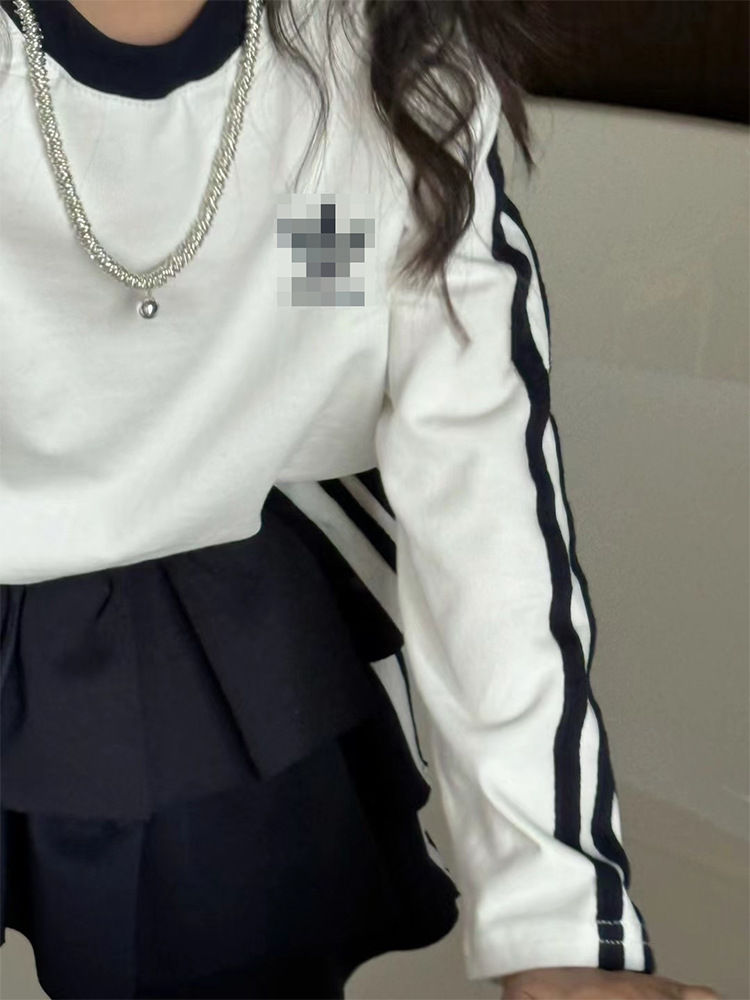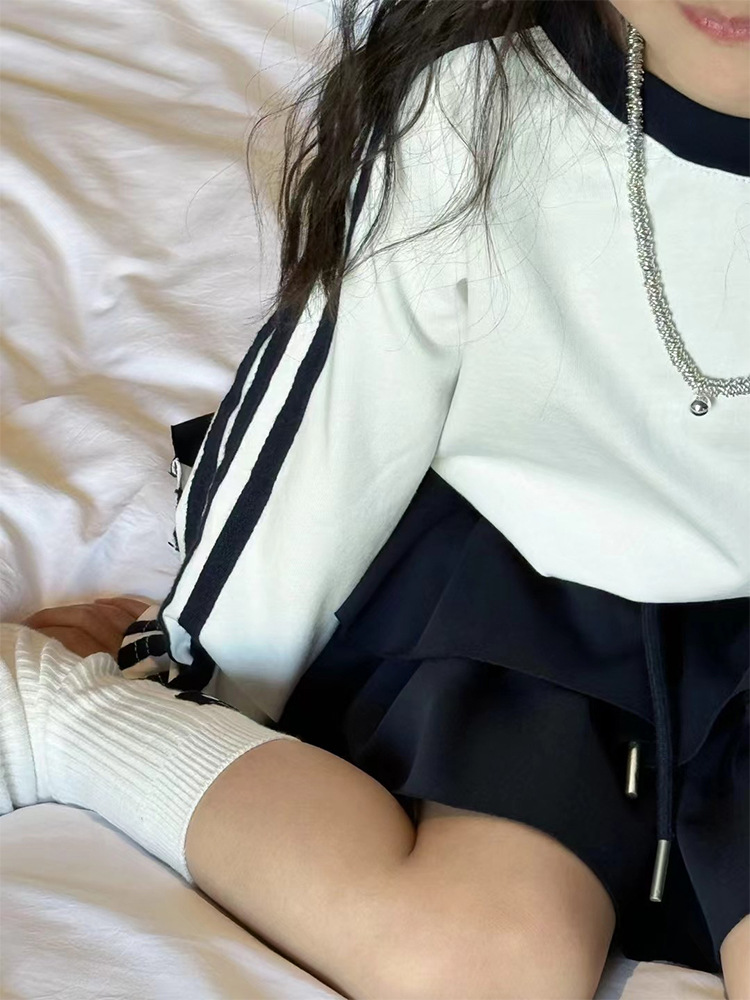 소녀 한국식 R25010 컬러 블록 3 바 티셔츠 탑 봄 새로운 세련된 케이크 스커트 패션 세트스토어 가기