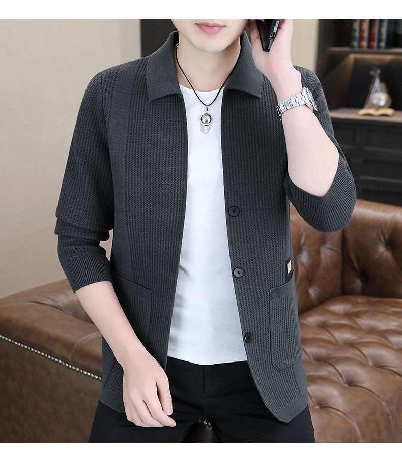 대외 무역 남성 봄과 가을 새 옷깃 배지 카디건 스웨터 조수 청소년 남성 캐주얼 긴팔 스웨터스토어 가기