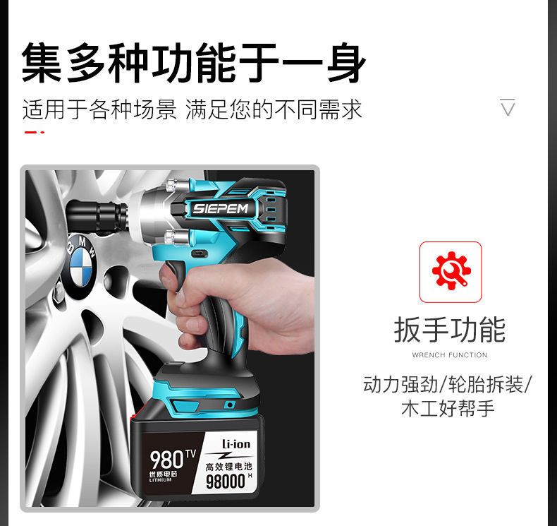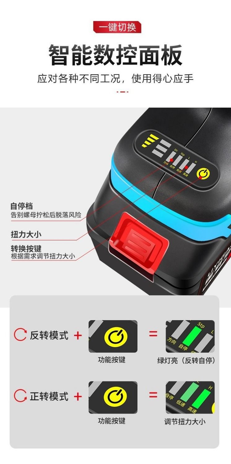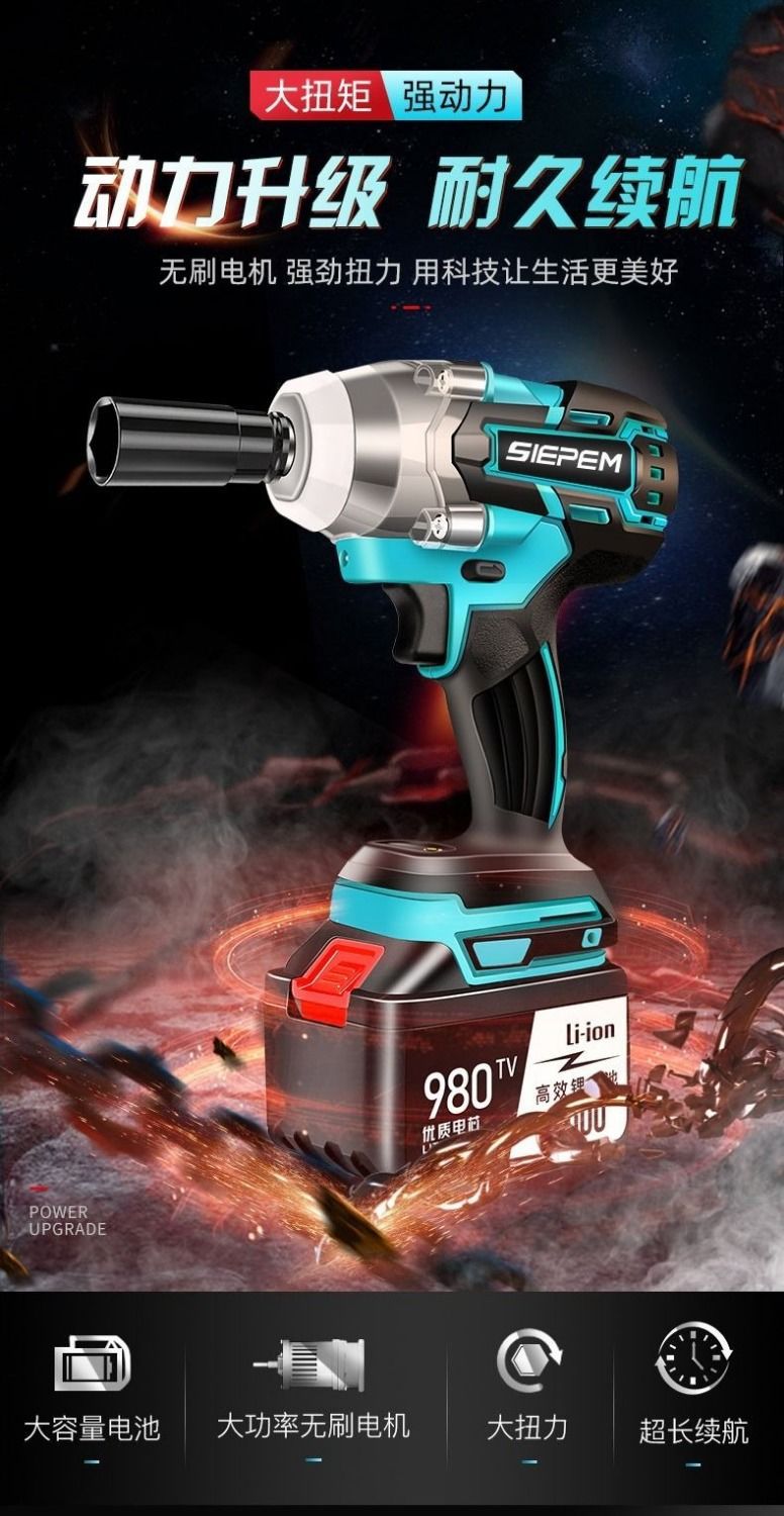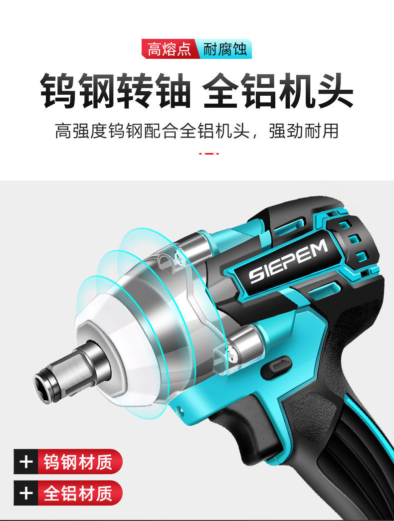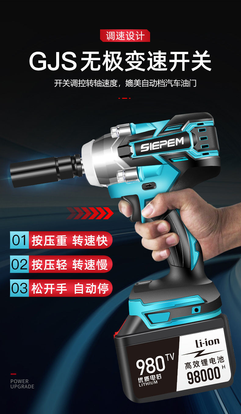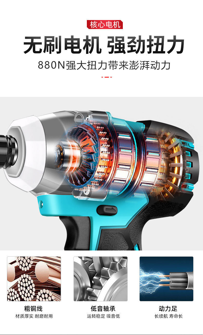 독일 브러시리스 전기 렌치 충격 리튬 배터리 충전 렌치 자동 수리공 발 손 발판 목공 전기 공기 대포