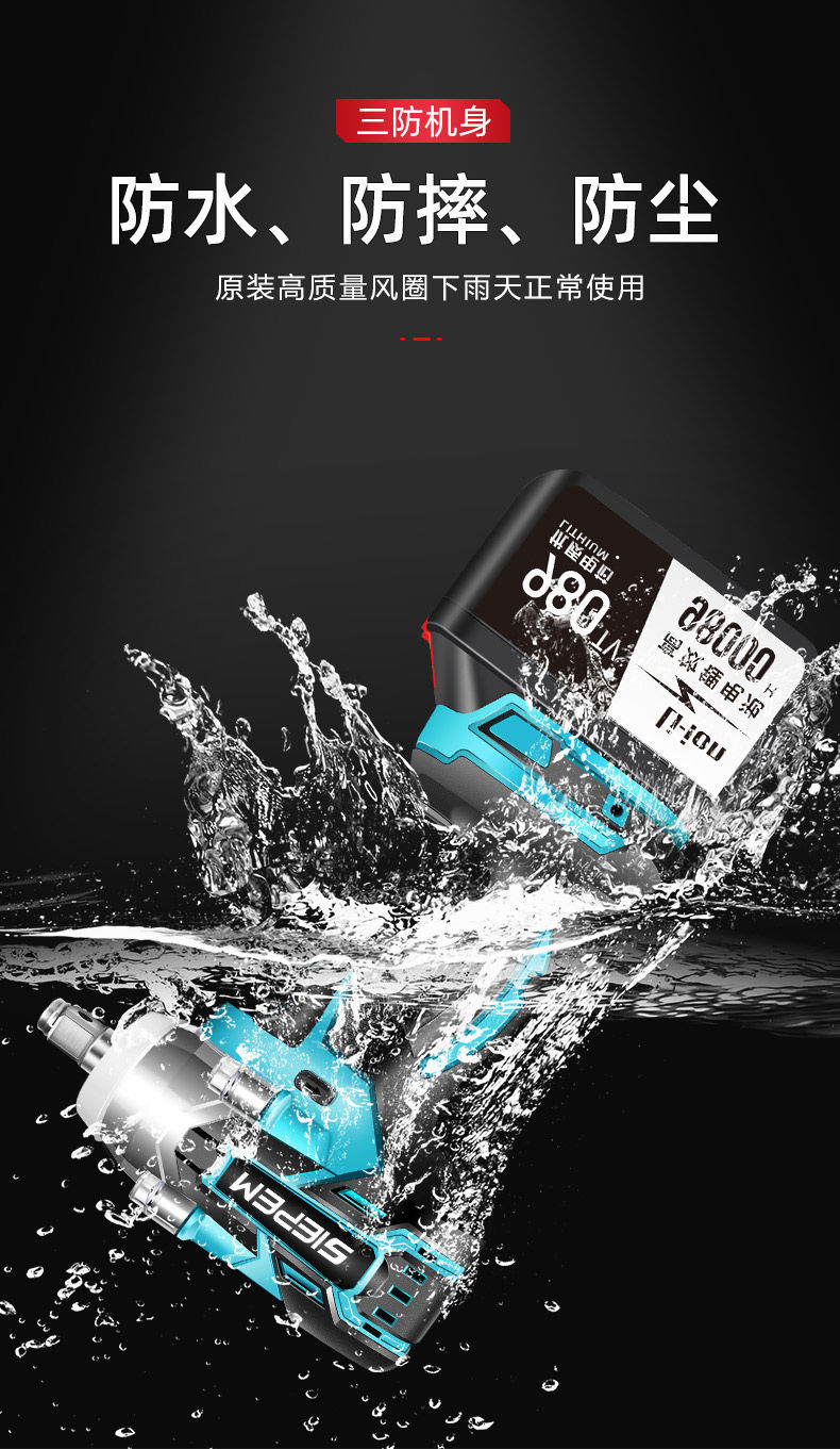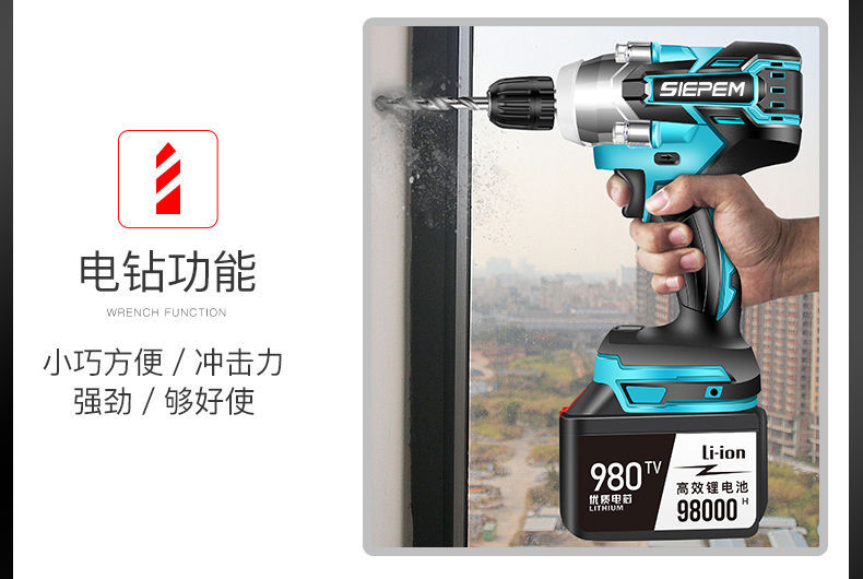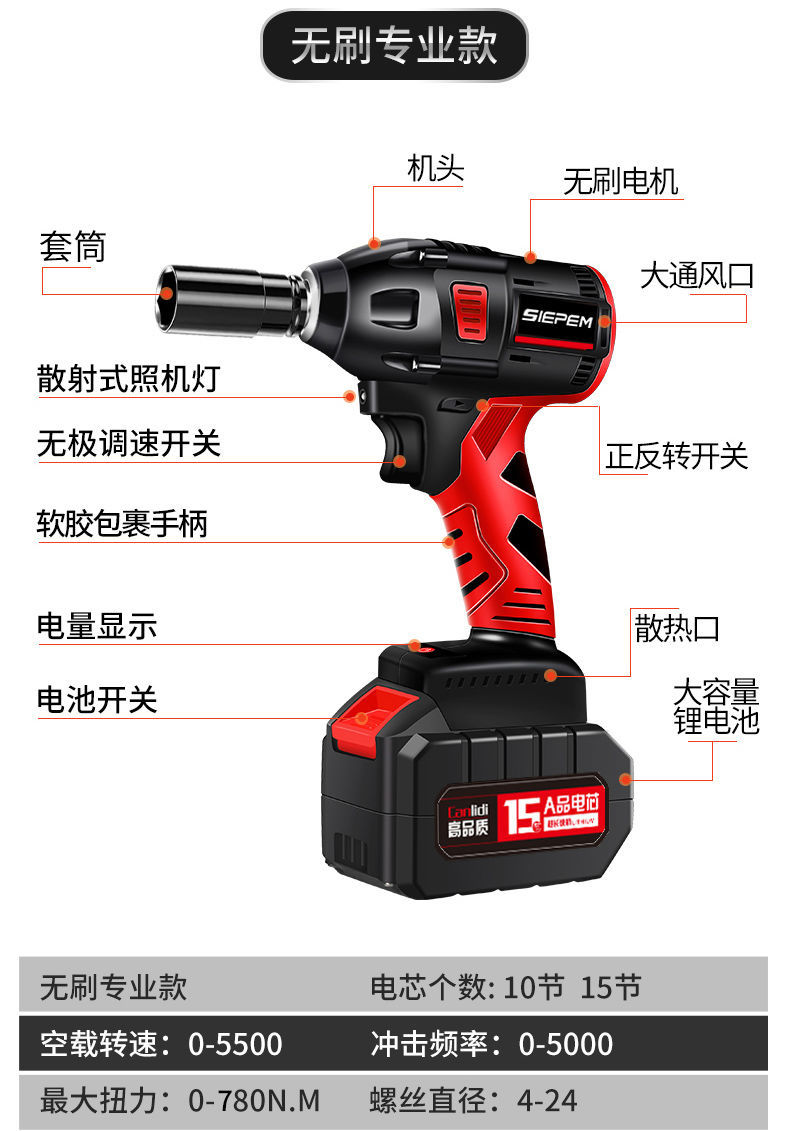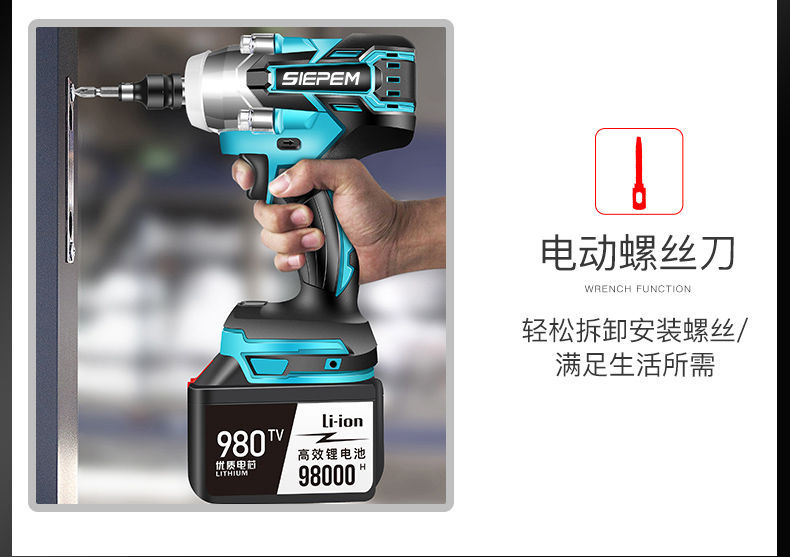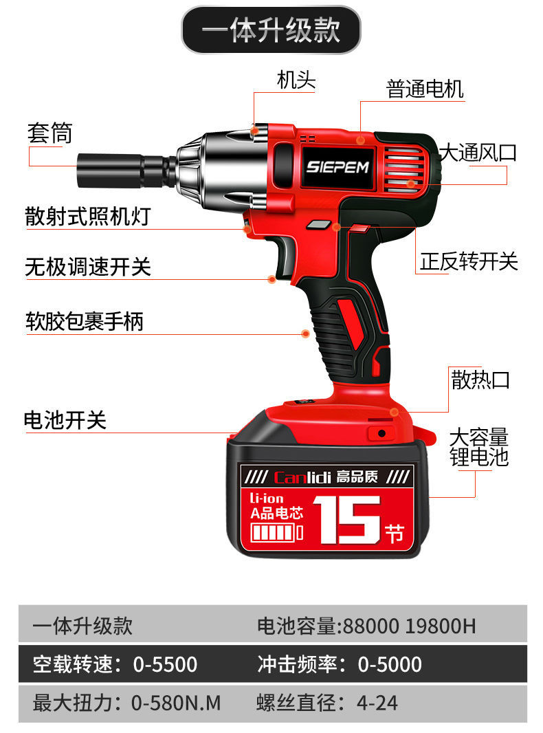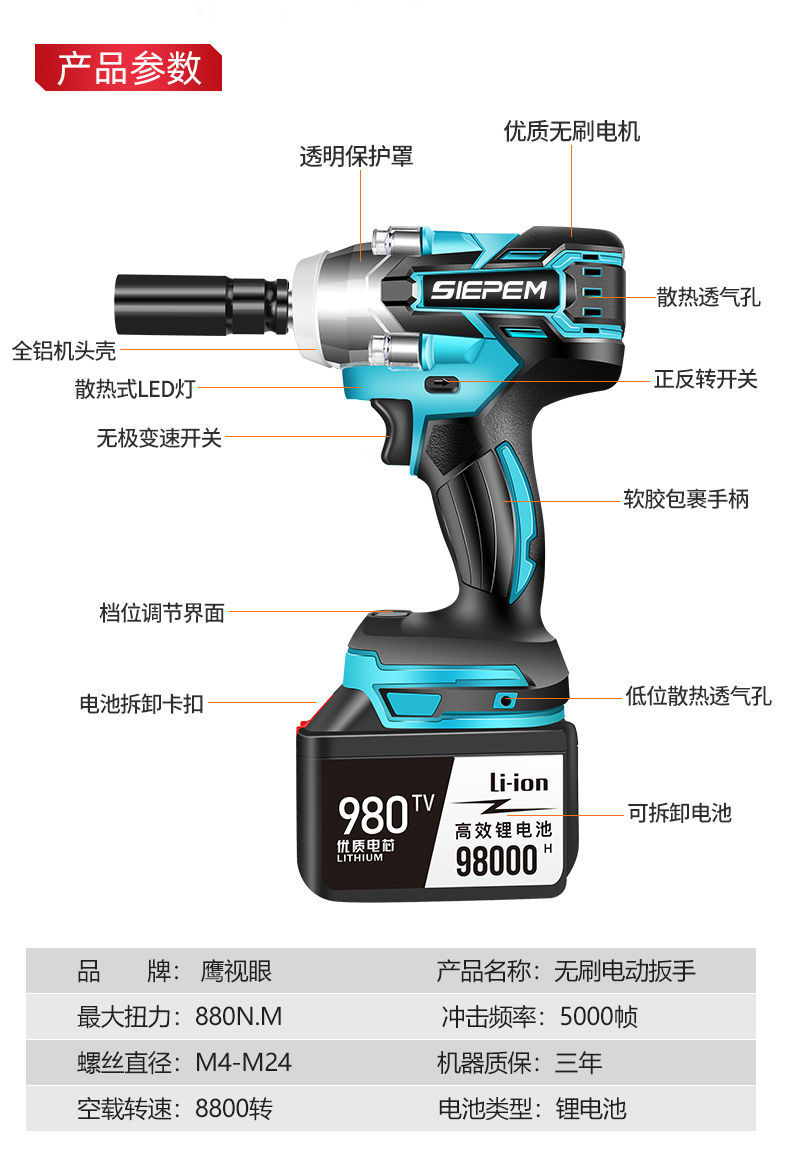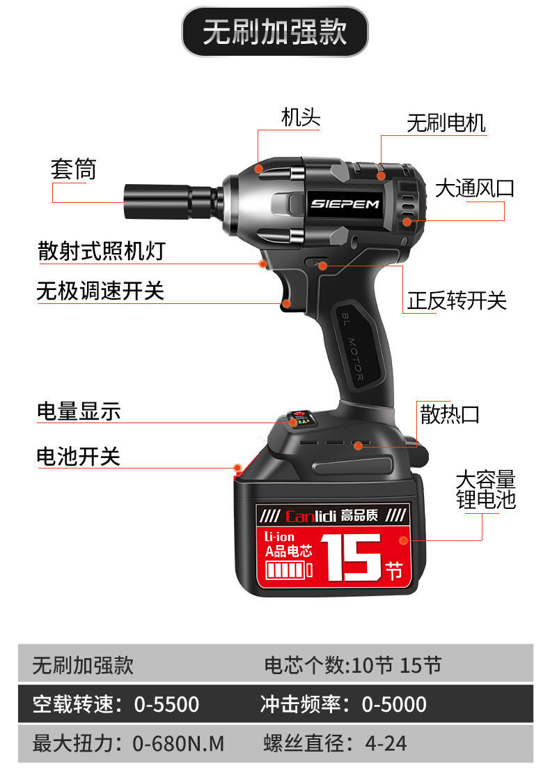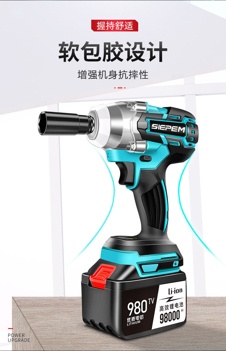 독일 브러시리스 전기 렌치 충격 리튬 배터리 충전 렌치 자동 수리공 발 손 발판 목공 전기 공기 대포