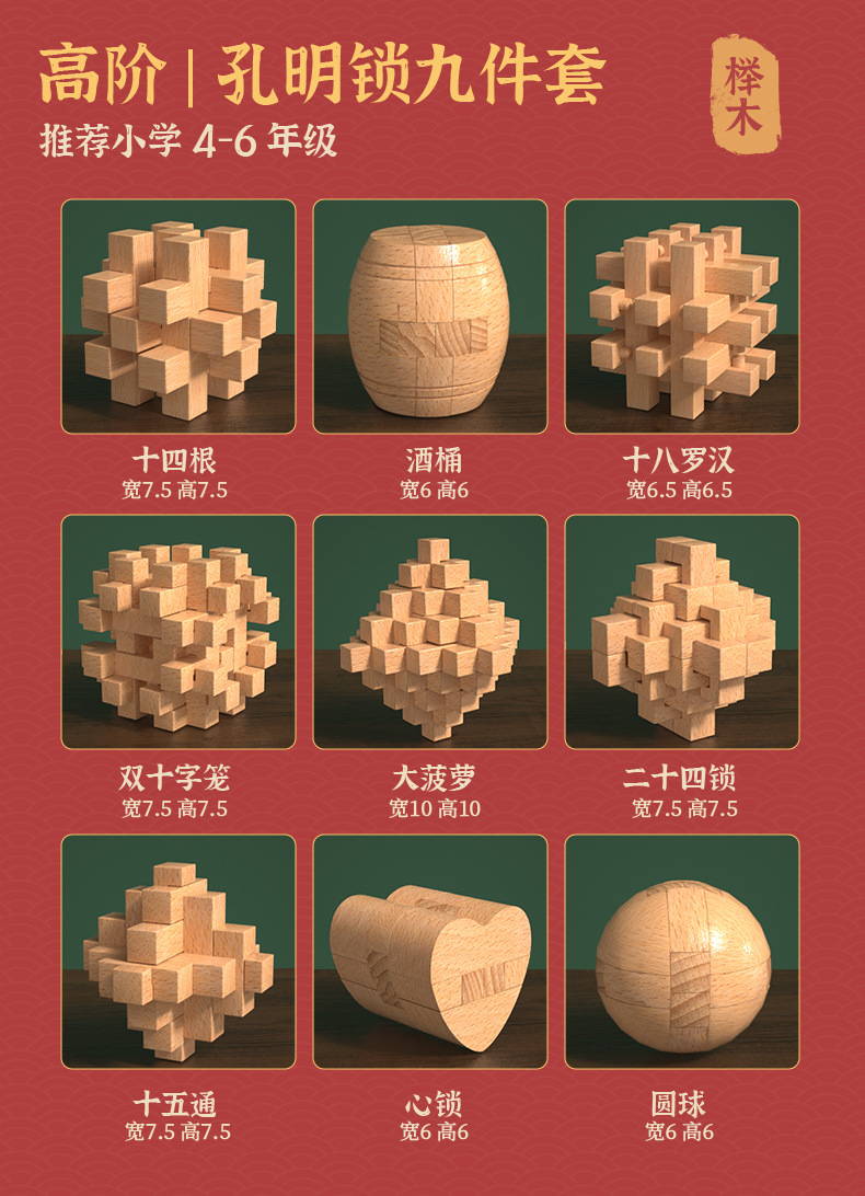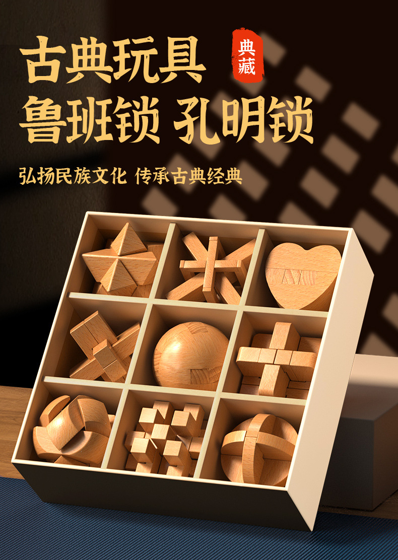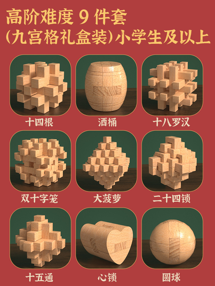 Luban Lock Kongming Lock 초등학생 인텔리전스 잠금 풀 세트 Mortise 및 Tenon 빌딩 블록 8-12 세 어린이 교육 완구스토어 가기