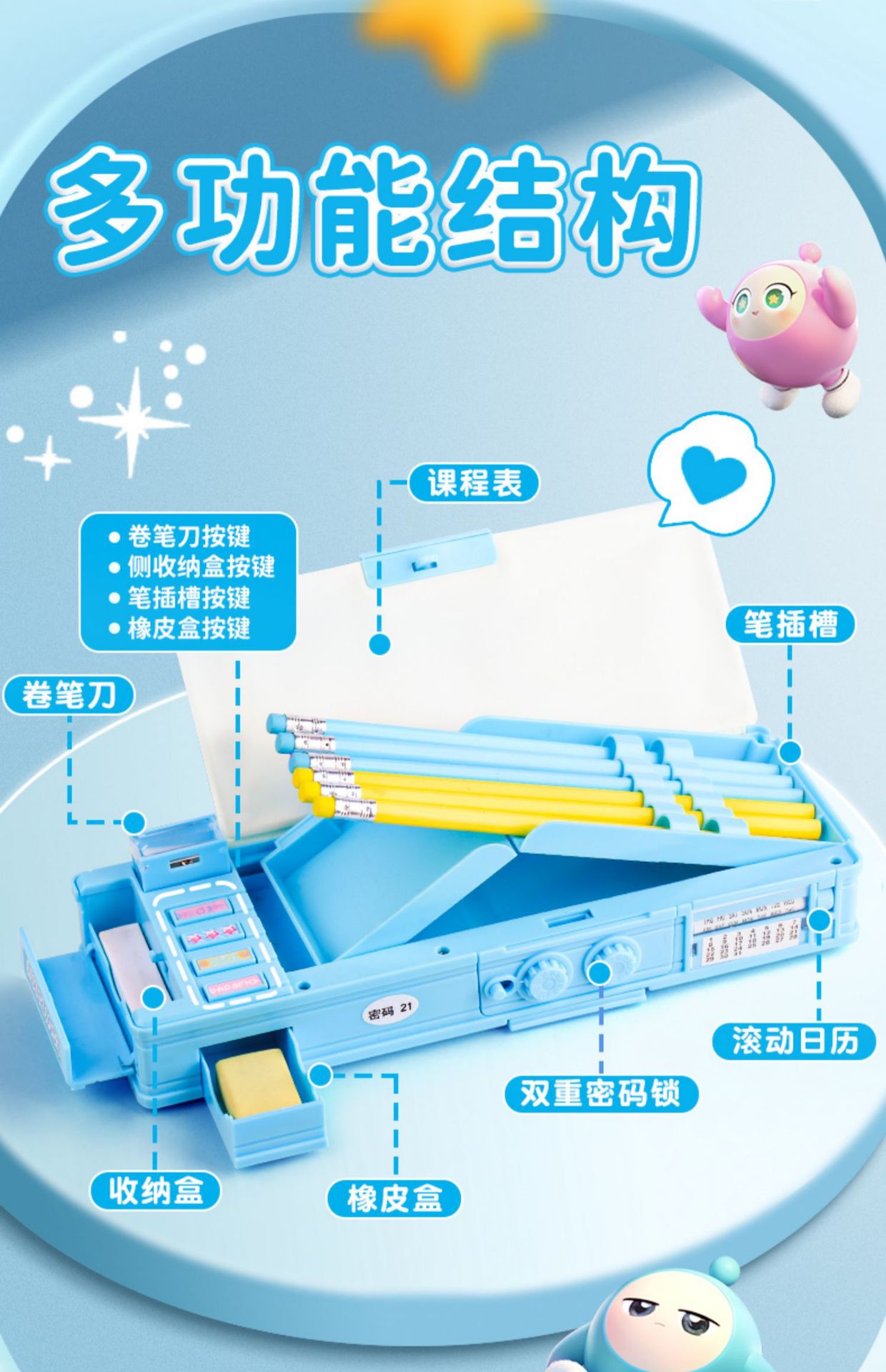 계란 파티 비밀번호 문구 상자 소녀 소년 어린이 연필 케이스 여성 초등학생 2025 새로운 1 년스토어 가기
