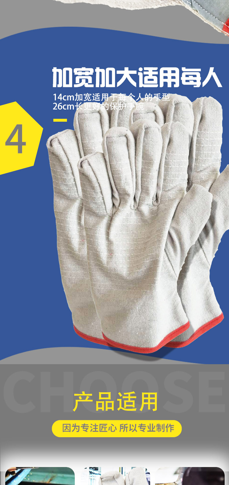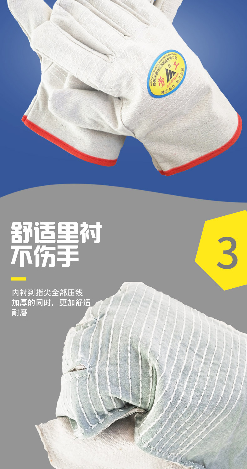 노동 브랜드 흰색 갑옷 24 라인 이중층 두꺼운 내마모성 용접 금속 절단 및 취급 노동 보호 캔버스 장갑스토어 가기
