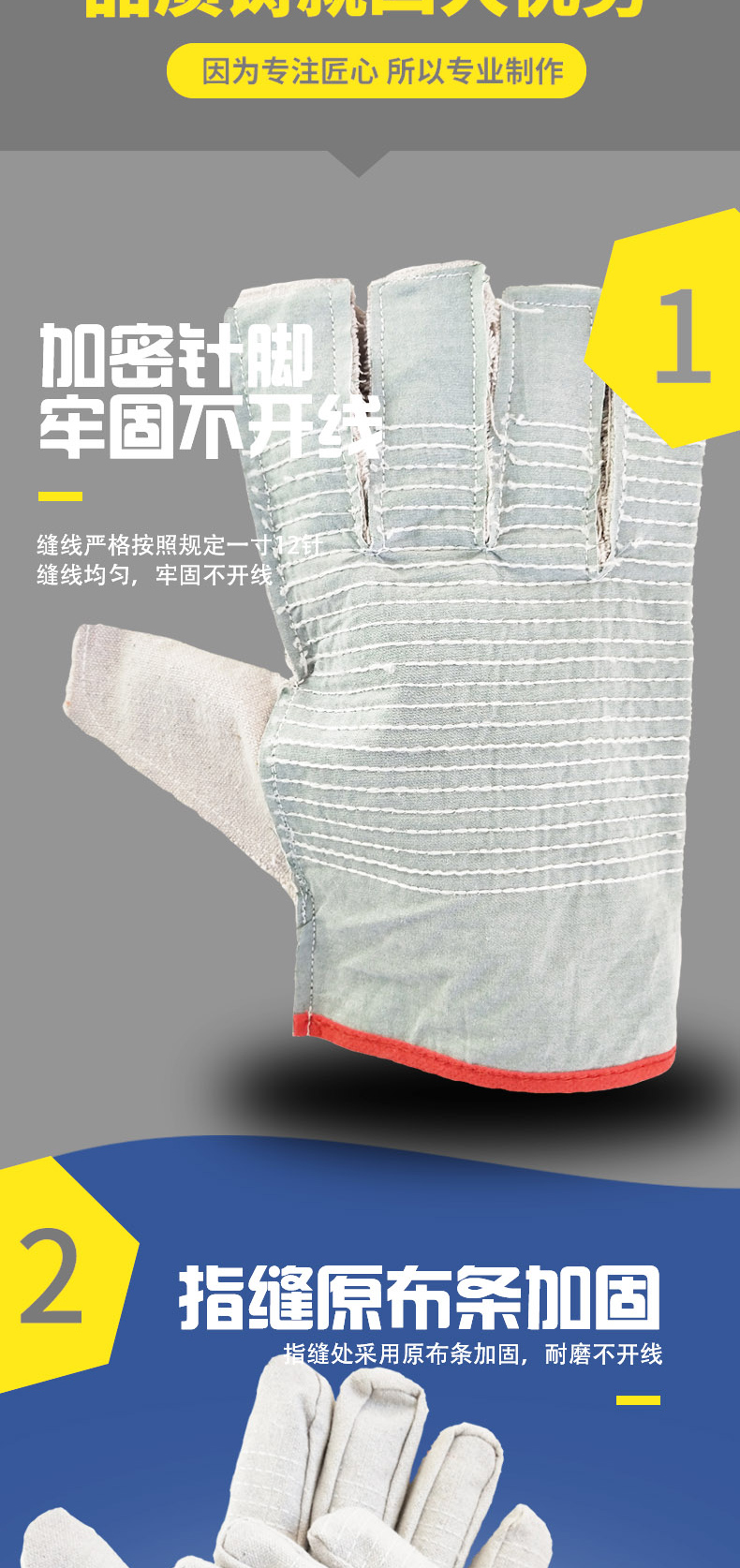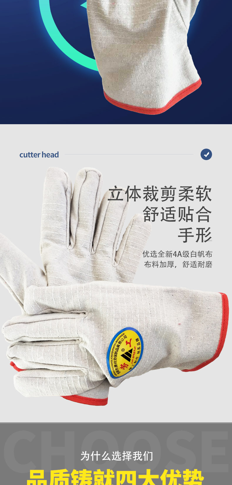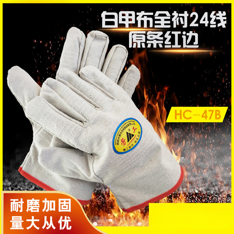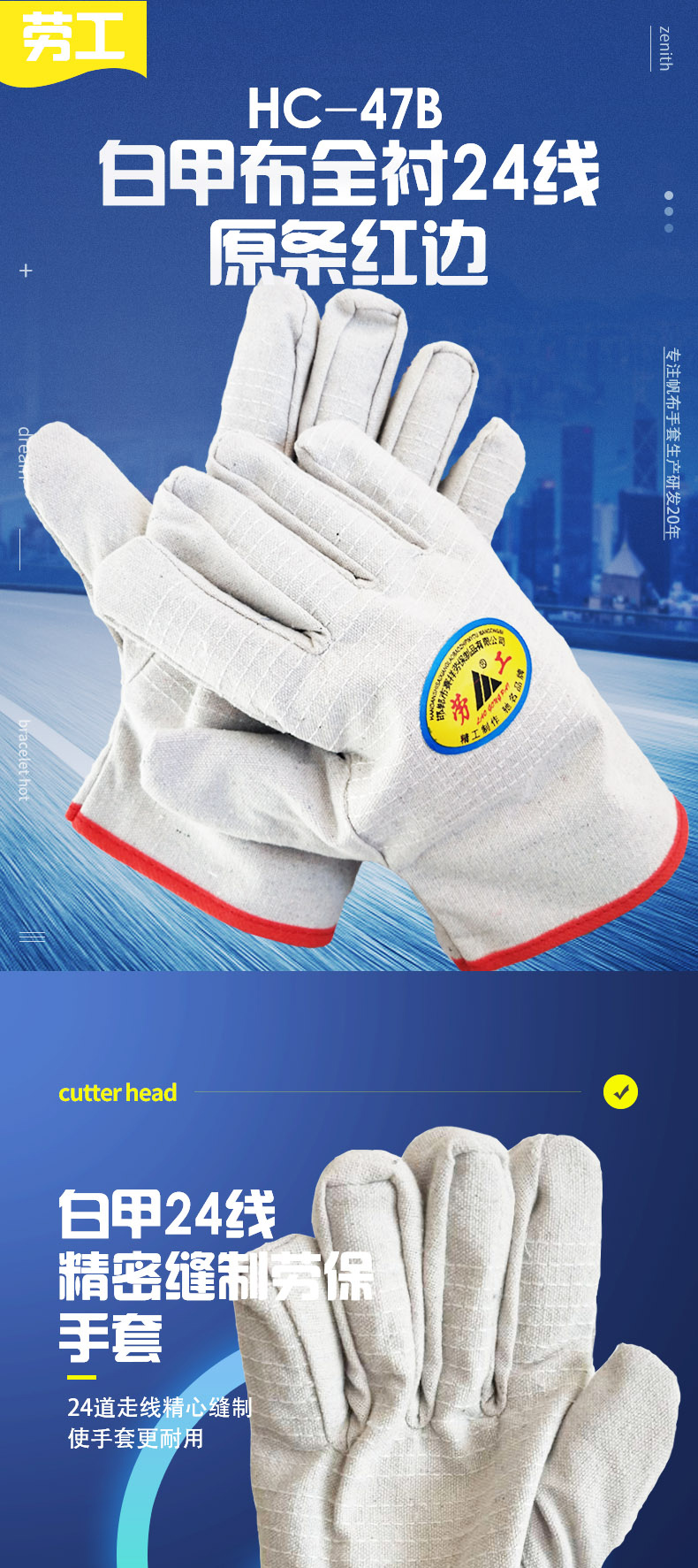노동 브랜드 흰색 갑옷 24 라인 이중층 두꺼운 내마모성 용접 금속 절단 및 취급 노동 보호 캔버스 장갑