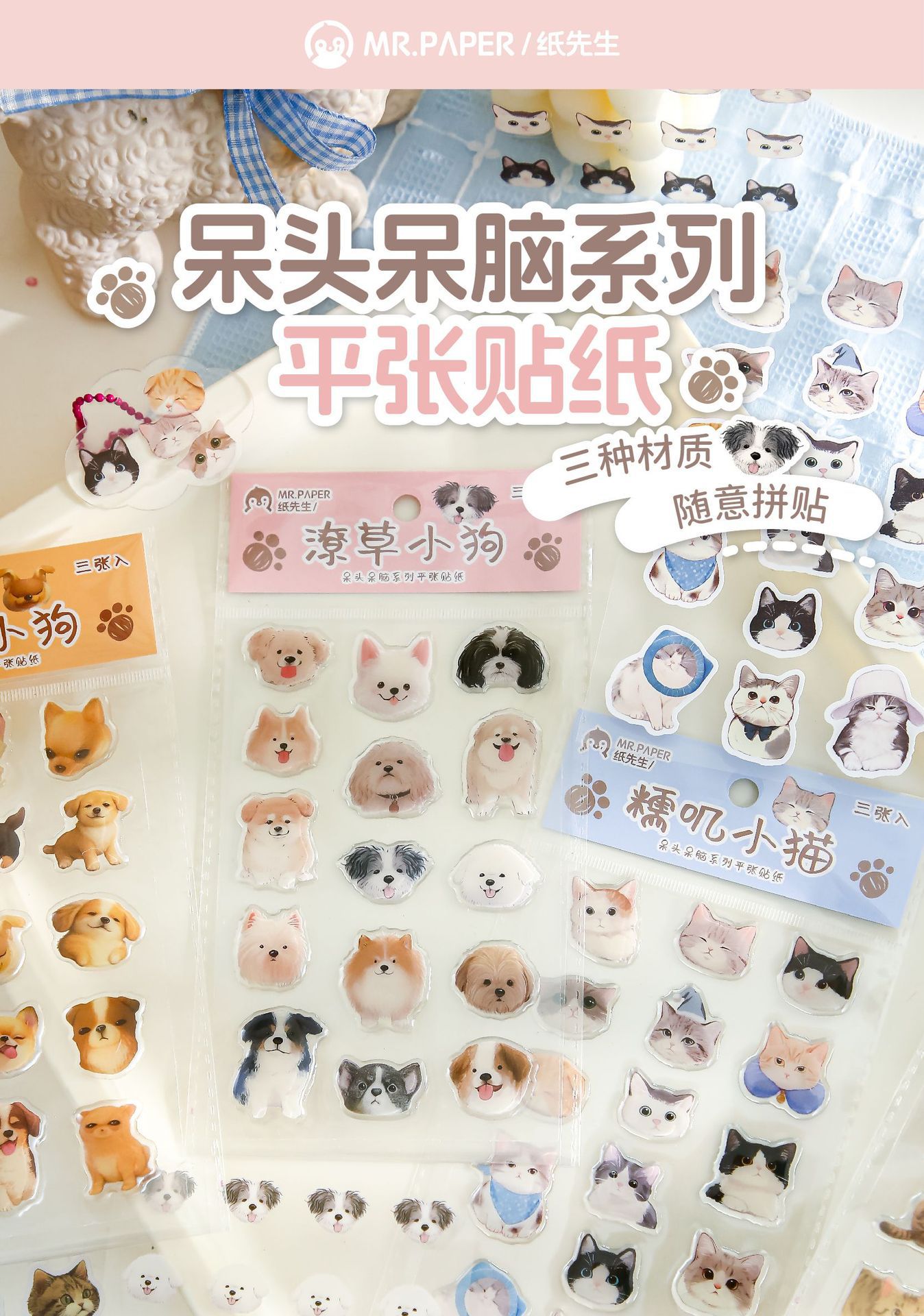 미스터 종이 플랫 스티커 Dumber 시리즈 귀여운 고양이와 개 소재 손 계정 물 컵 컴퓨터 DIY 콜라주