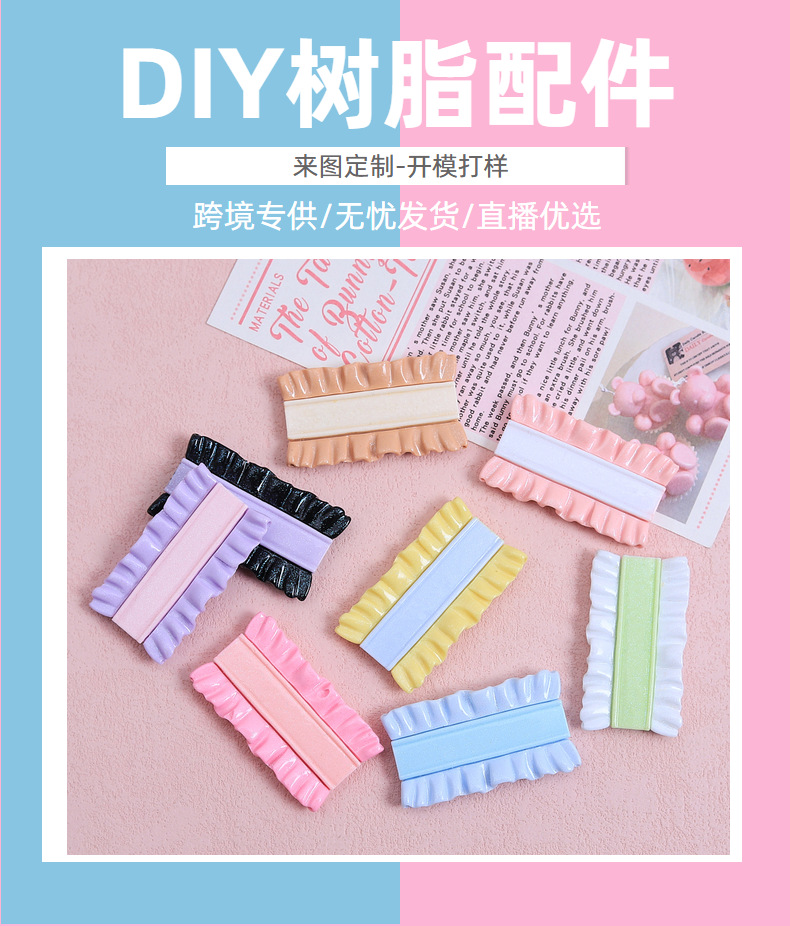 만화 여러 가지 빛깔의 주름 레이스 조각 크림 접착제 DIY 수제 헤어핀 냉장고 소재 수지 액세서리스토어 가기