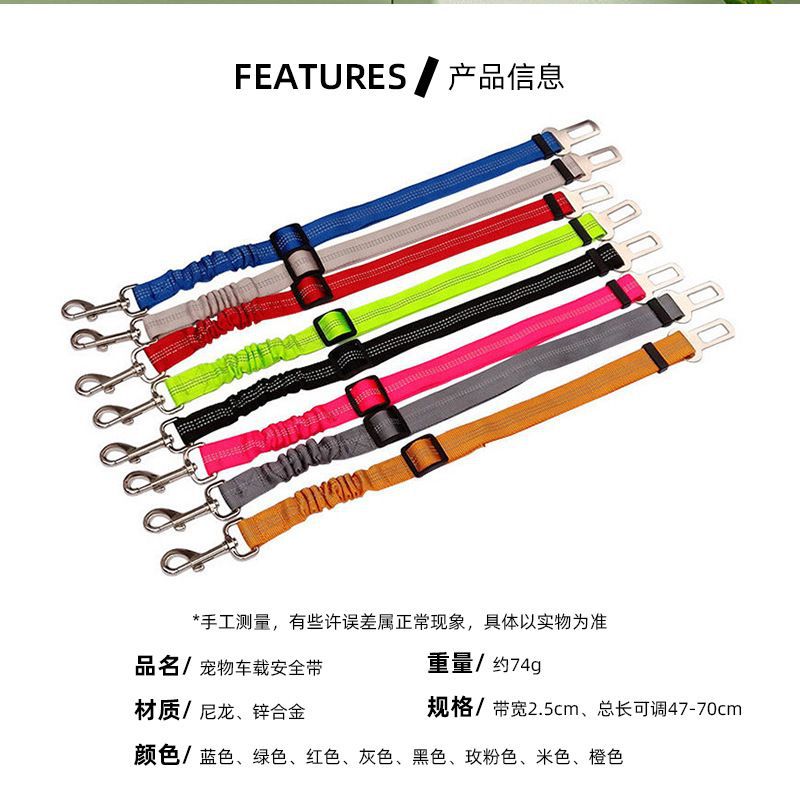 새로운 애완 동물 자동차 개 로프 애완 동물 자동차 안전 벨트 반사 탄성 견인 로프 반사 웨빙 안전 로프