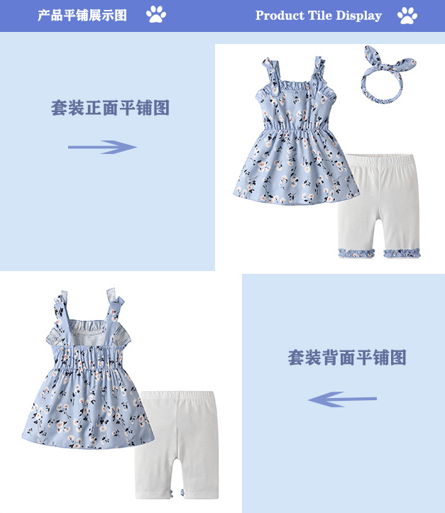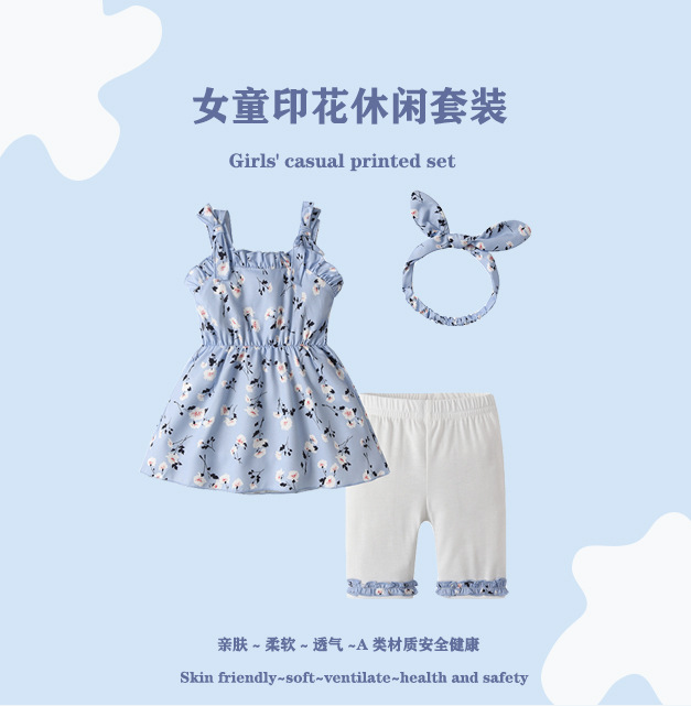 3 피스 소녀의 여름 원피스 세트 어깨 레이스 원피스 세트 헤어 밴드 여름 공주 외국식 아기 대외 무역 옷스토어 가기