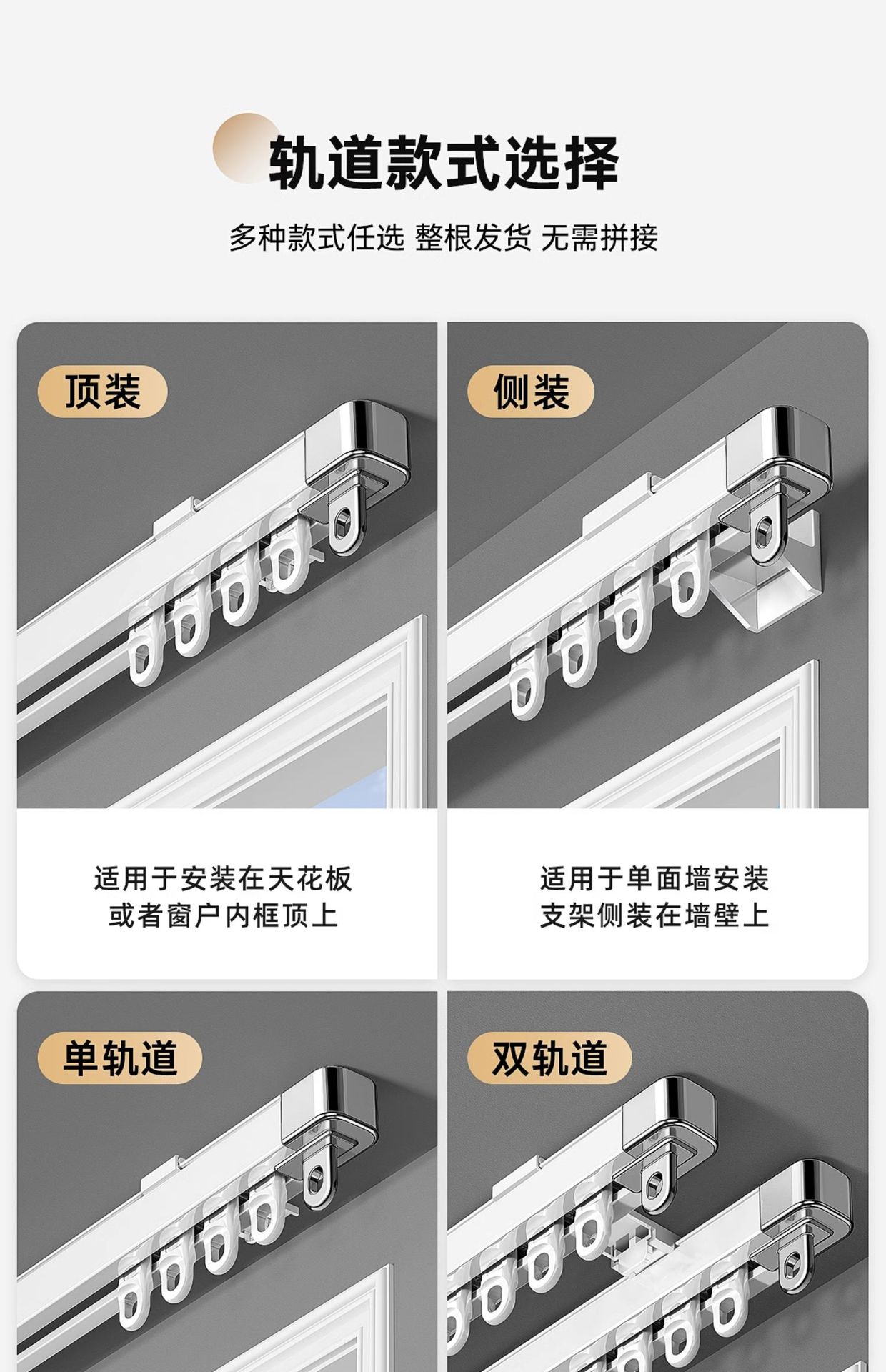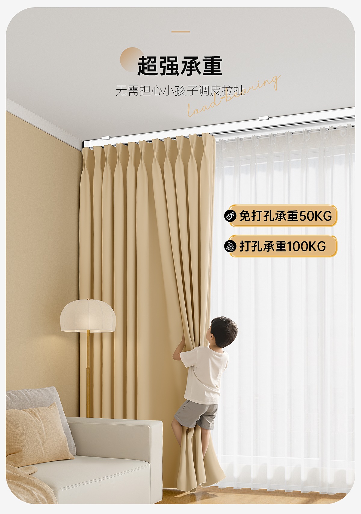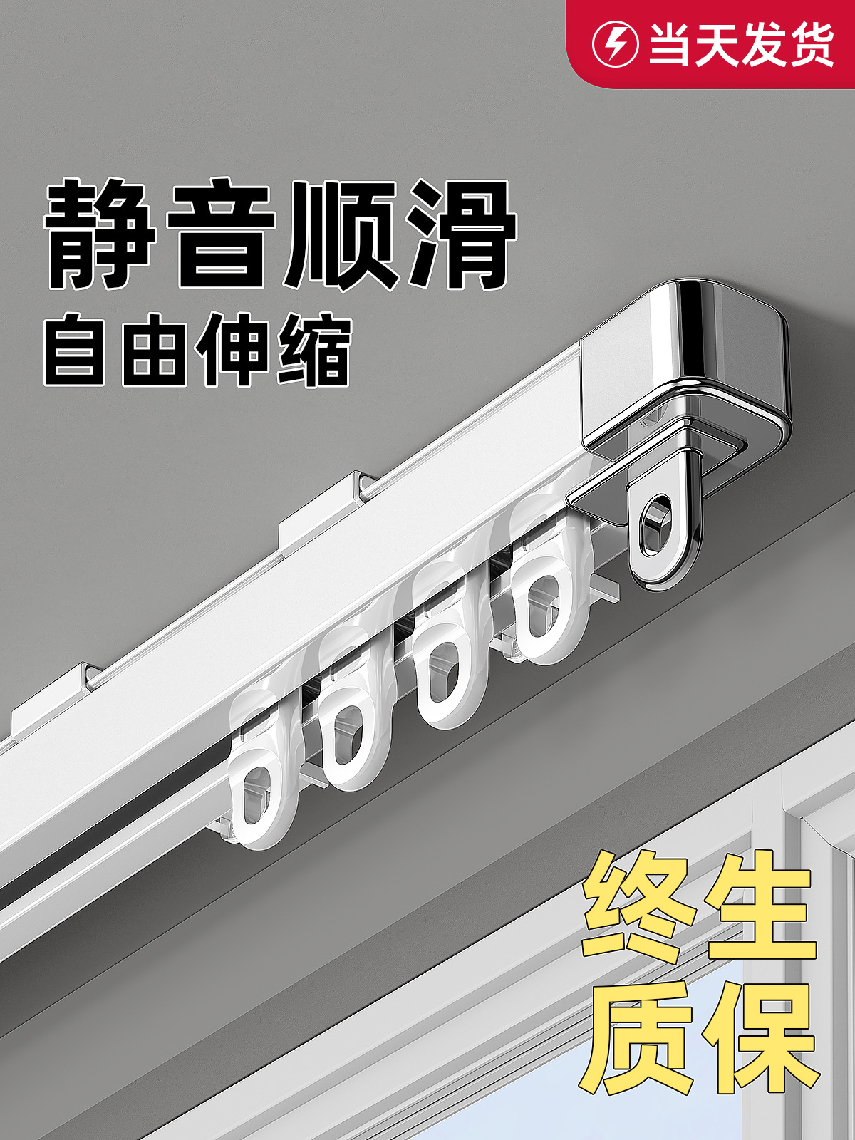 커튼 트랙 침묵 슬라이드 레일 후크 풀리 슬라이드 웨이 싱글 및 더블 레일 탑 사이드 마운트 텔레스코픽 가이드 레일 펀치 프리 커튼 로드