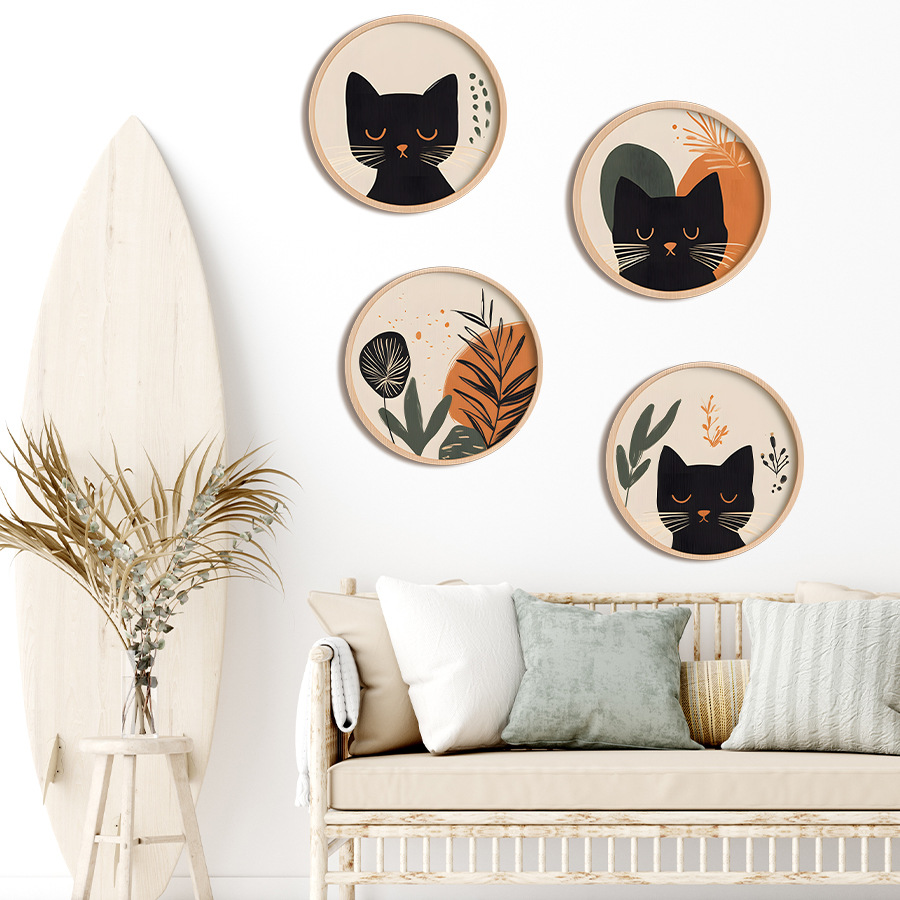 HS3478C 만화 추상 검은 고양이 시뮬레이션 교수형 그림 자기 접착 벽 스티커 거실 스튜디오 배경 벽 장식 스티커스토어 가기