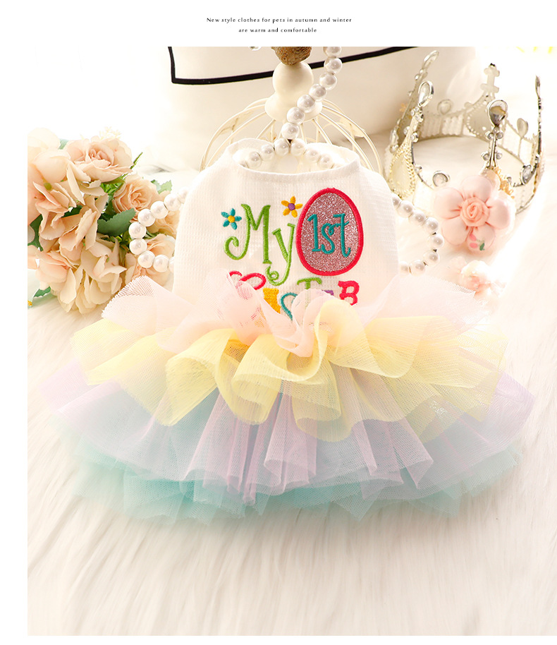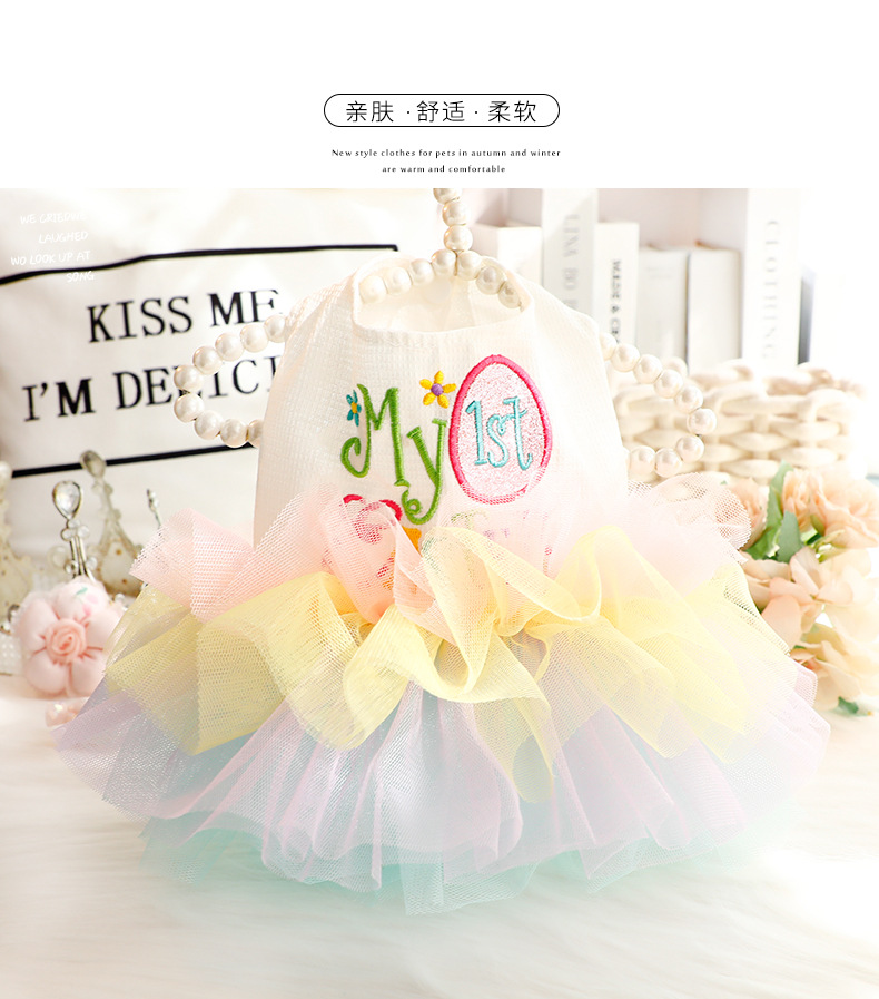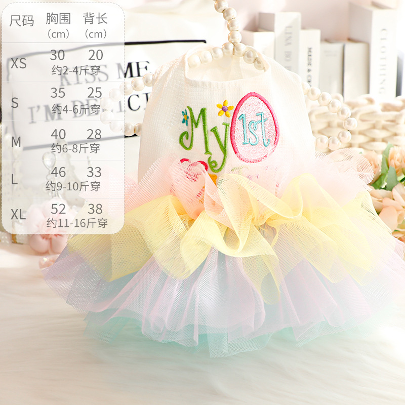 개 옷 봄과 여름 옷 얇은 고양이 색 푹신한 거즈 스커트 귀여운 자수 작은 개 테디 애완 동물 6595