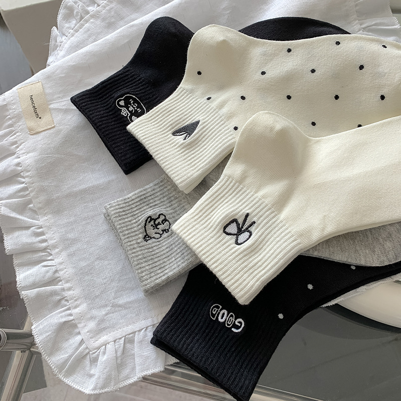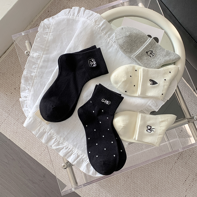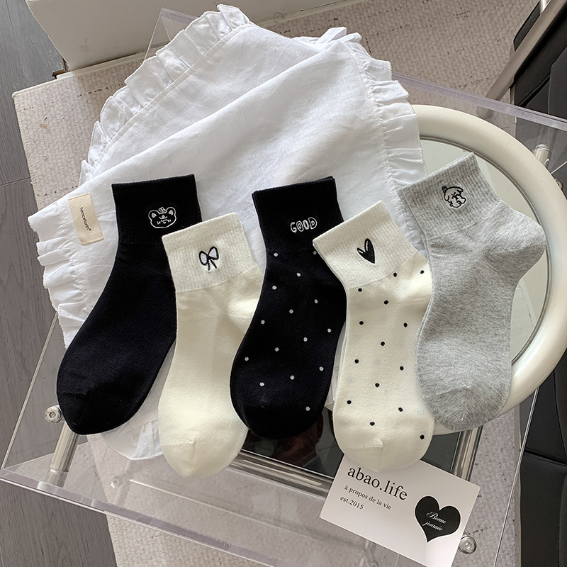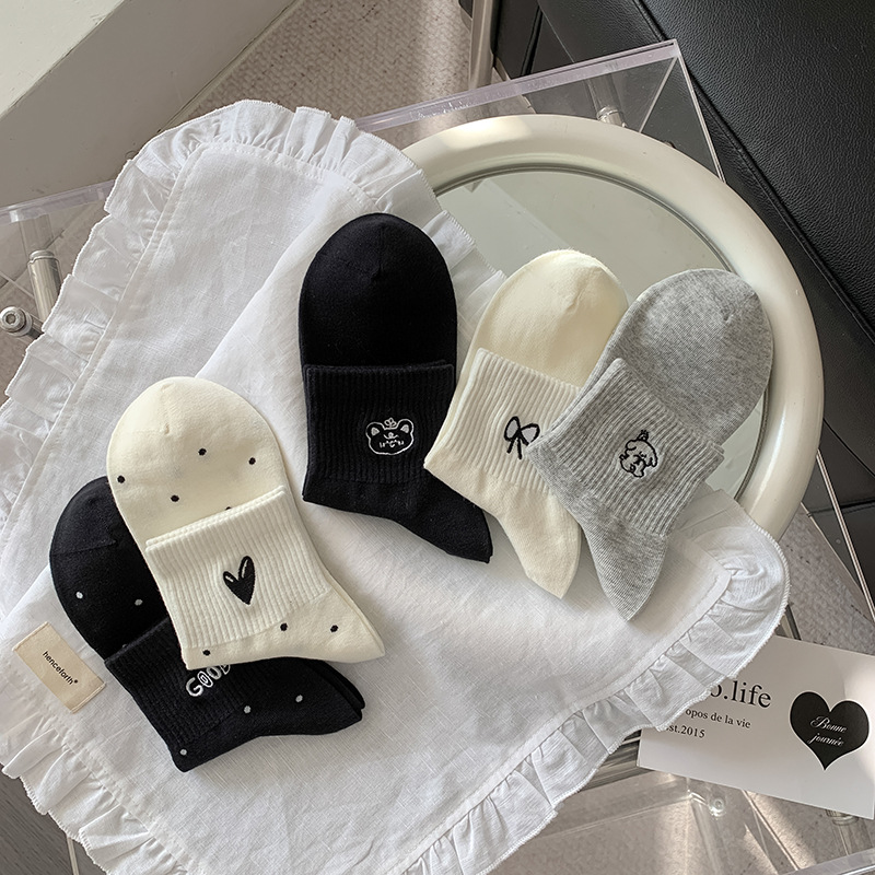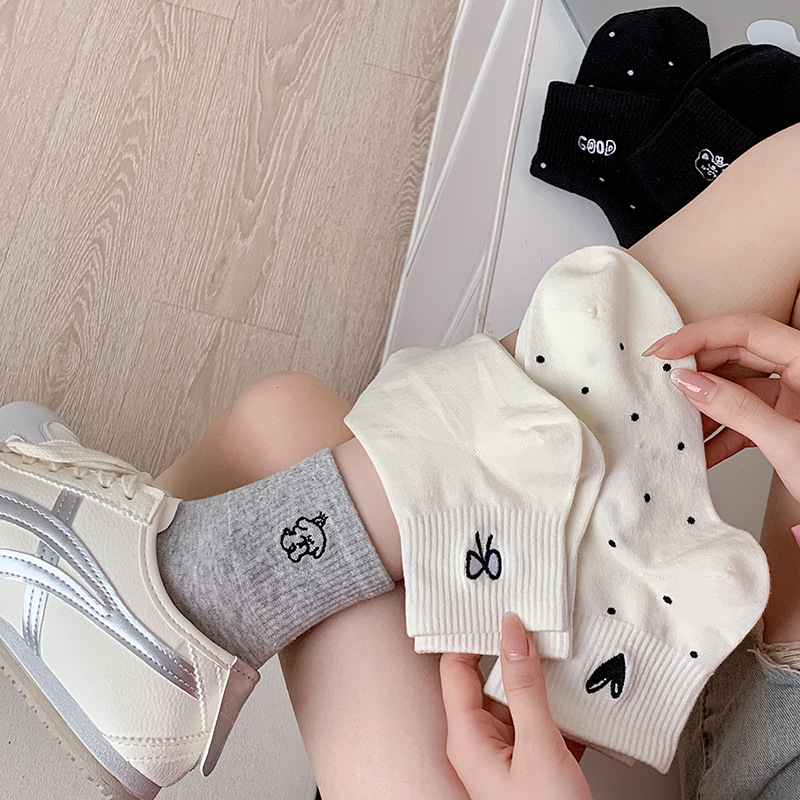 봄과 여름 대학 스타일 "간단한 사랑 만화 자수 5 짧은 튜브 양말 여성 양말 뼈없는 면화 양말스토어 가기