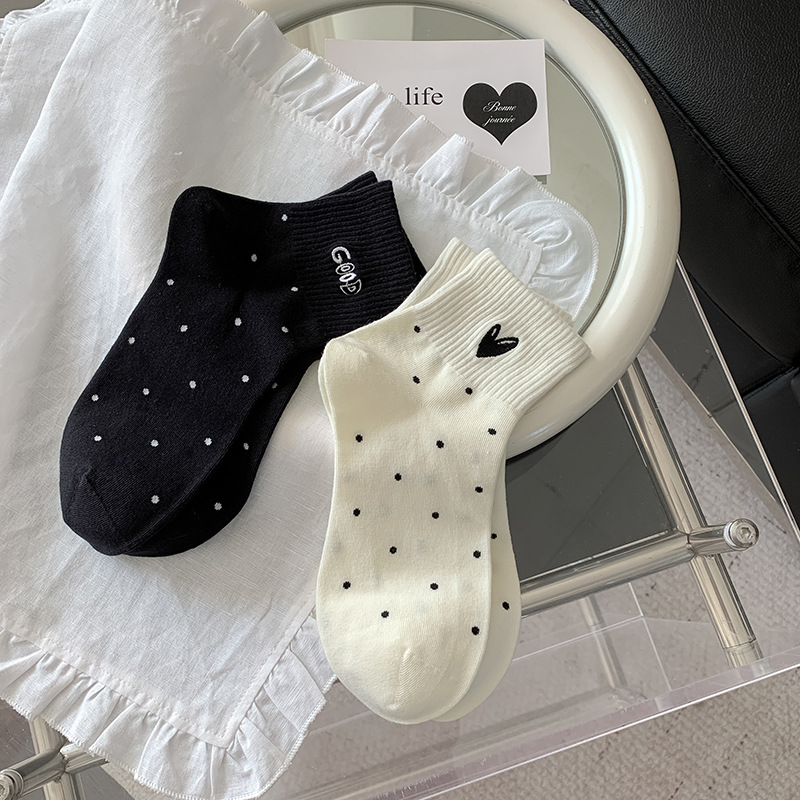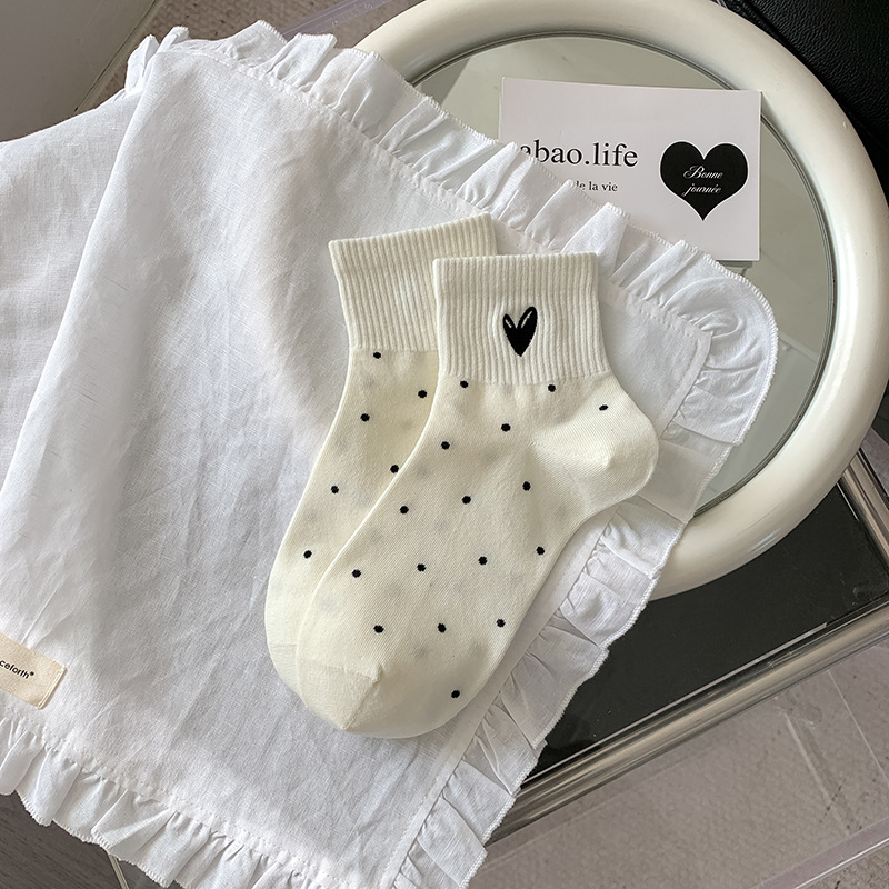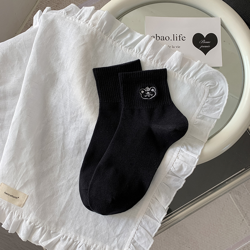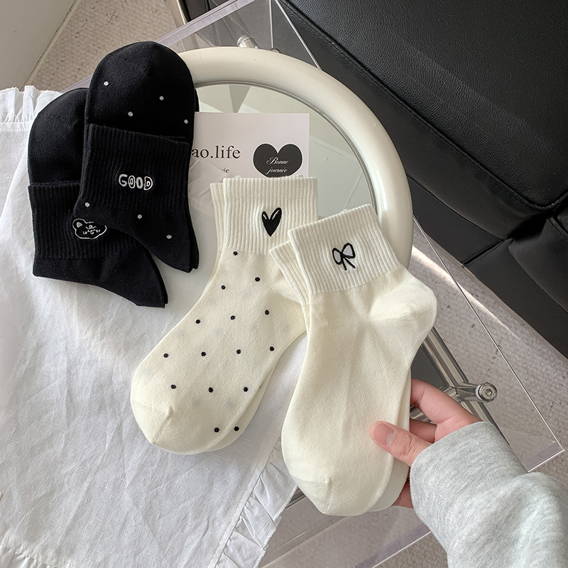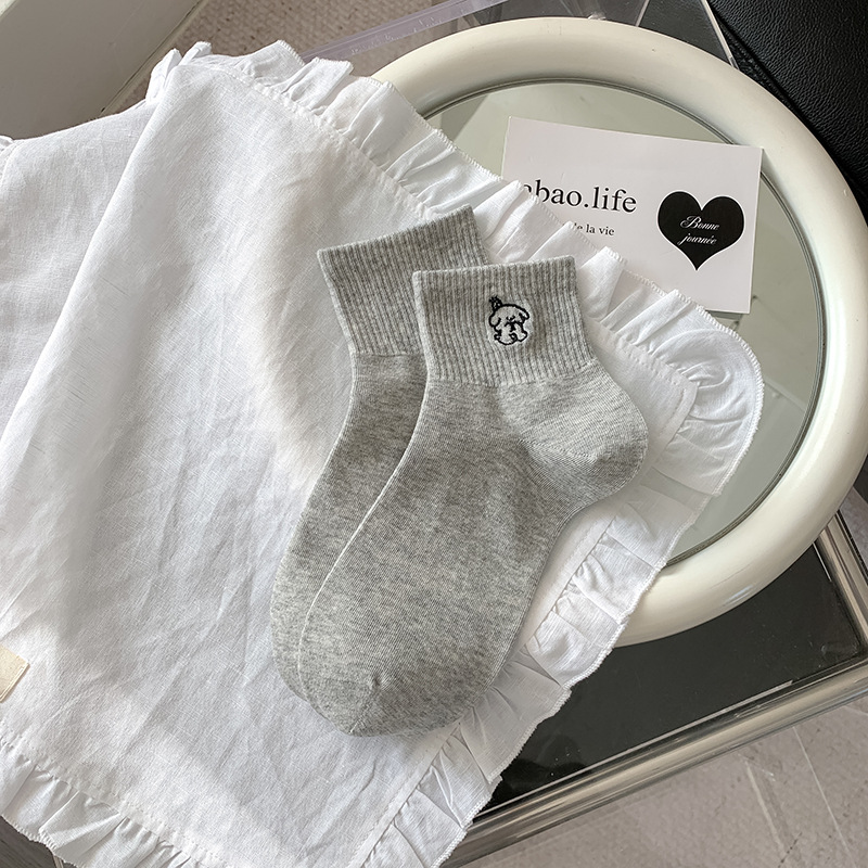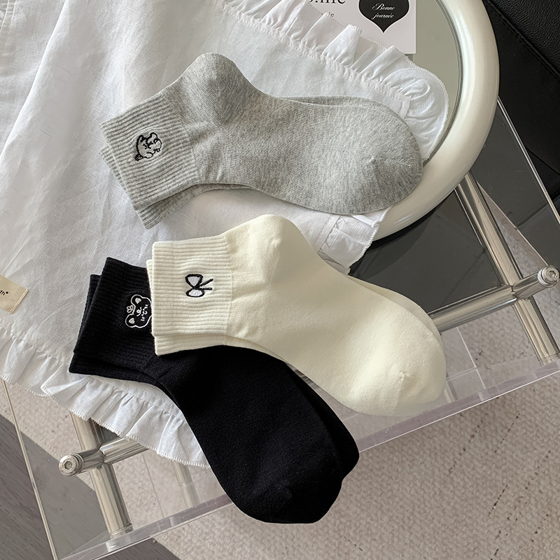 봄과 여름 대학 스타일 "간단한 사랑 만화 자수 5 짧은 튜브 양말 여성 양말 뼈없는 면화 양말스토어 가기