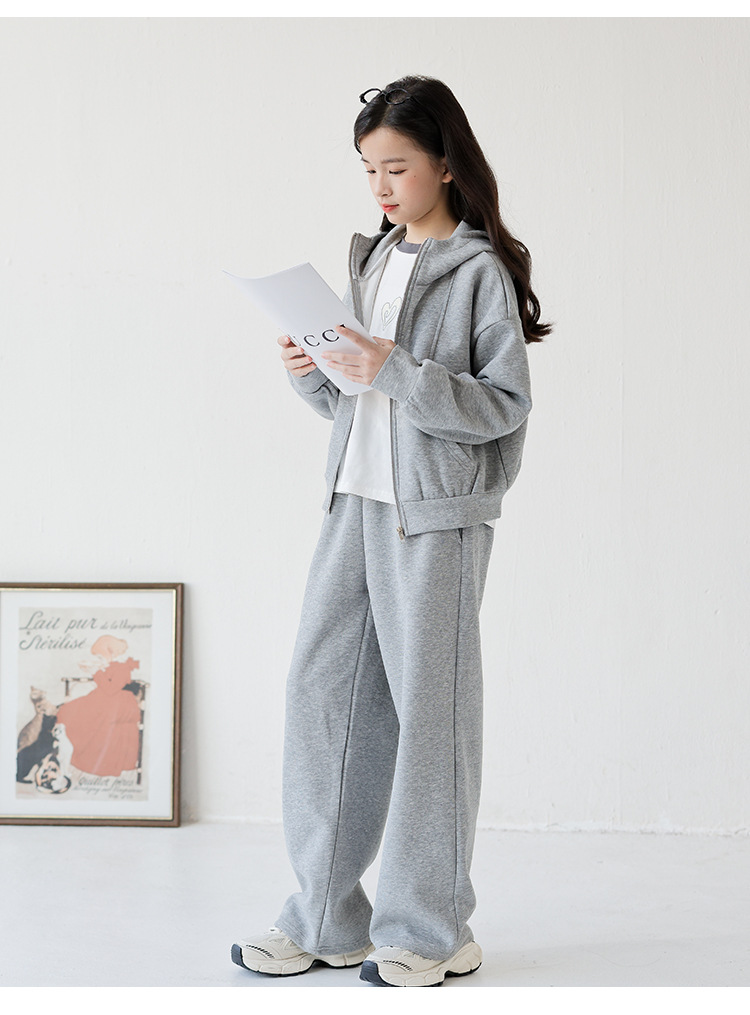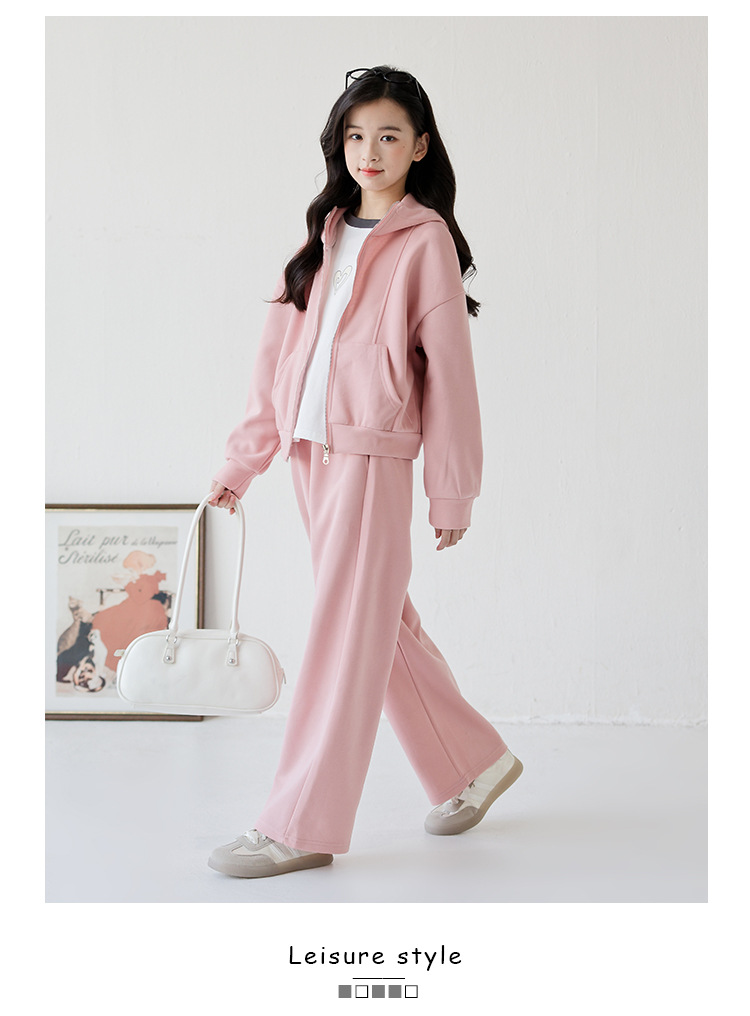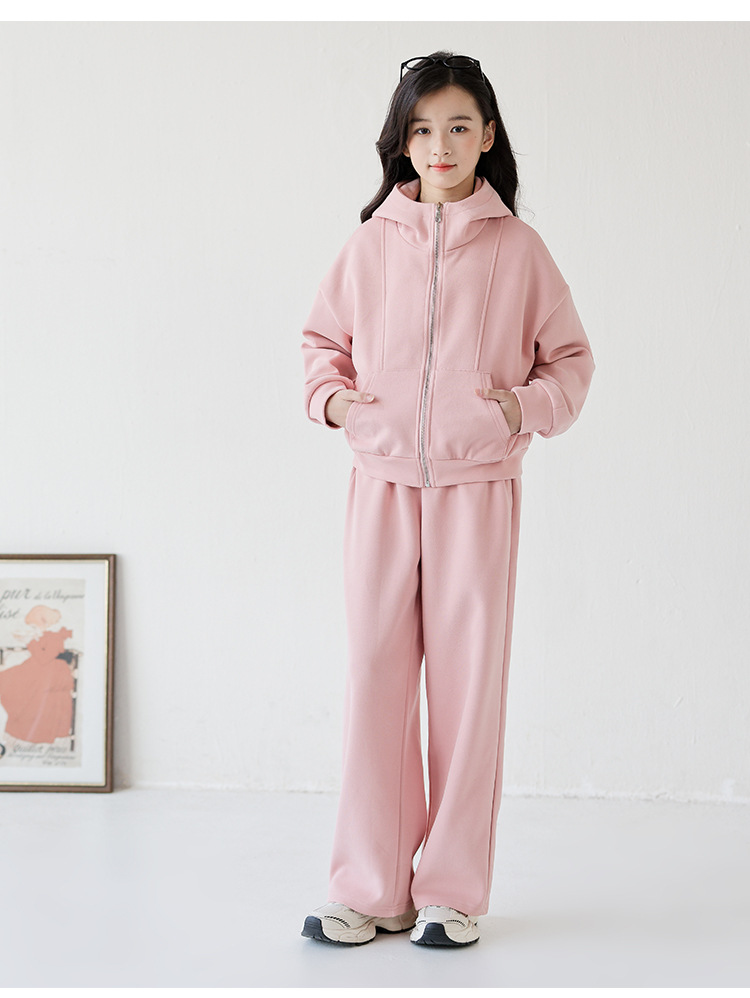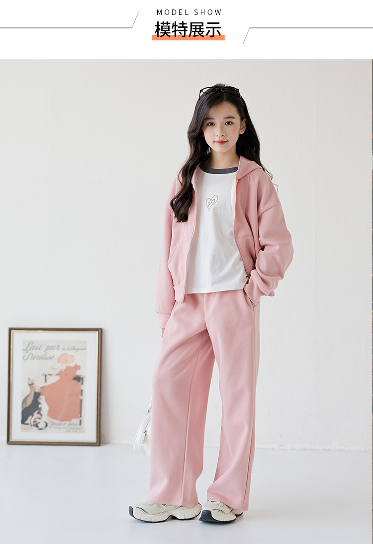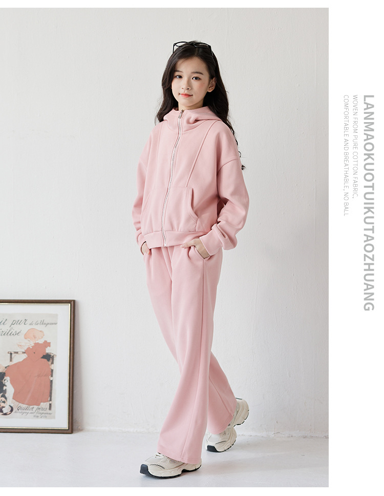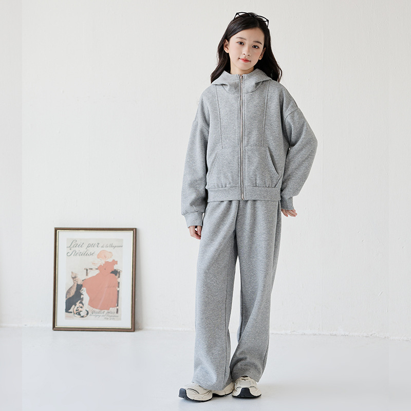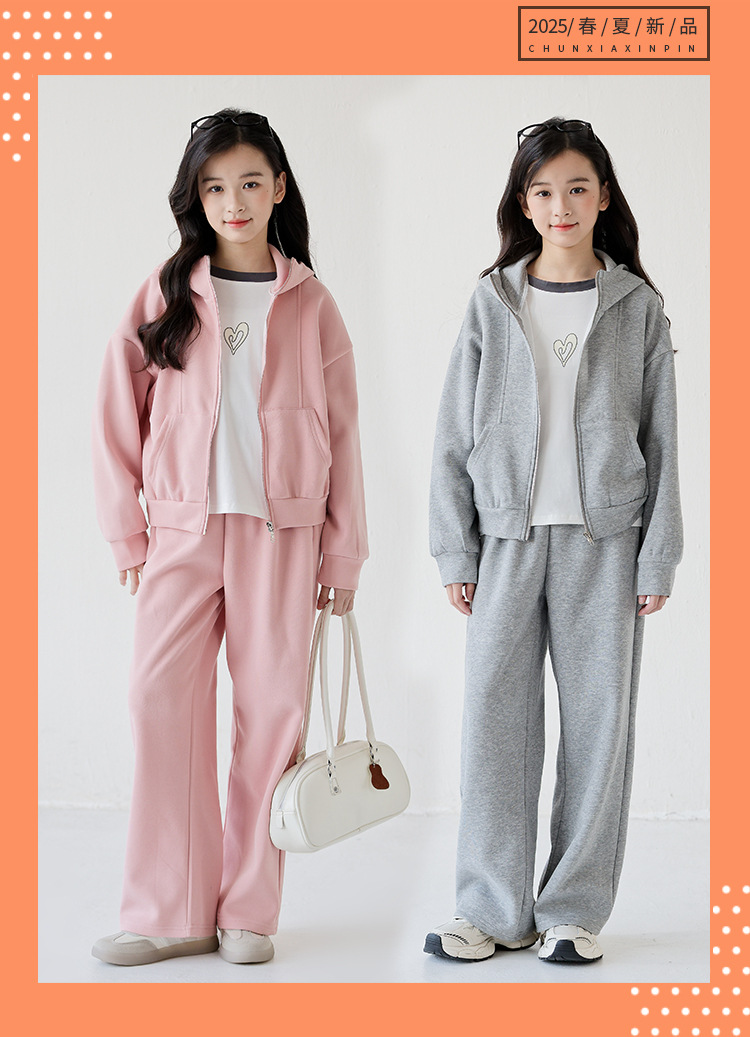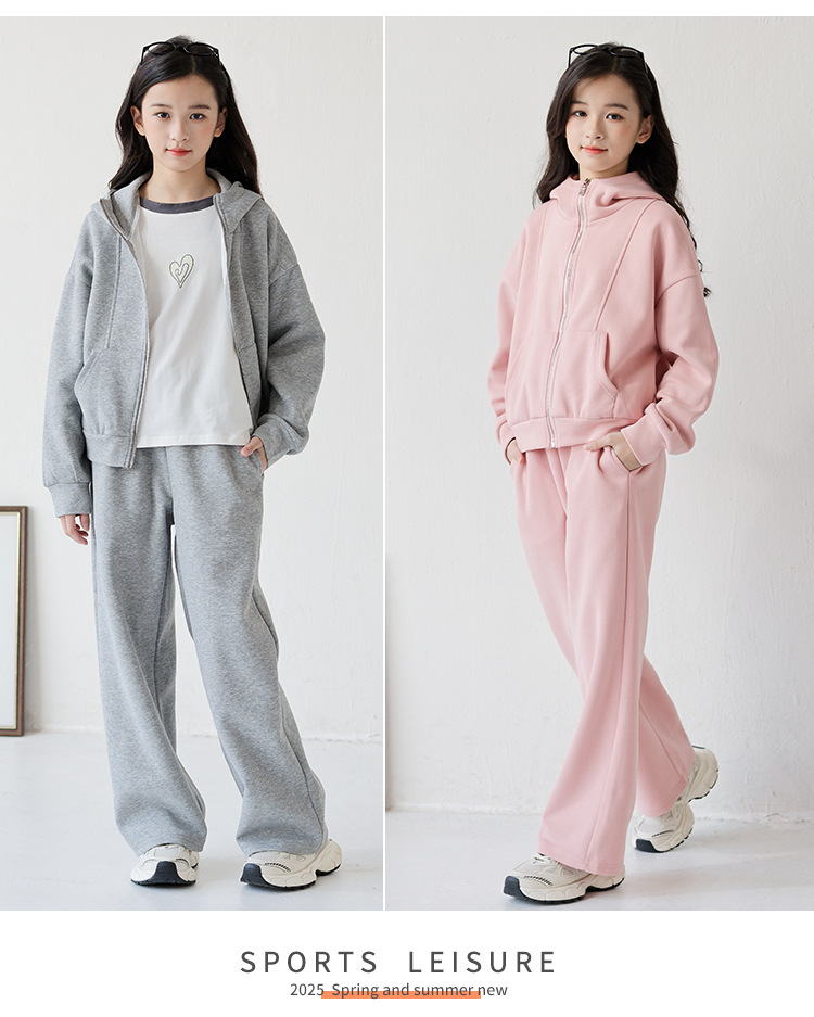 Ins 유행 소녀의 새로운 느슨한 땀 세트 2025 봄과 가을 서양 스타일 캐주얼 넓은 다리 바지 큰 어린이 두 조각스토어 가기