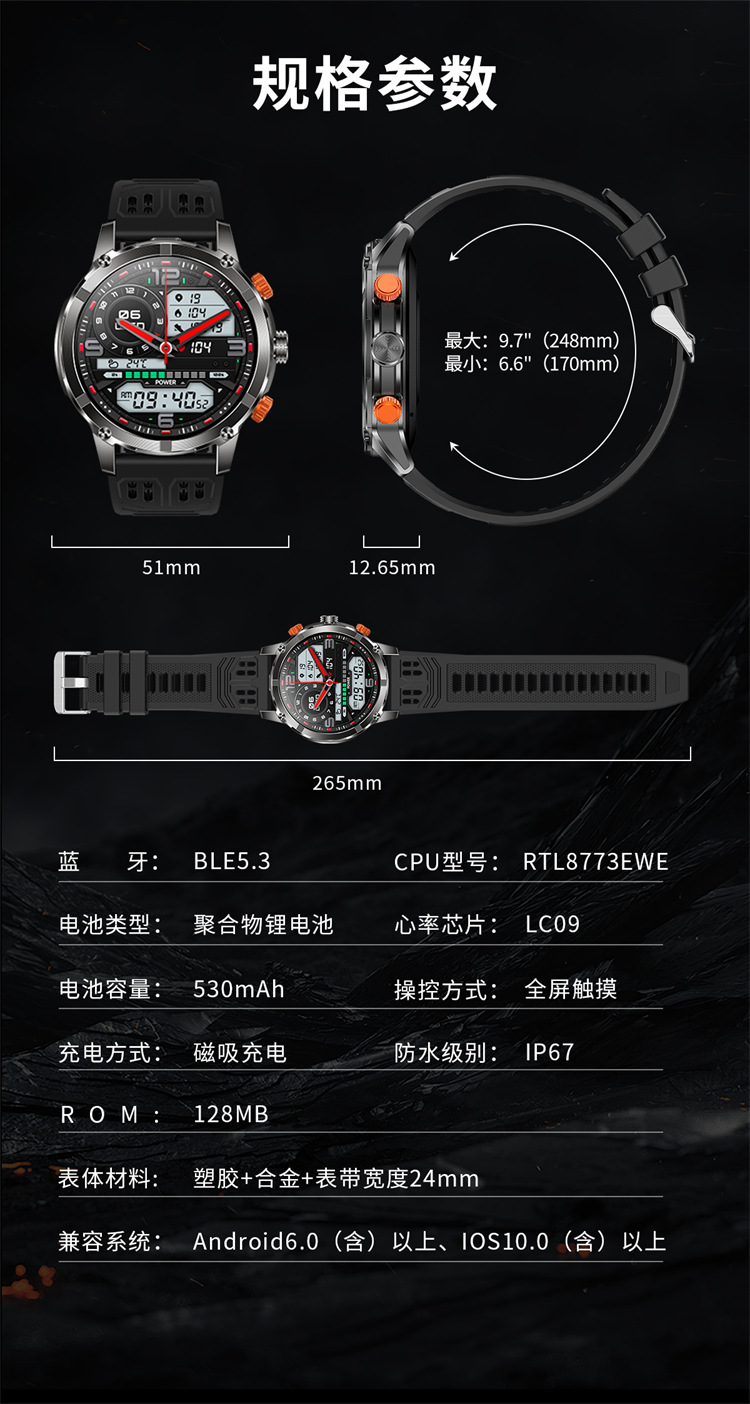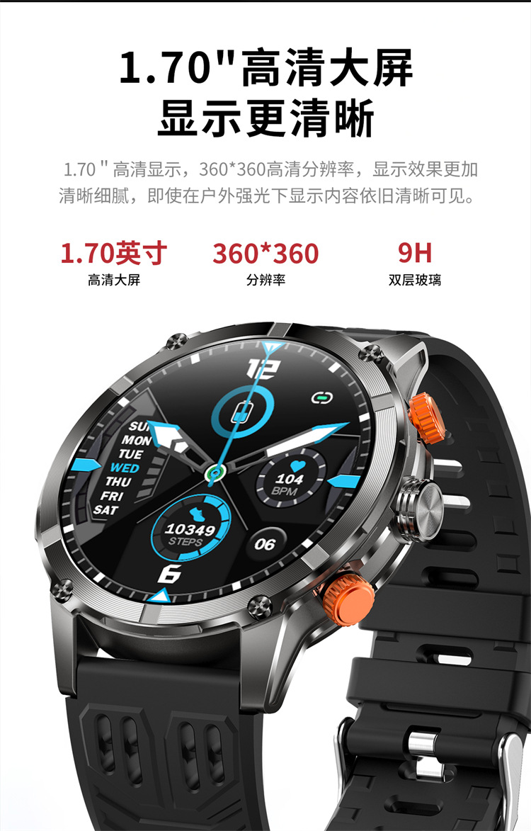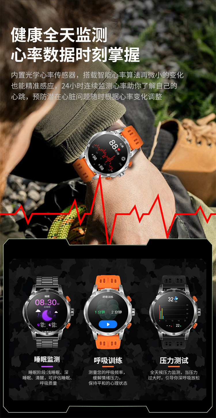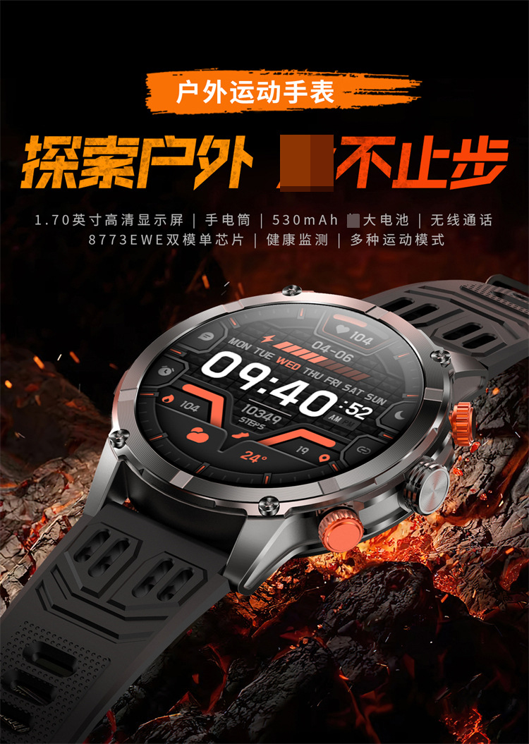 CF55智能手表蓝牙通话心率睡眠监测LED手电筒信息推送多运动手表