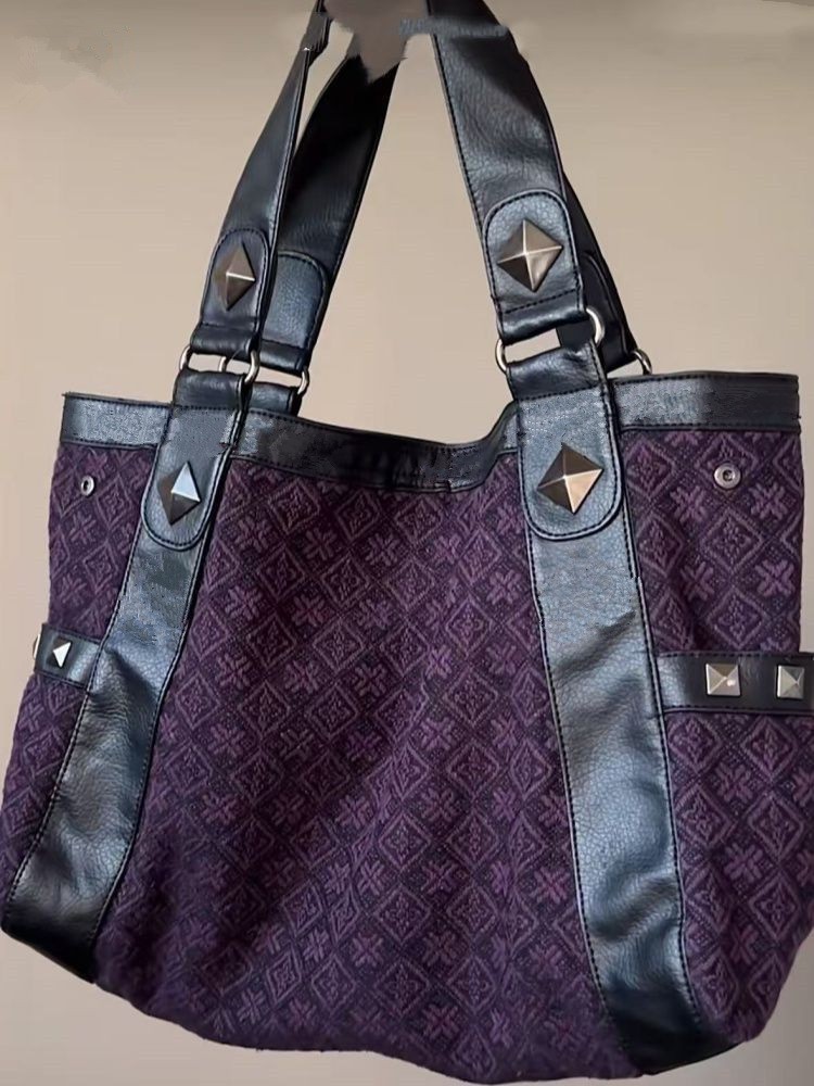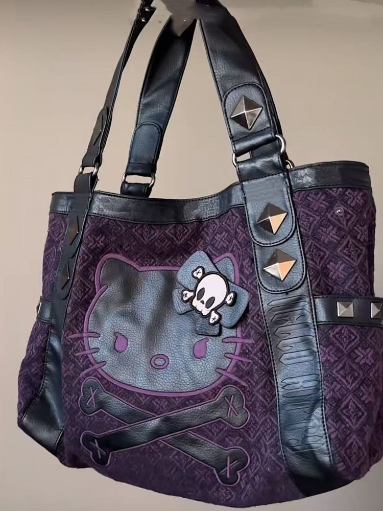 헬로 키티 중간 고대 패치 워크 보라색 언더암 가방 핸드백 Y2K 달콤한 쿨 스파이스 소녀 가을과 겨울 어깨 가방