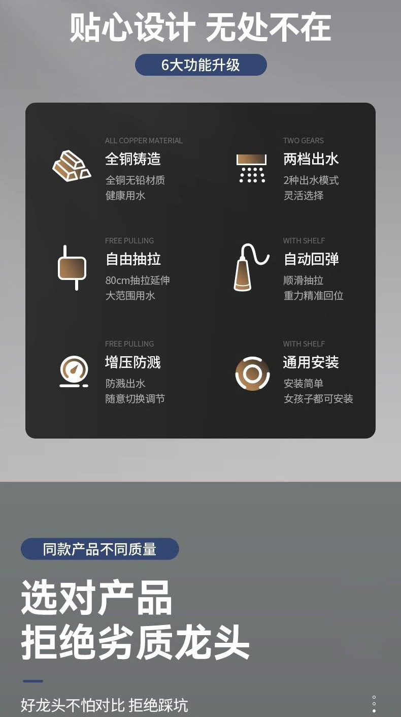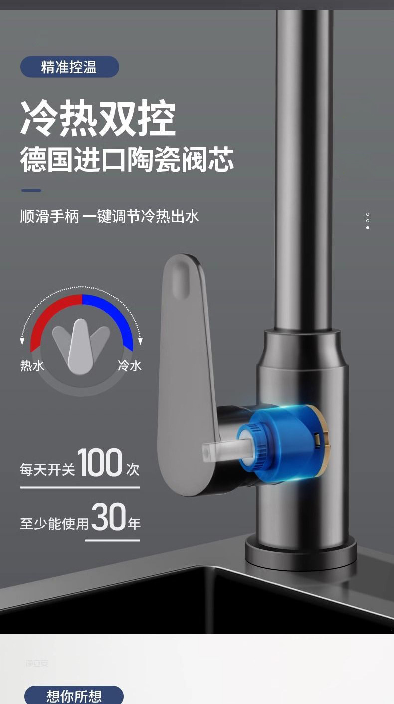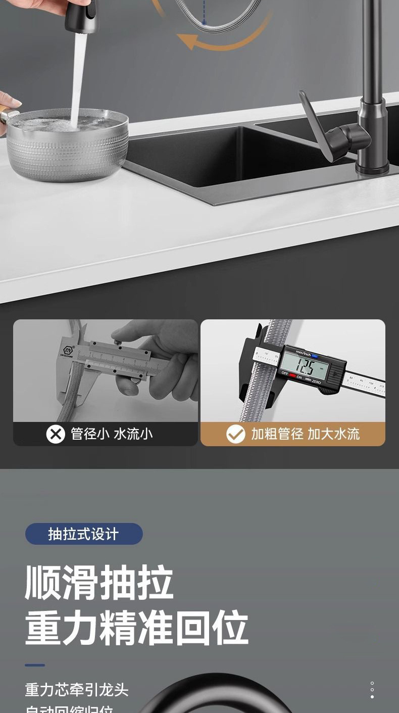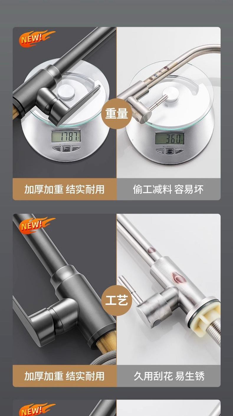주방 수도꼭지 차갑고 뜨거운 2 대 1 야채 싱크 싱크대 전용 회전 가능한 야채 싱크 스플래시 방지 모든 구리스토어 가기