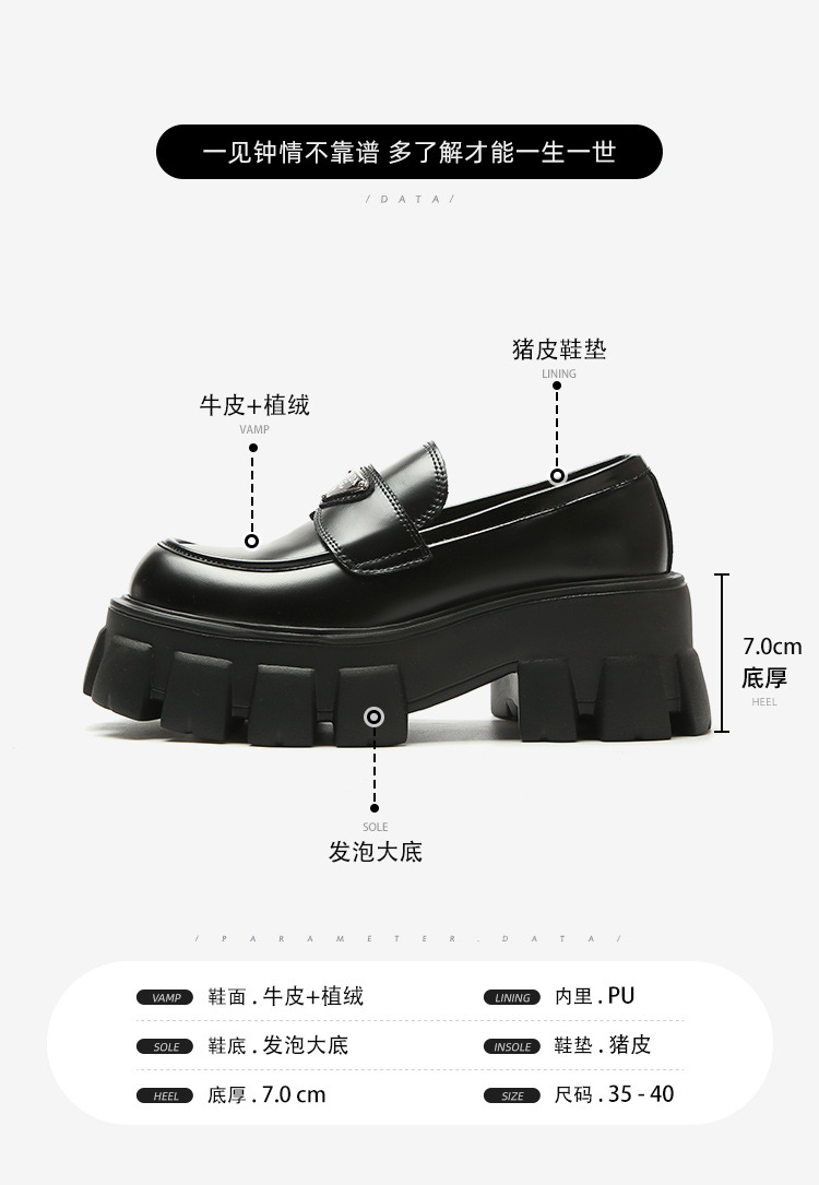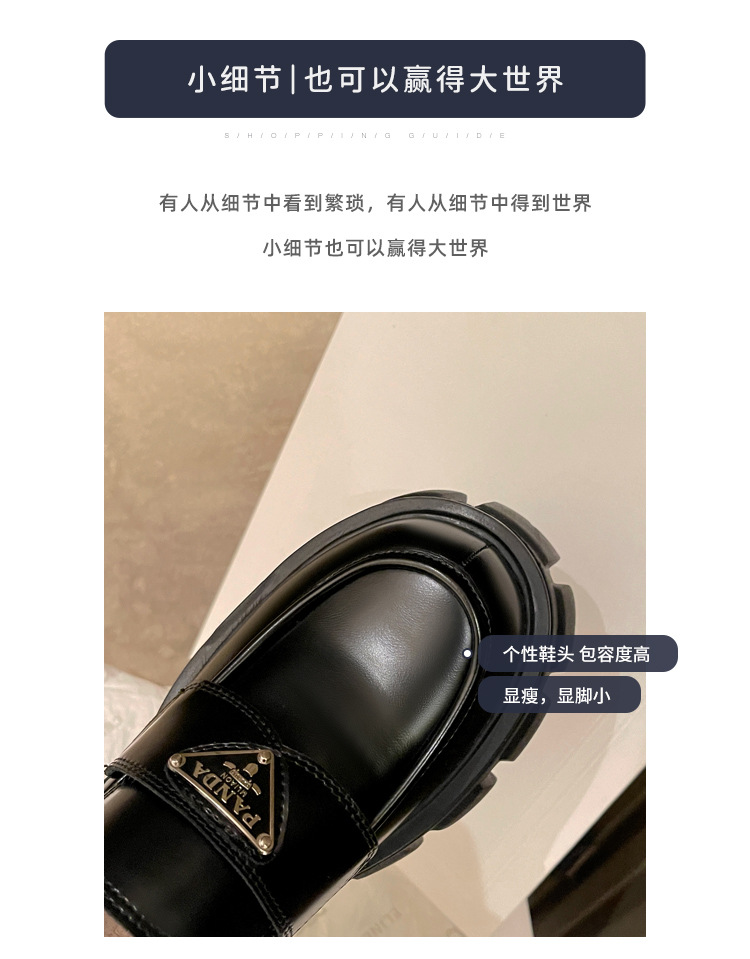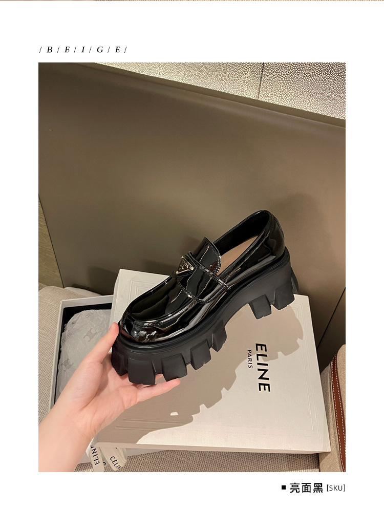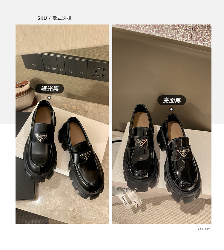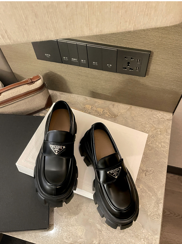 경량 럭셔리 여성 신발 삼각 로고 두꺼운 밑창 로퍼 2024 신상 가을 여름 영국 스타일 블랙 가죽 신발스토어 가기