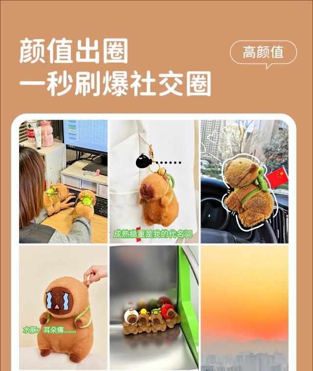 • 카피바라 스타일 [고품질 짧은 봉제 인형⭐넓어진 스냅링] 카피발라 스냅링⭐23cm