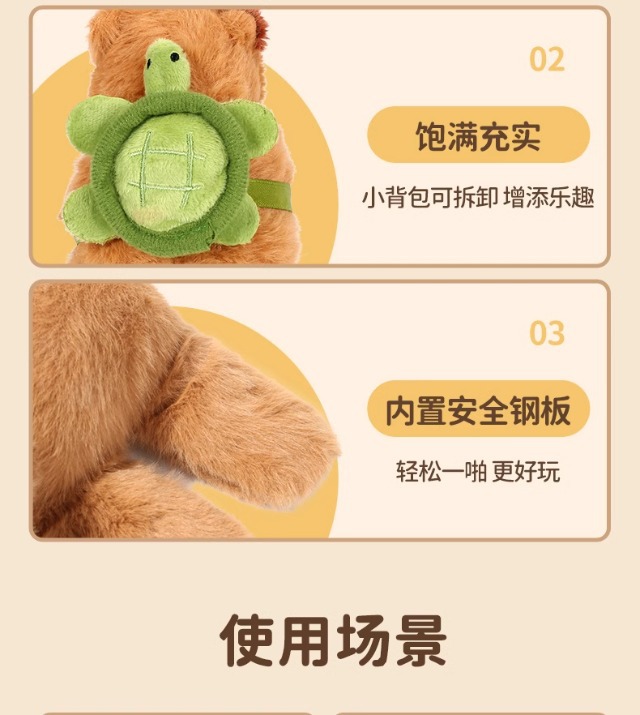 • 터틀 백팩 스타일 [고품질 짧은 봉제 인형]⭐넓어진 스냅링] 카피발라 스냅링⭐23cm