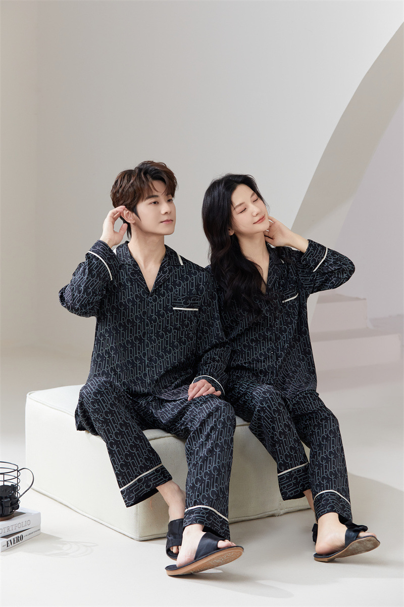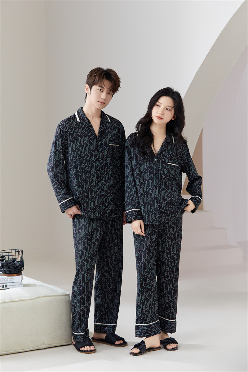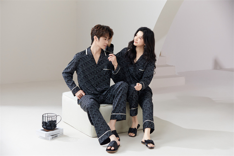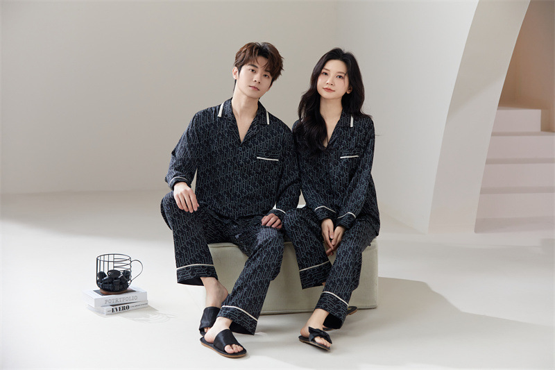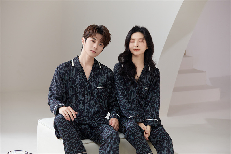 새로운 얼음 실크 커플 잠옷 여성 긴팔 한국 스타일 라이트 럭셔리 하이 엔드 카디건 대형 남성 홈웨어 정장 여름