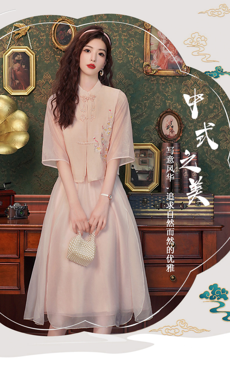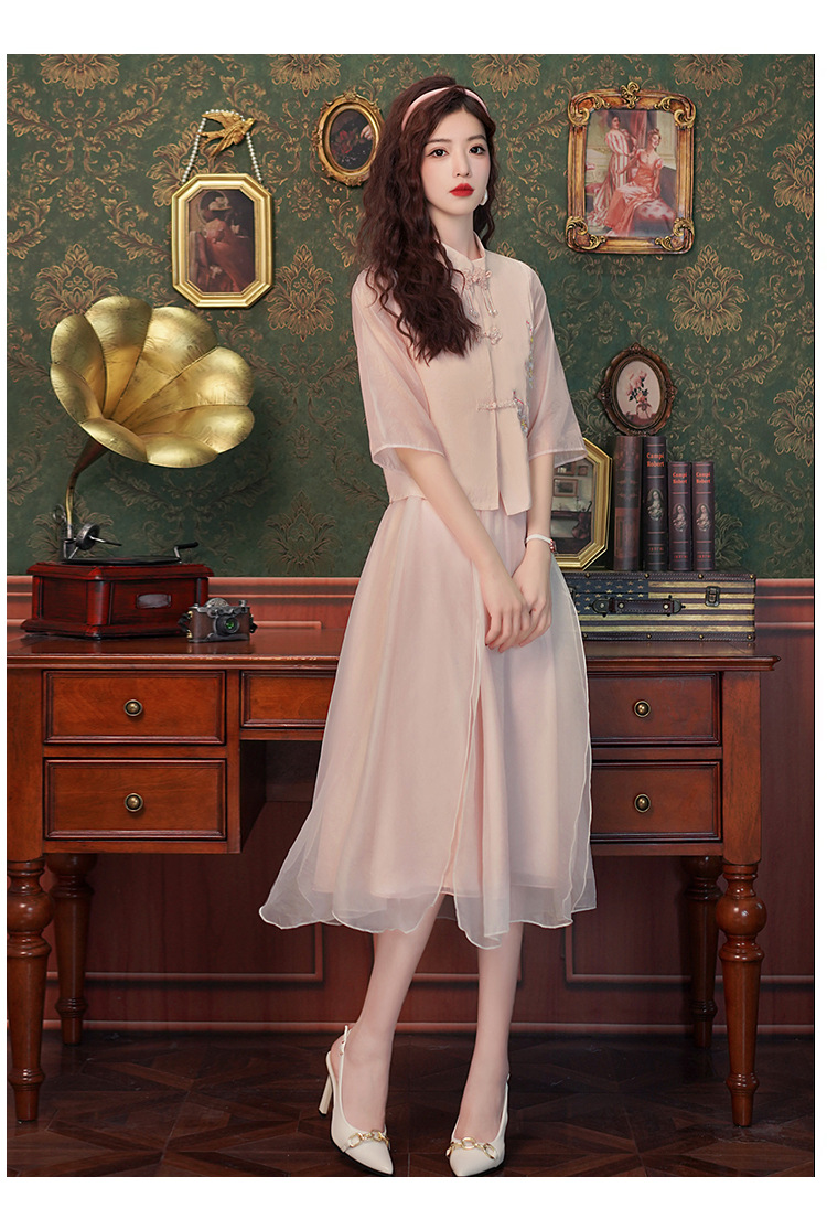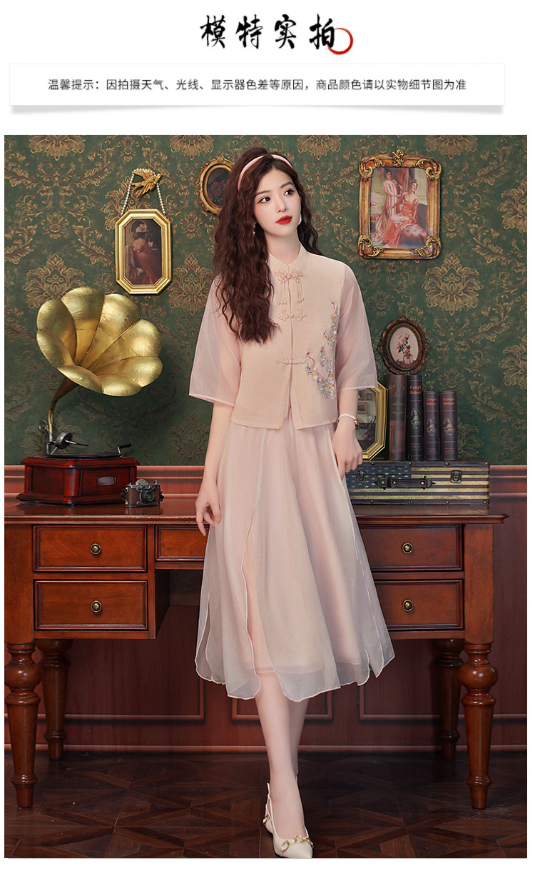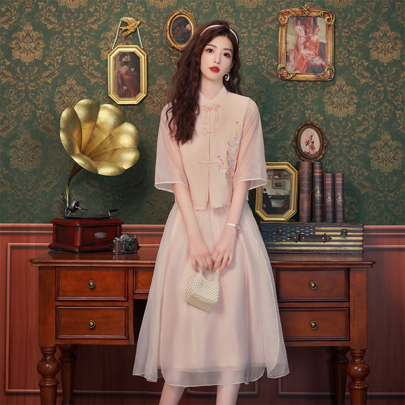 여름 새 중국 스타일 개선 청삼 젊은 여성 의류 작은 궈펑 차 의류 여성용 투피스 원피스 원피스