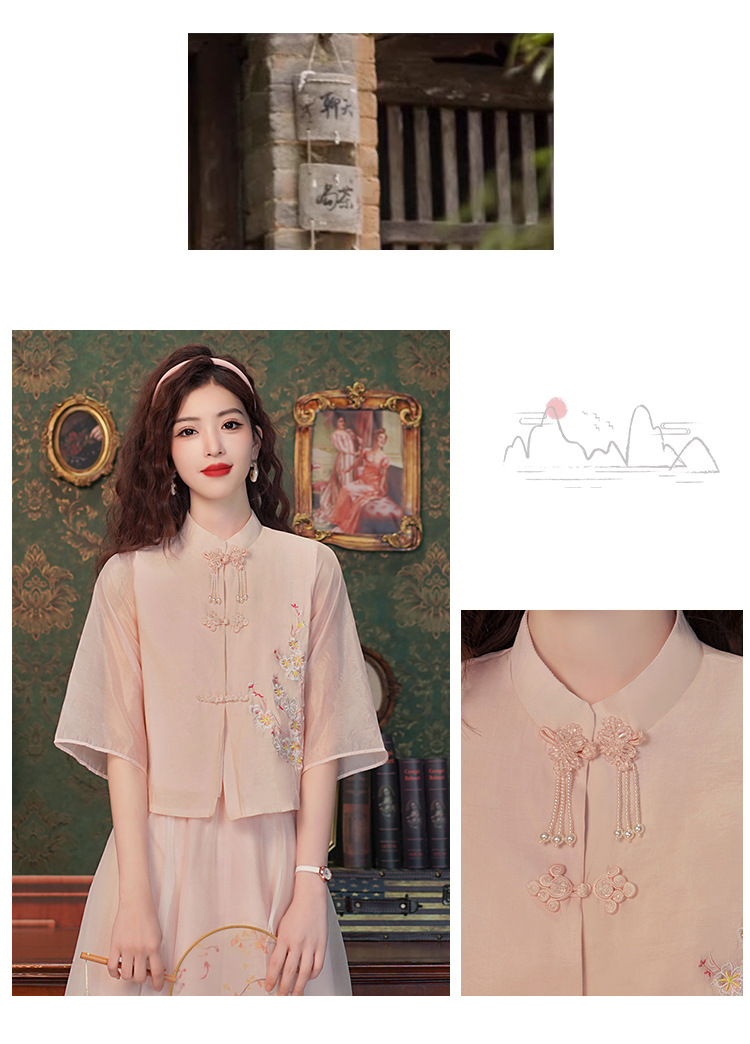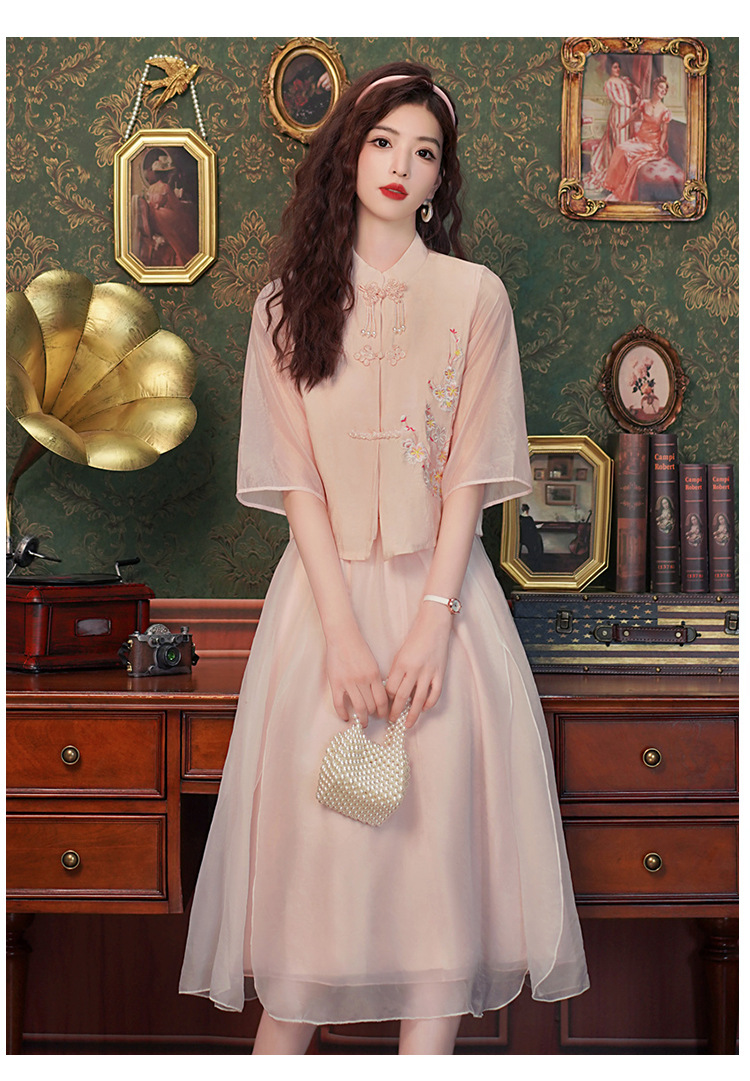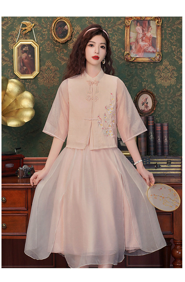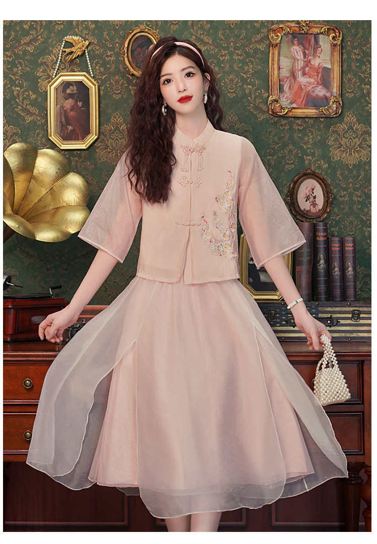 여름 새 중국 스타일 개선 청삼 젊은 여성 의류 작은 궈펑 차 의류 여성용 투피스 원피스 원피스