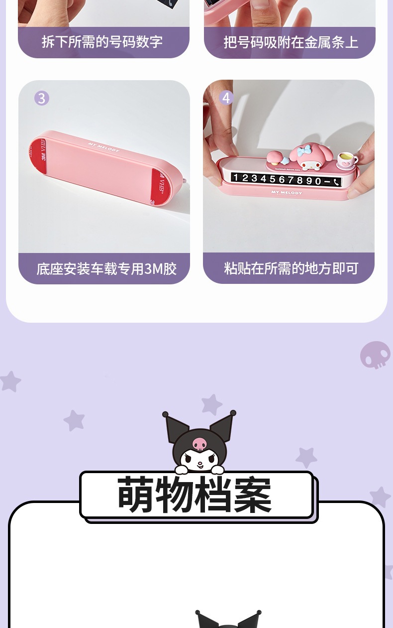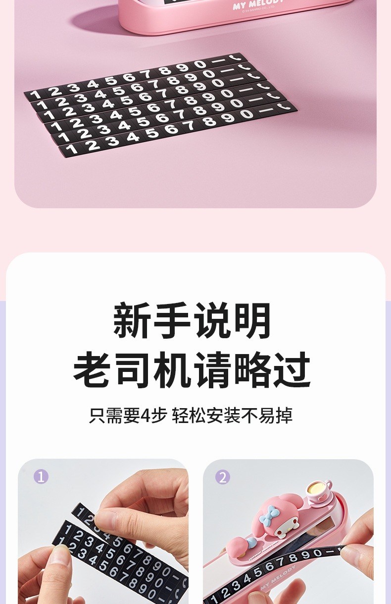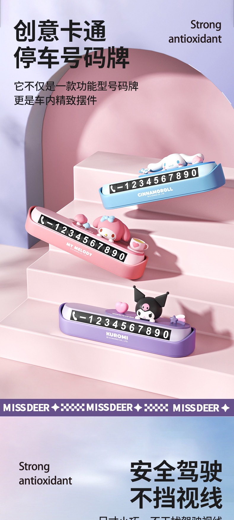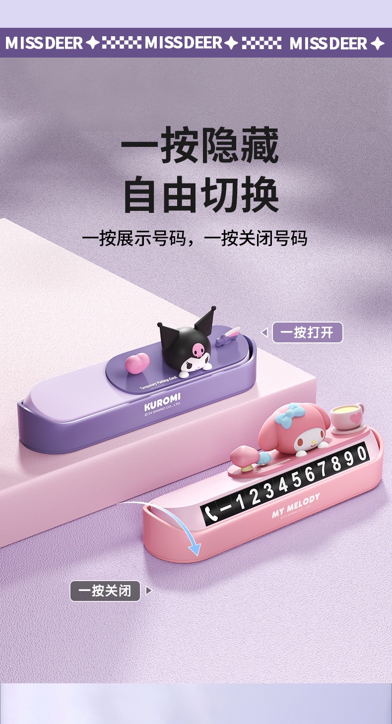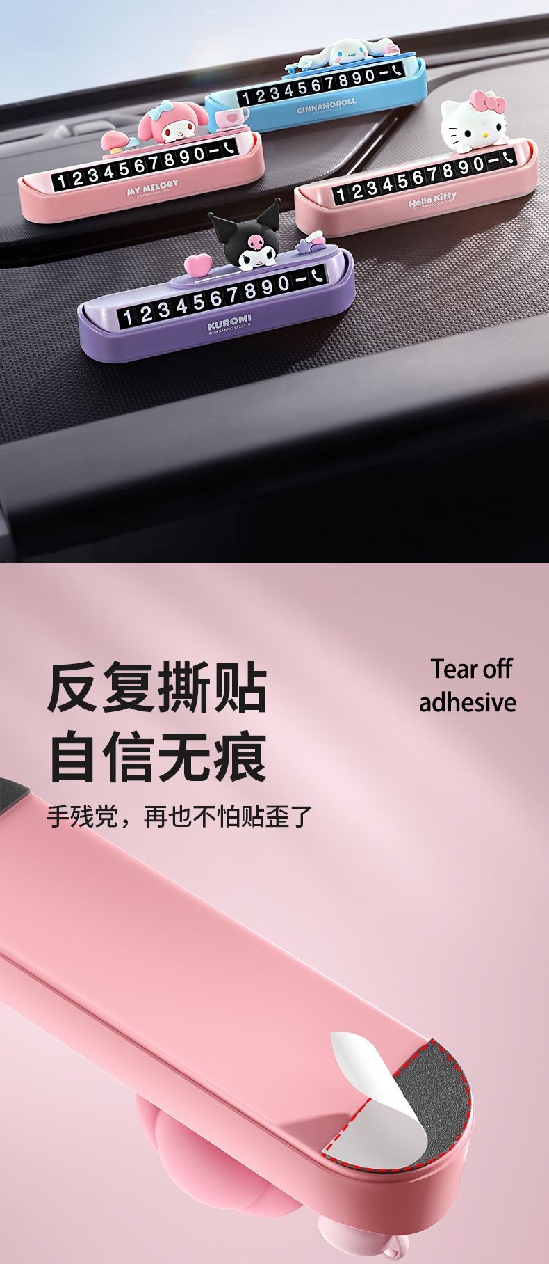 산리오 휴대 전화 번호판 임시 주차 번호판 소녀 귀여운 자동차 주차 번호판은 번호판을 움직이기 위해 숨길 수 있습니다스토어 가기