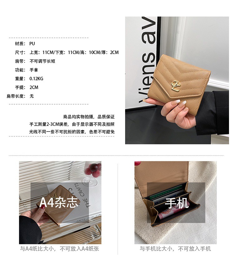 짧은 지갑, 신상 유럽 및 미국 스타일 여성 지갑, 패셔너블한 다이아몬드 패턴 버클 핸드백, 다중 카드 슬롯, 휴대폰 및 동전 지갑