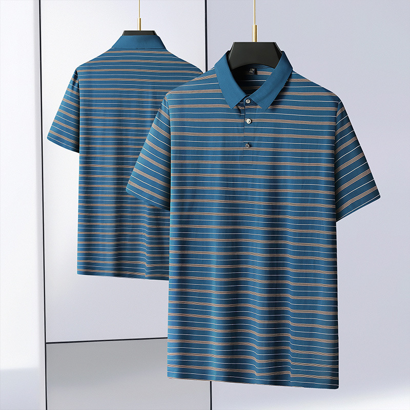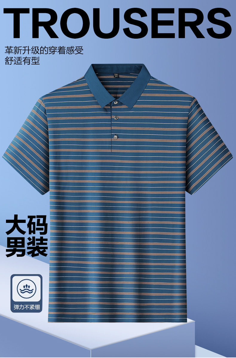 2025 여름 플러스 사이즈 남자 아이스 실크 반팔 티셔츠 느슨한 지방 옷깃 플러스 뚱뚱한 플러스 줄무늬 폴로 셔츠 트렌디스토어 가기