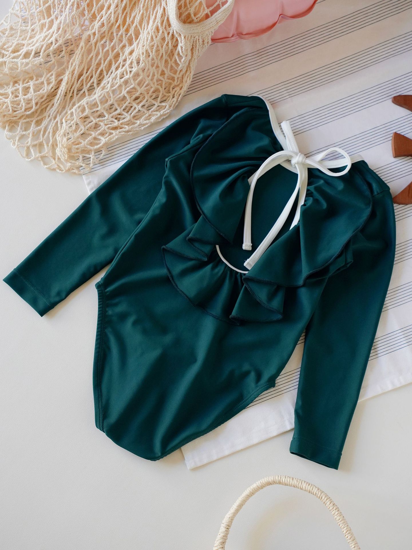 • POM 레이스 수영복 연잎 그린 [수영복+수영모]