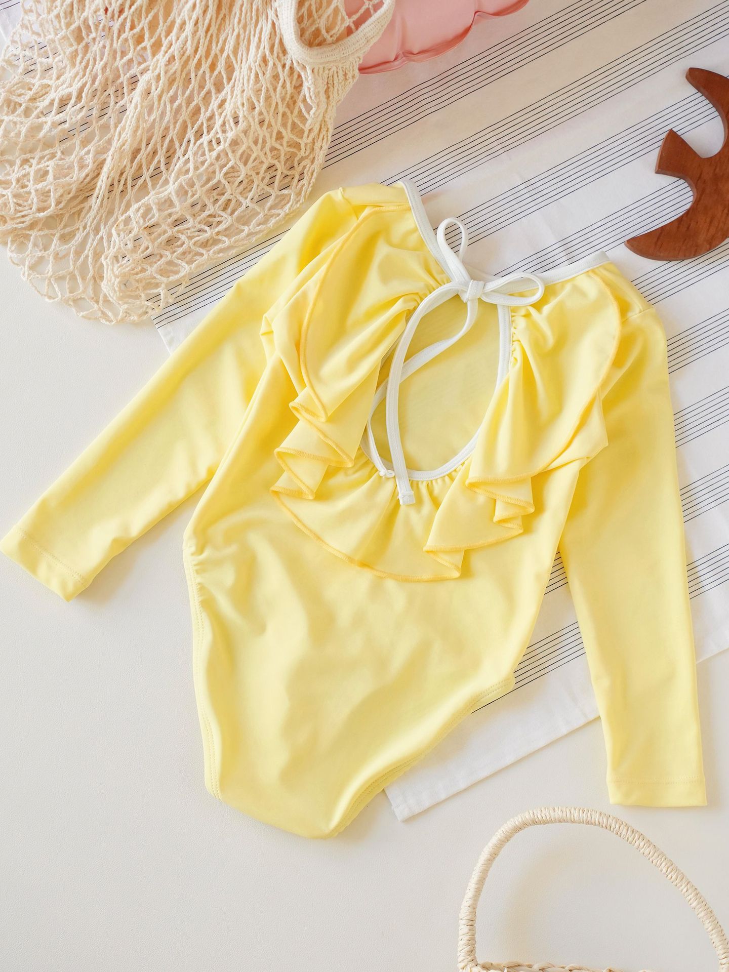 • POM 레이스 수영복 레몬옐로우 [수영복+수영모]