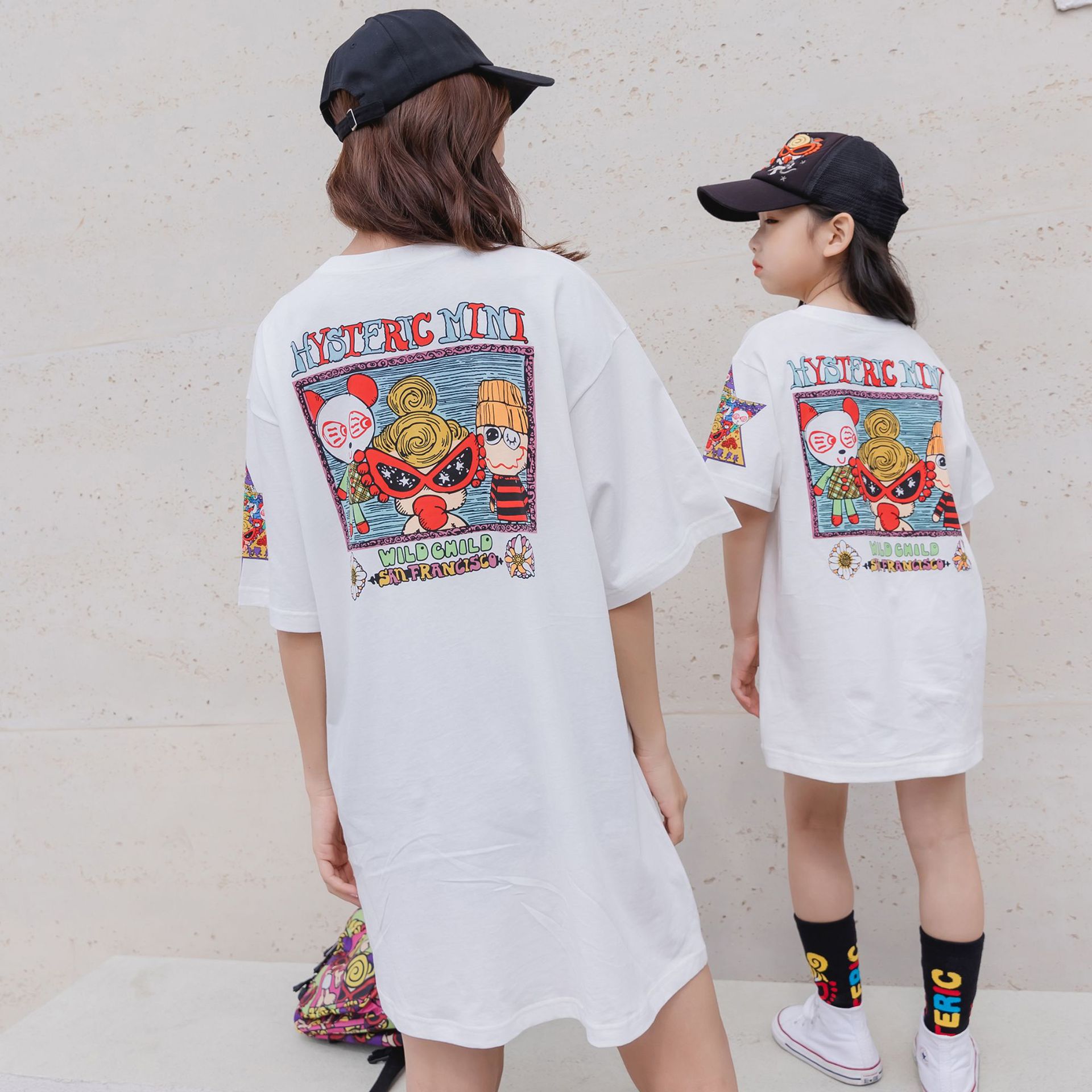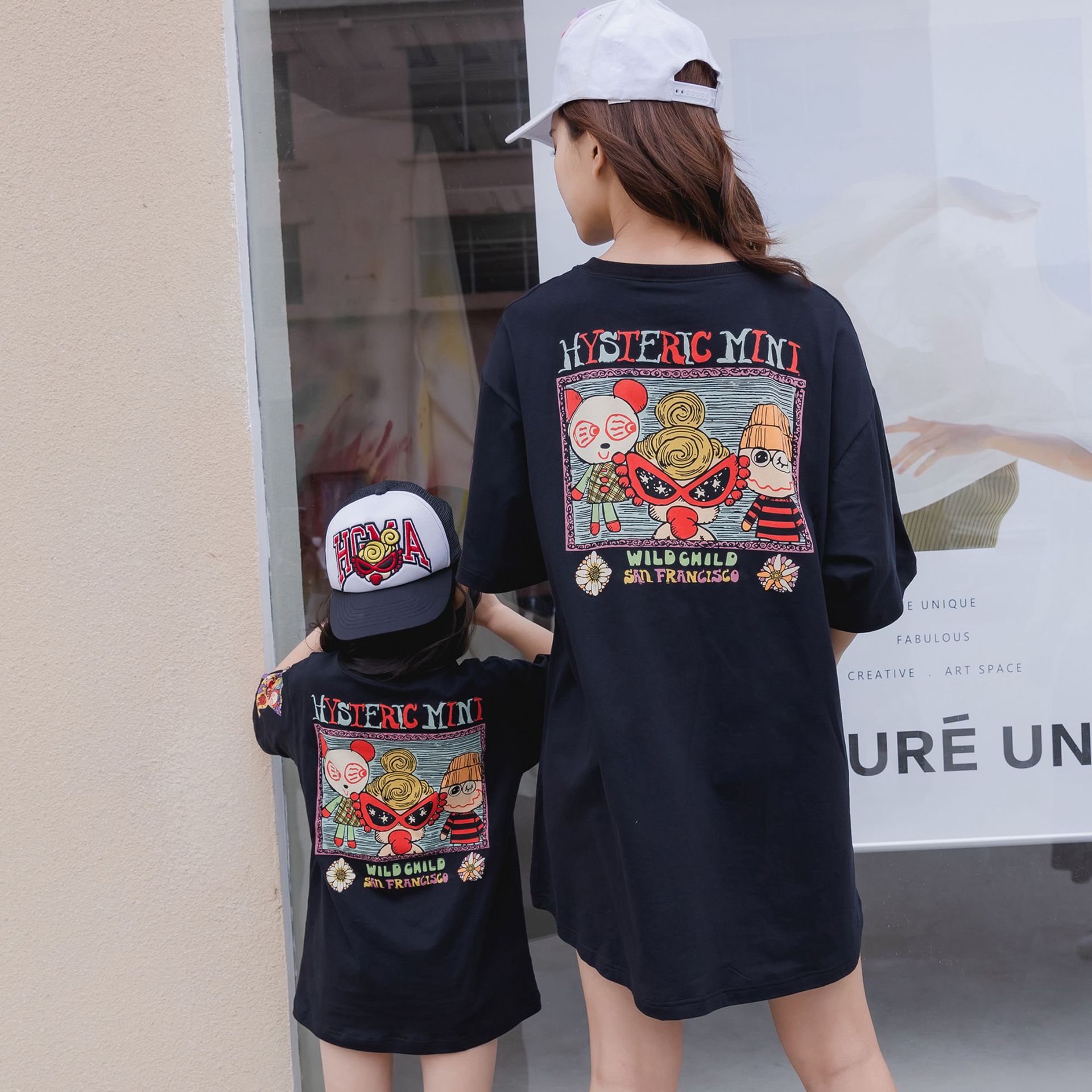 [재고] 가오 딩 블랙 슈퍼 25 여름 만들기 패턴 소년과 소녀 순수 면 부모-아이 반팔 티셔츠