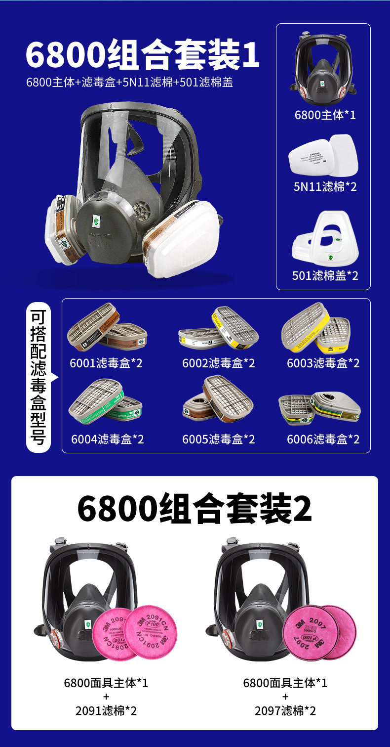3M6800 가스 마스크 산업 화학 살충제 페인트 연마 특수 방진 및 독성 전면 보호 마스크스토어 가기