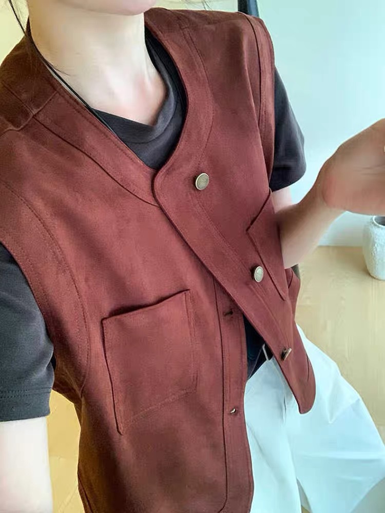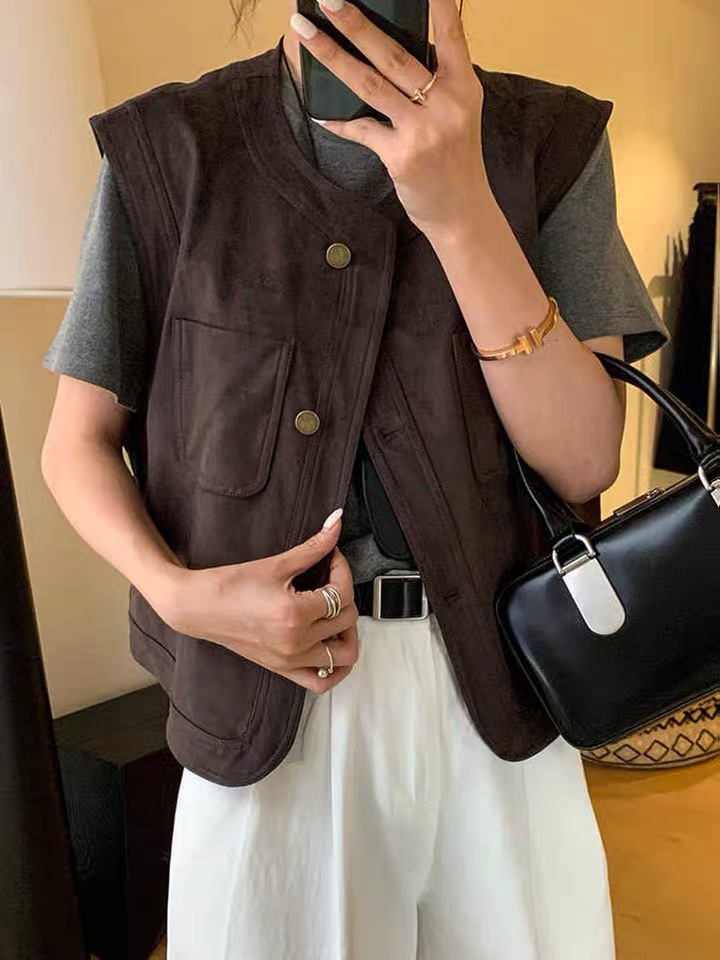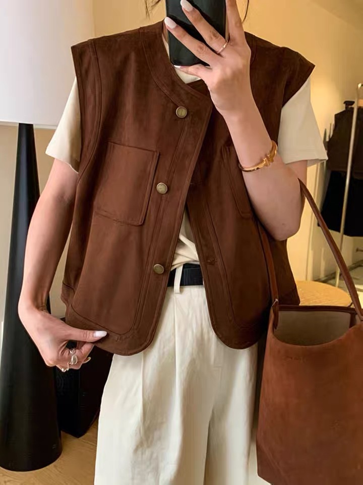 유럽풍 스웨이드 여성 봄 가을 패션 아우터 조끼 베스트 여성 레이어드 민소매 캐미솔 탑 유럽 및 미국 스타일스토어 가기