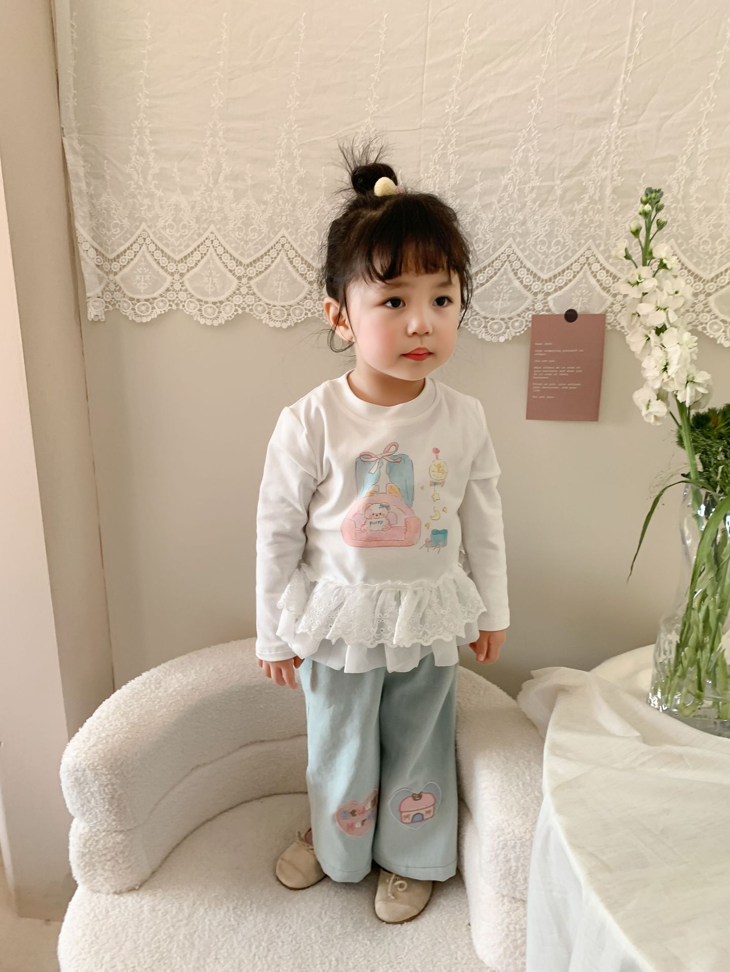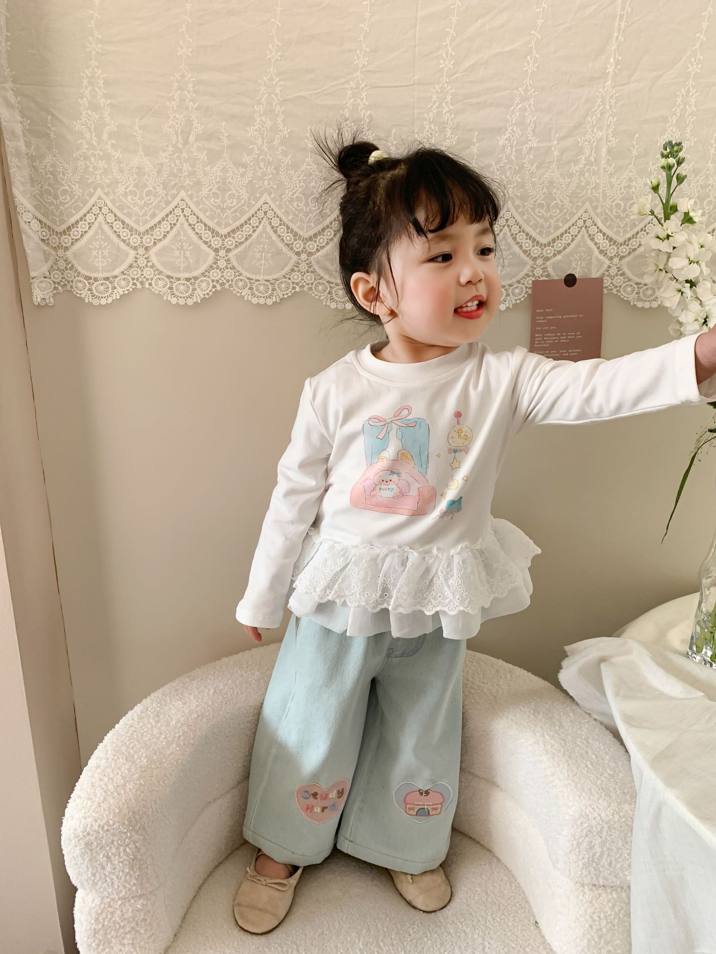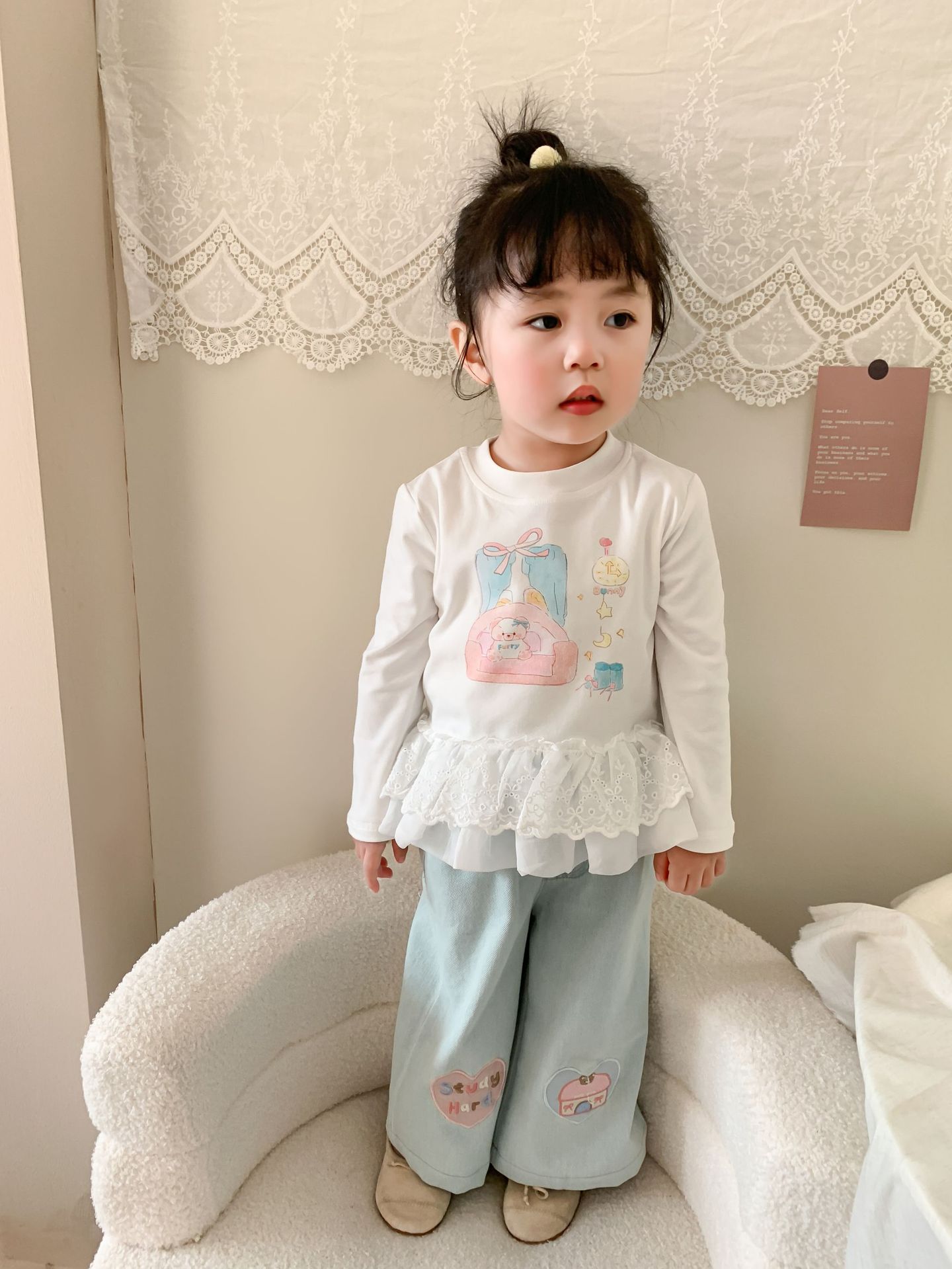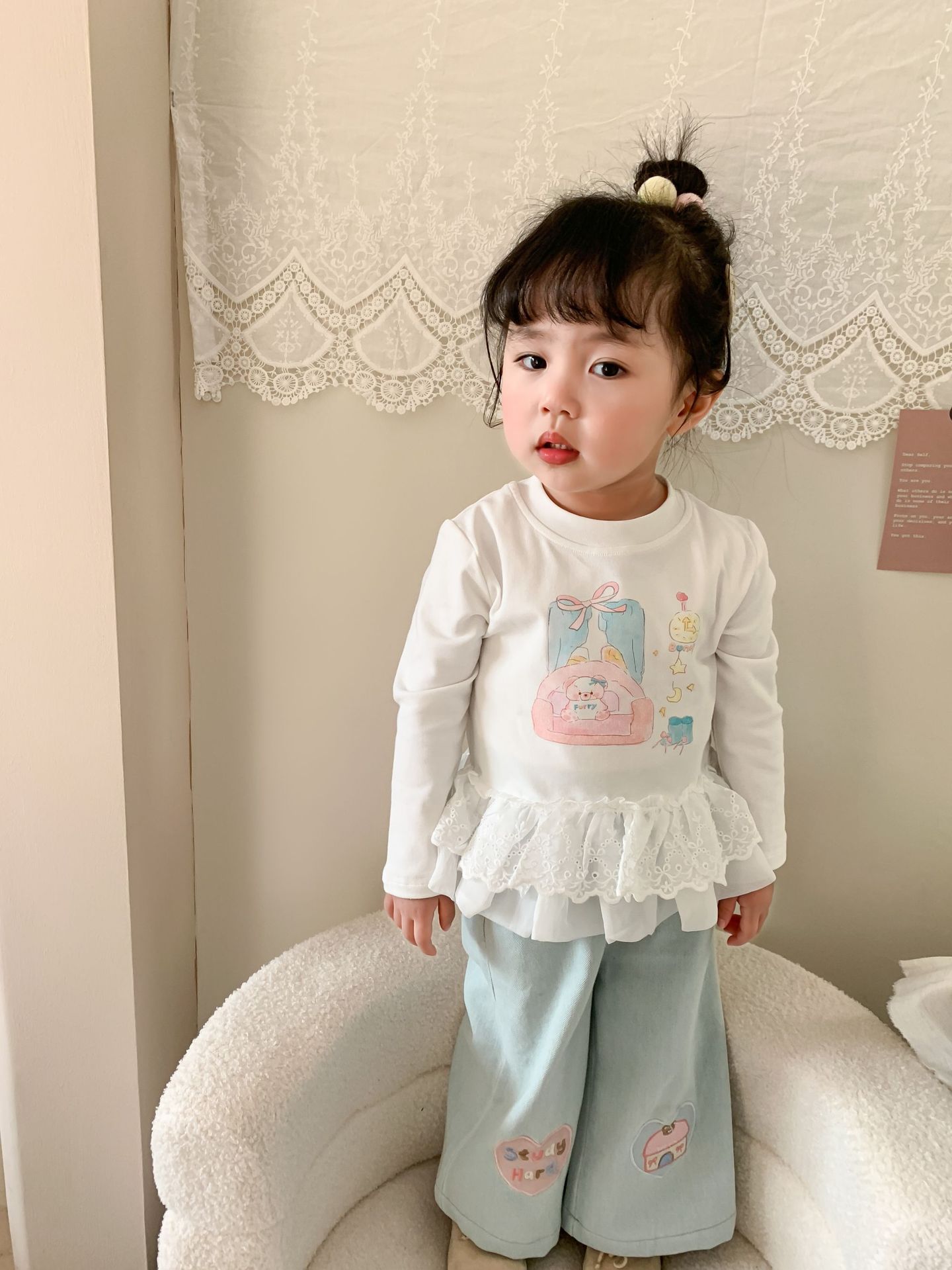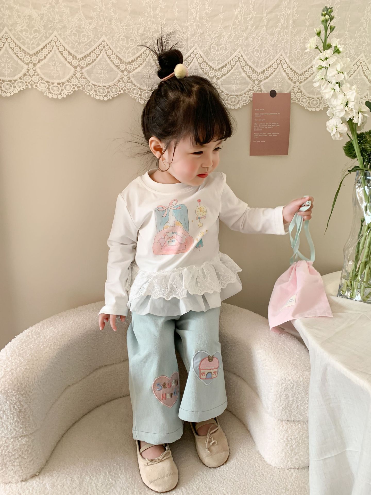 사탕 수수 배 아동복 소녀 청바지 2025 봄 새 어린이 한국 스타일 캐주얼 바지 바지 바지 아기 바지스토어 가기