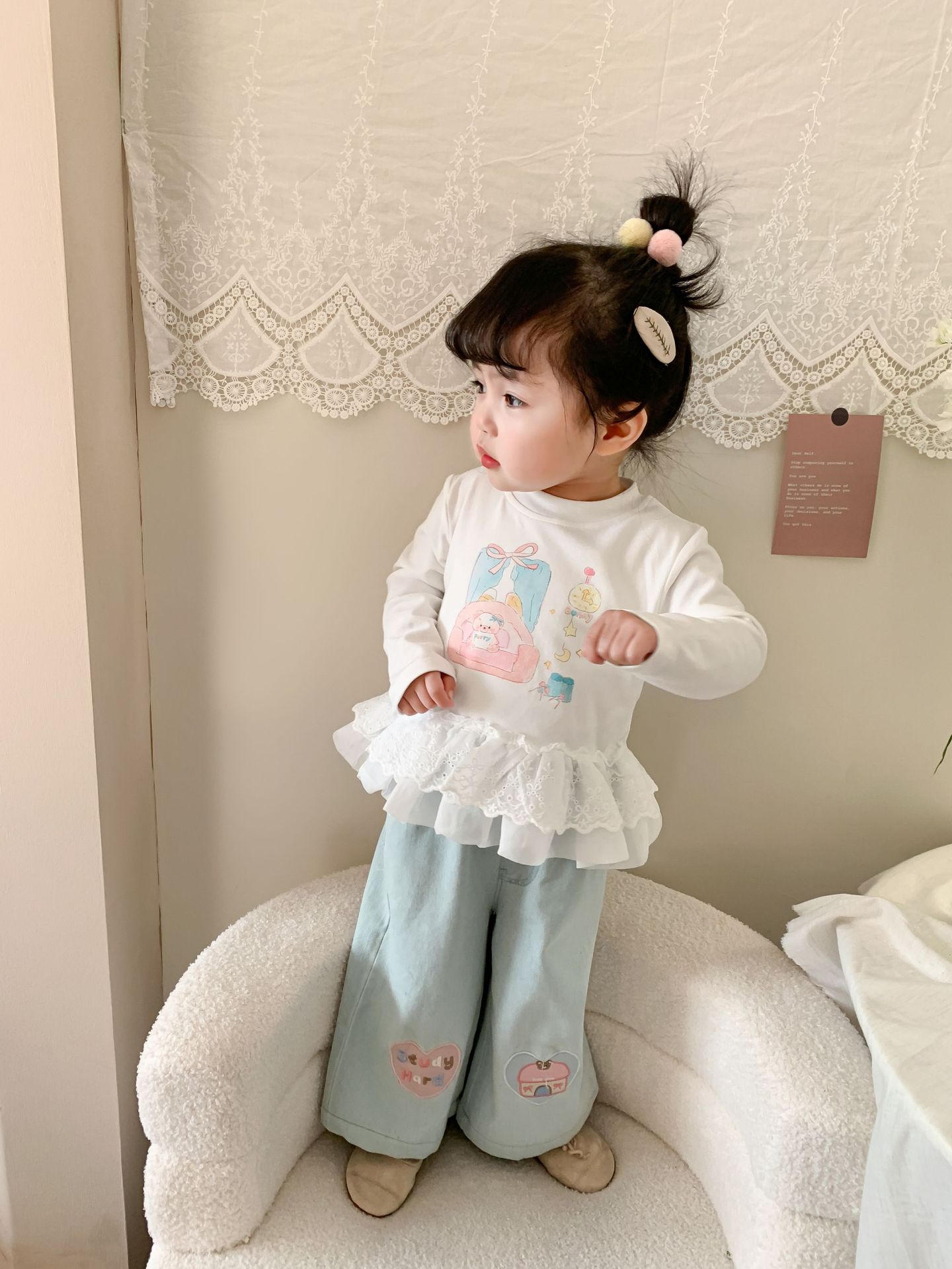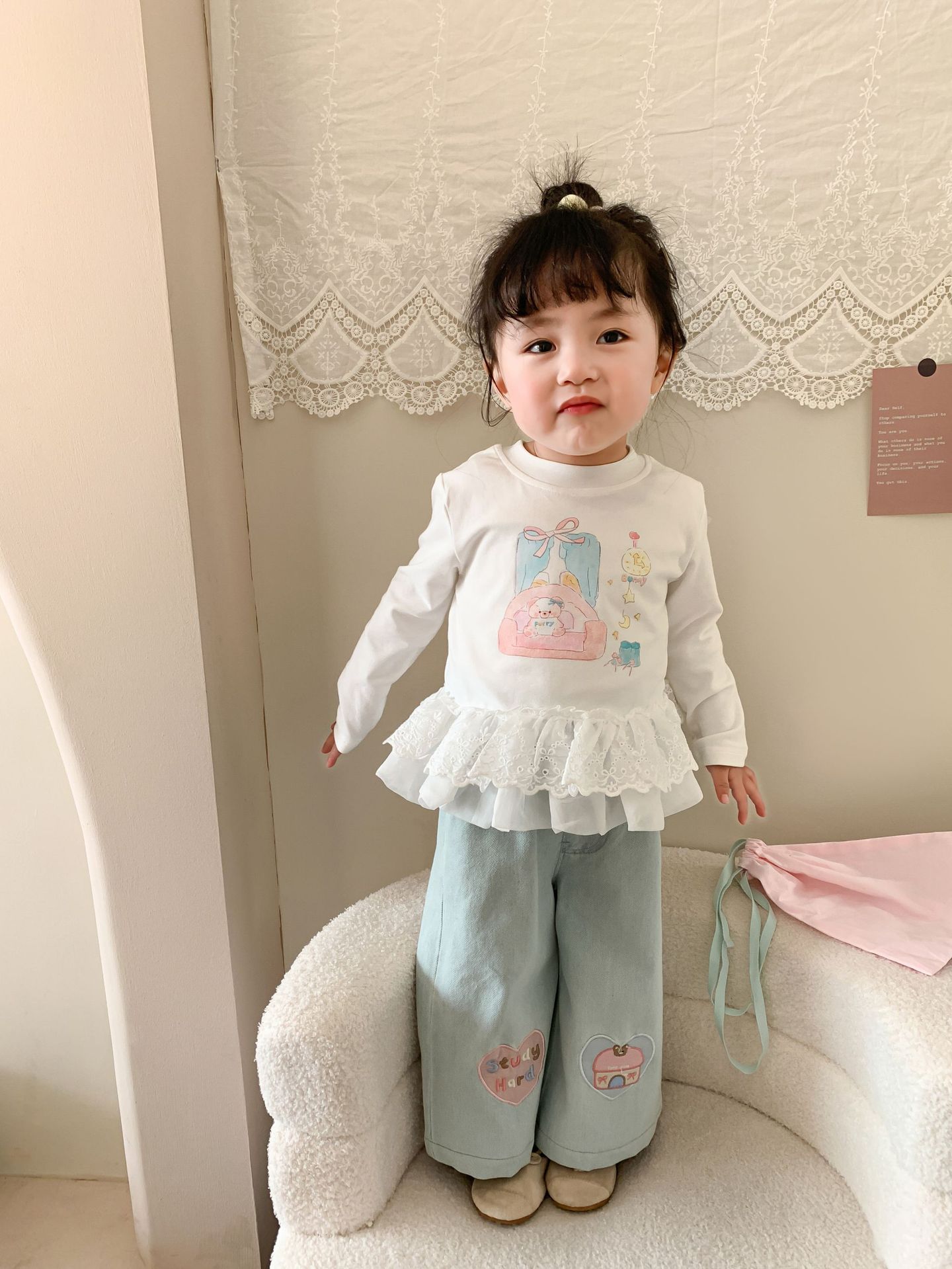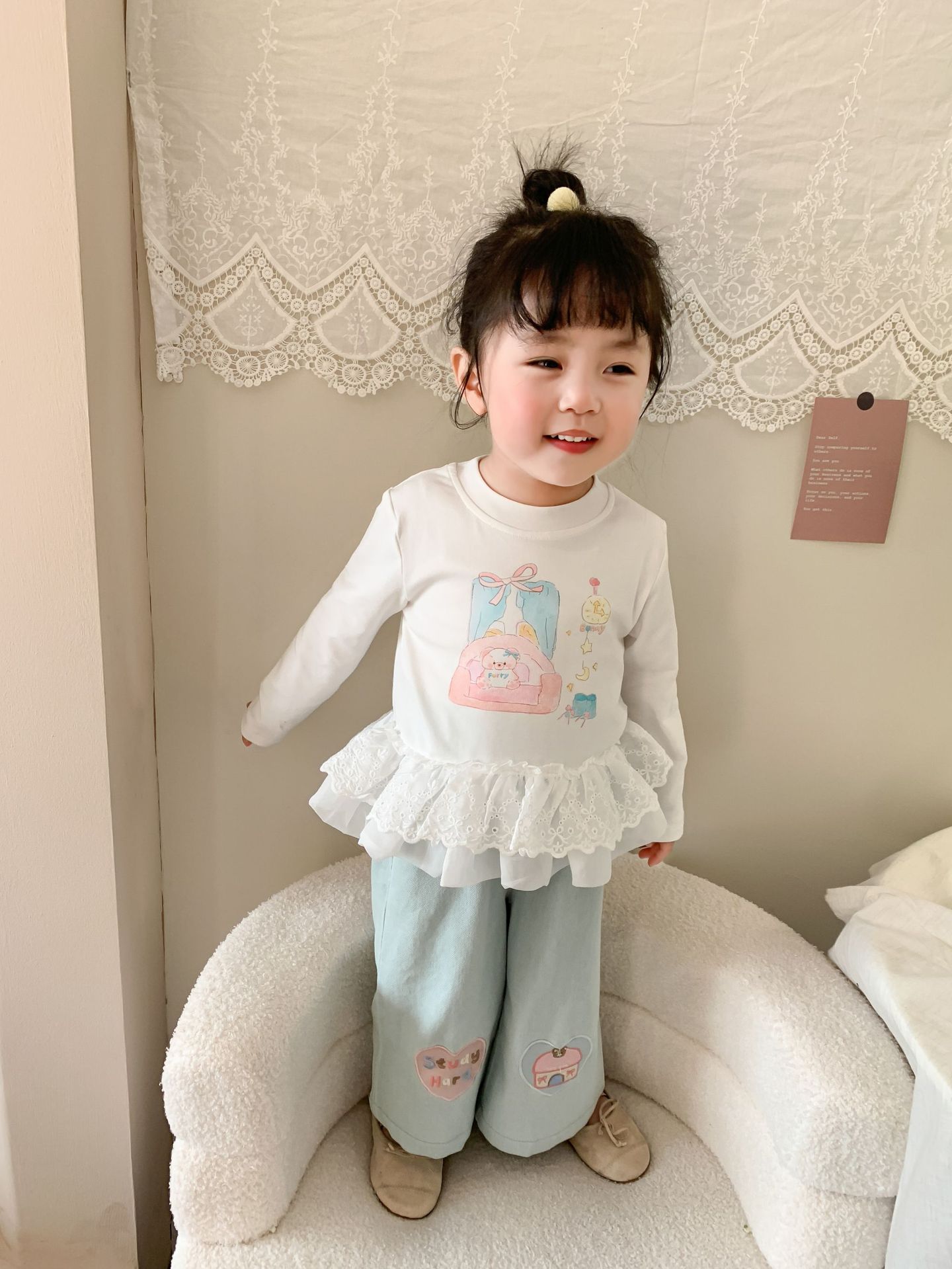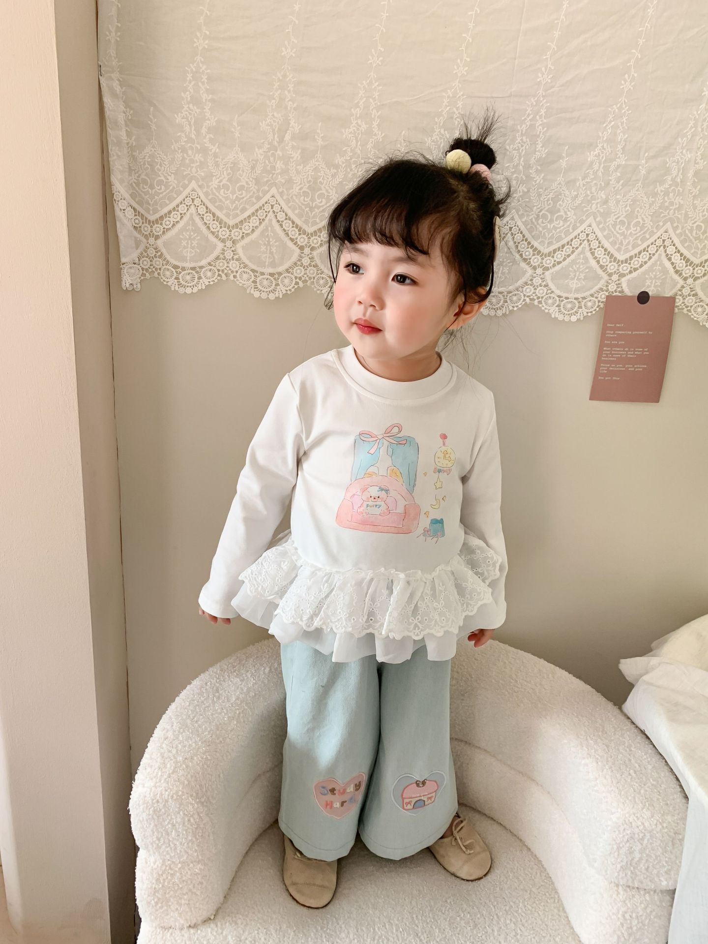 사탕 수수 배 아동복 소녀 청바지 2025 봄 새 어린이 한국 스타일 캐주얼 바지 바지 바지 아기 바지스토어 가기