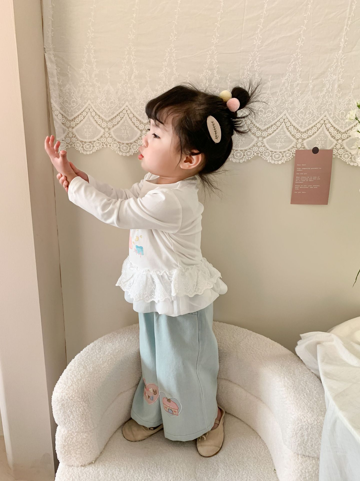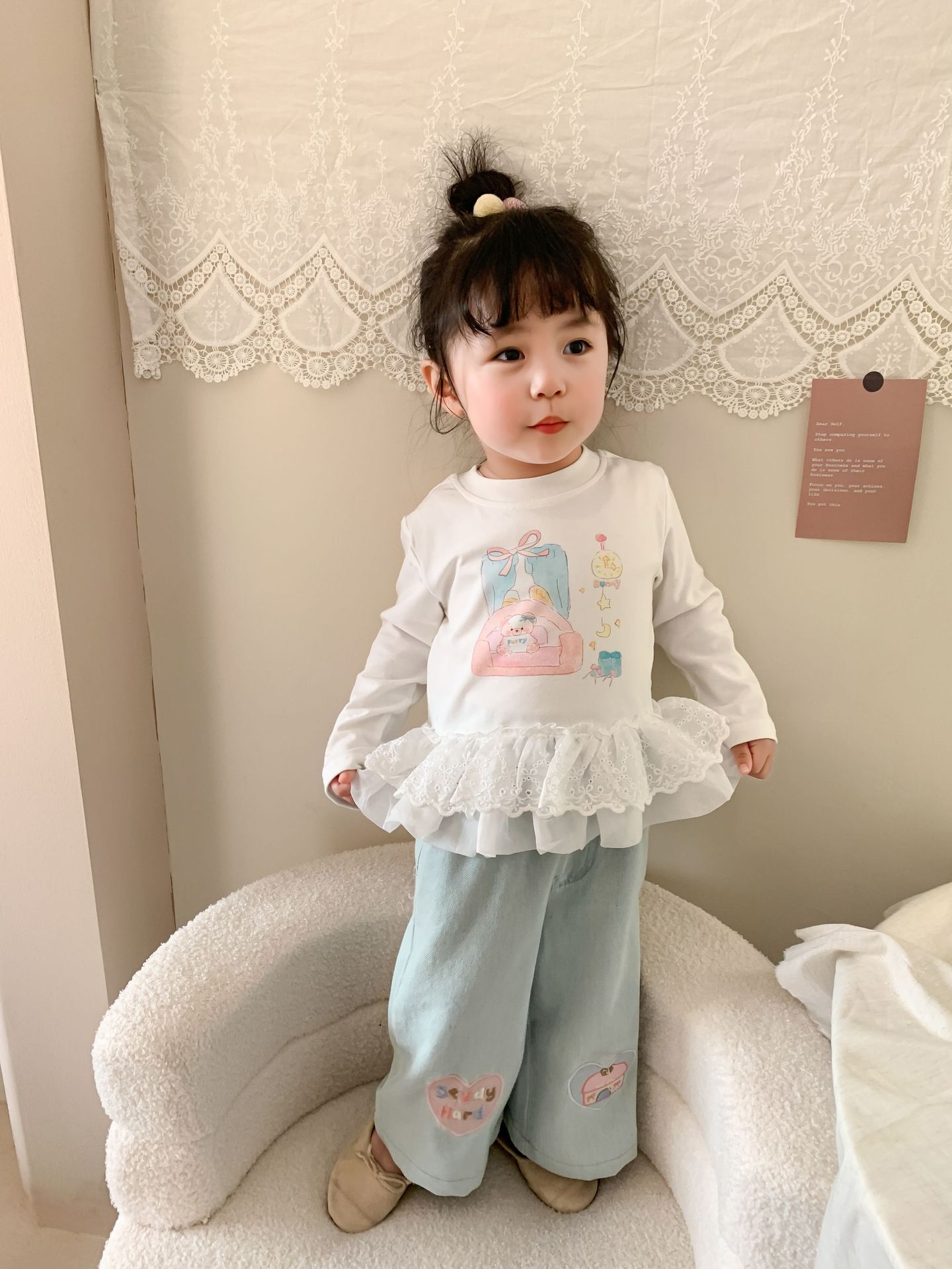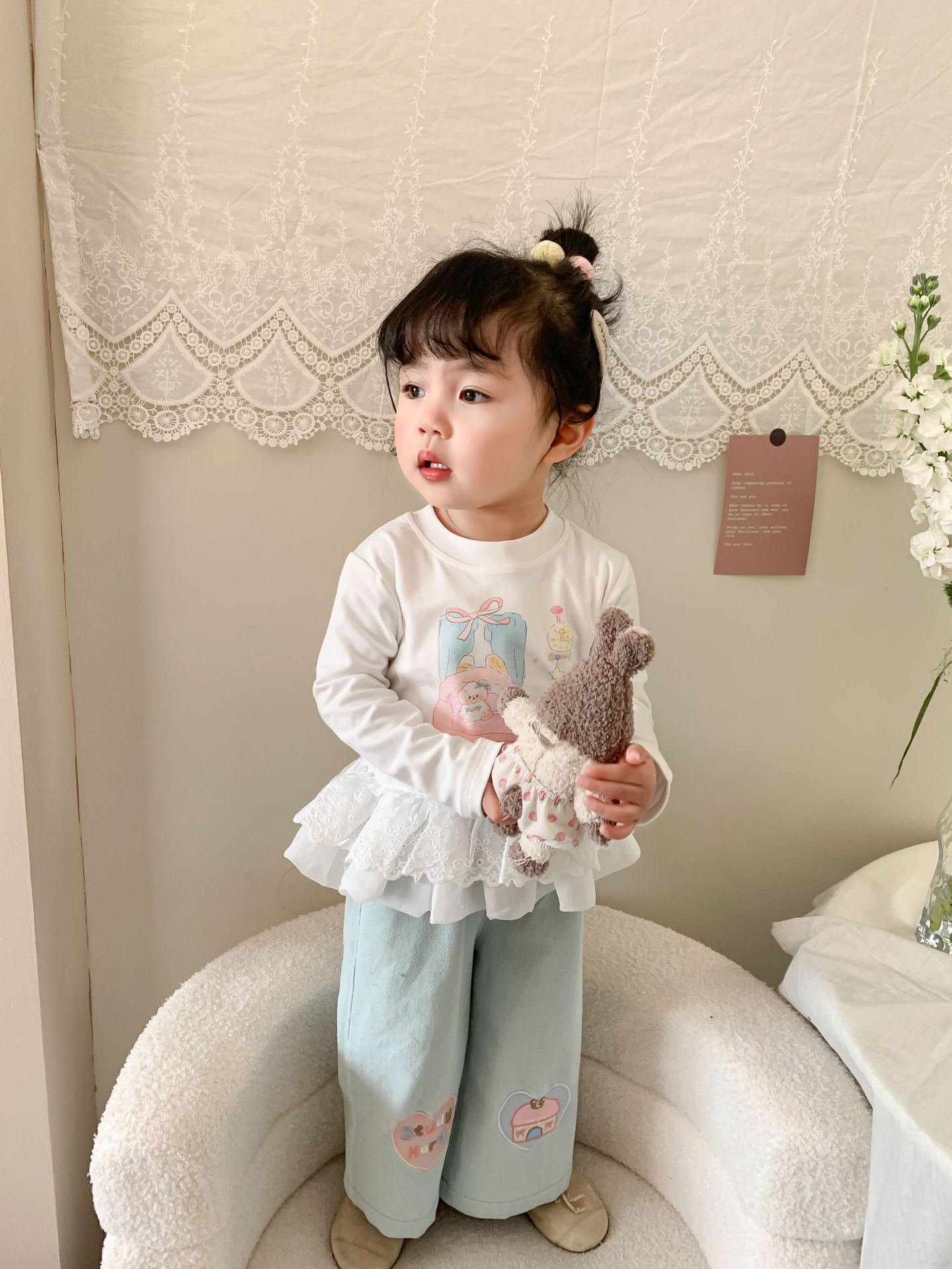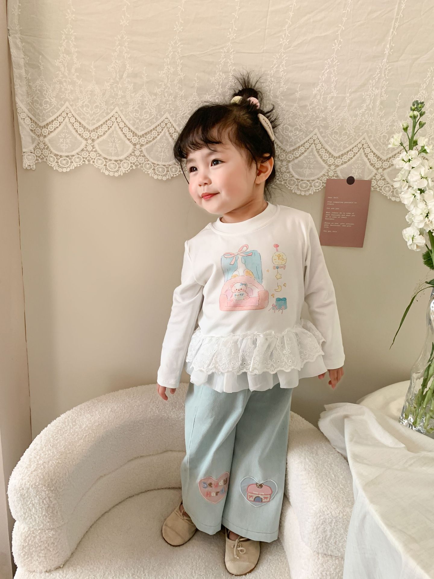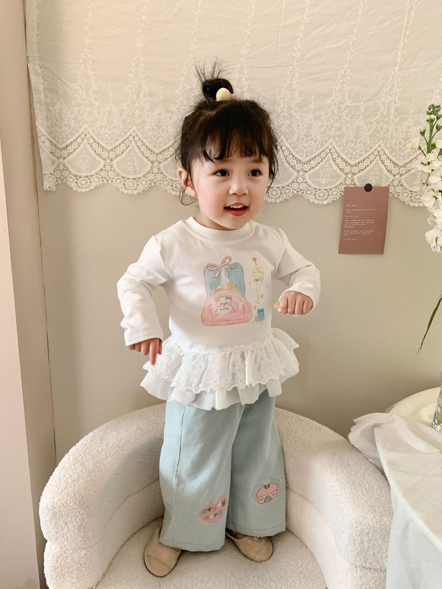사탕 수수 배 아동복 소녀 청바지 2025 봄 새 어린이 한국 스타일 캐주얼 바지 바지 바지 아기 바지스토어 가기