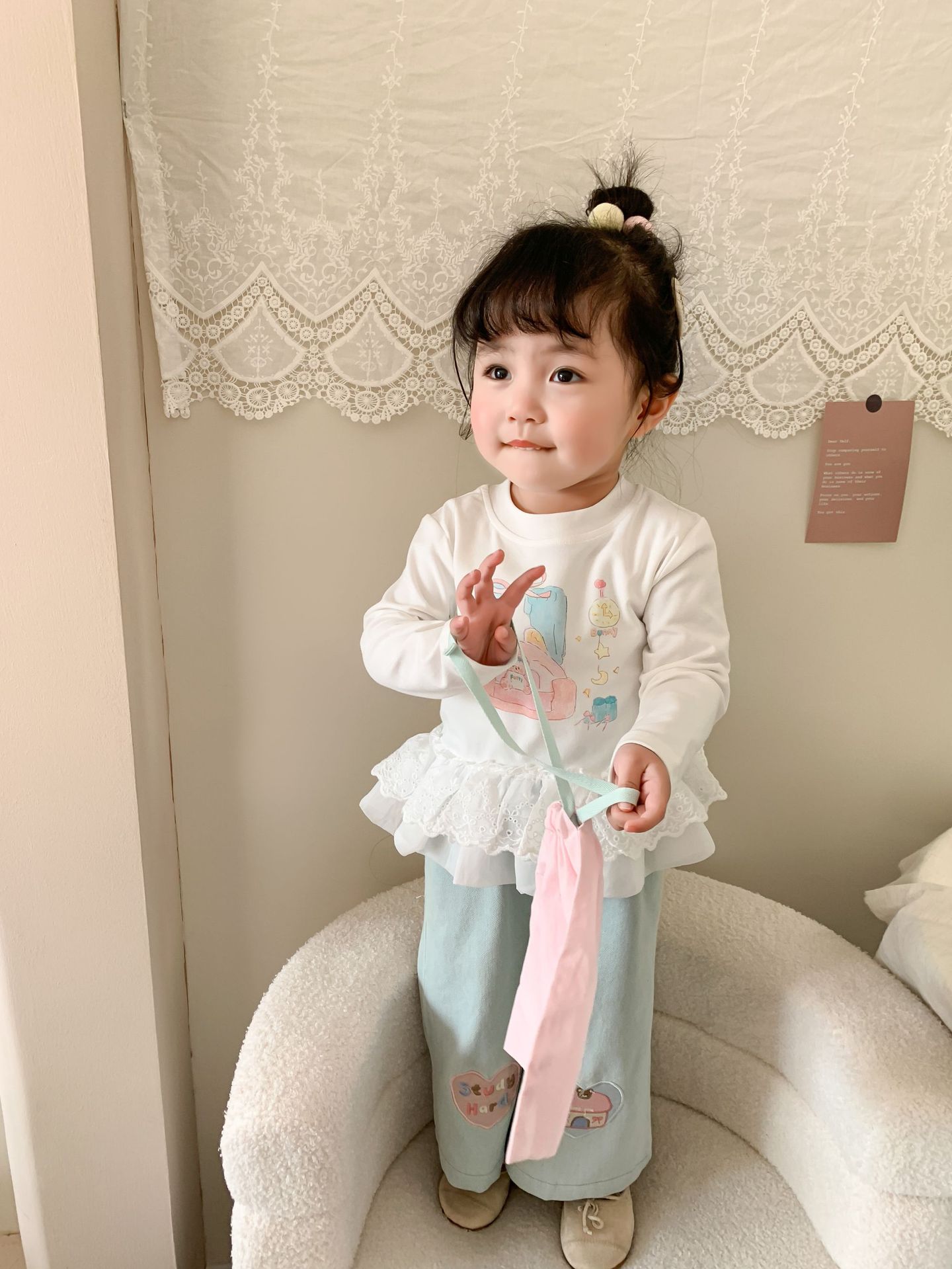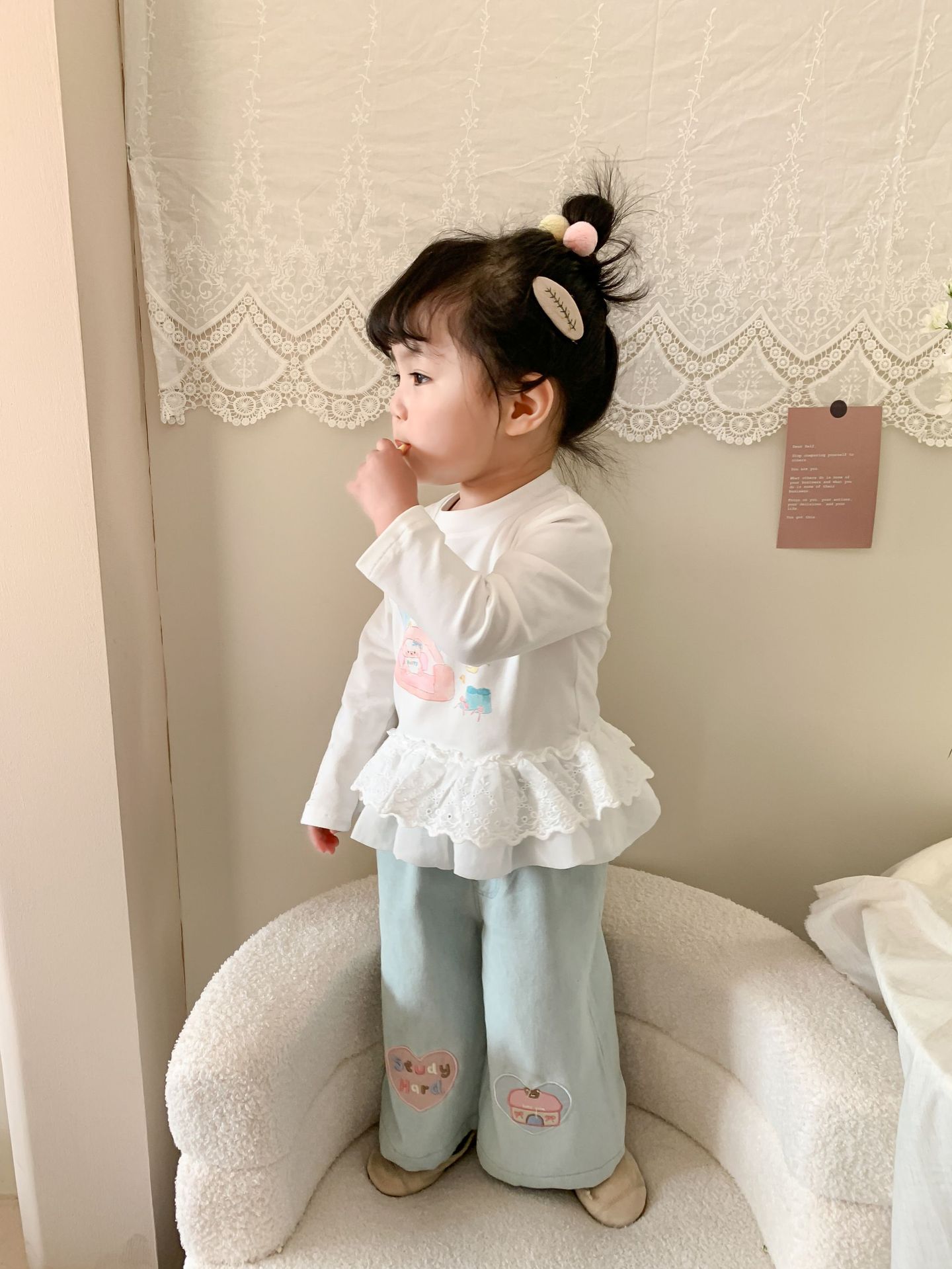 사탕 수수 배 아동복 소녀 청바지 2025 봄 새 어린이 한국 스타일 캐주얼 바지 바지 바지 아기 바지