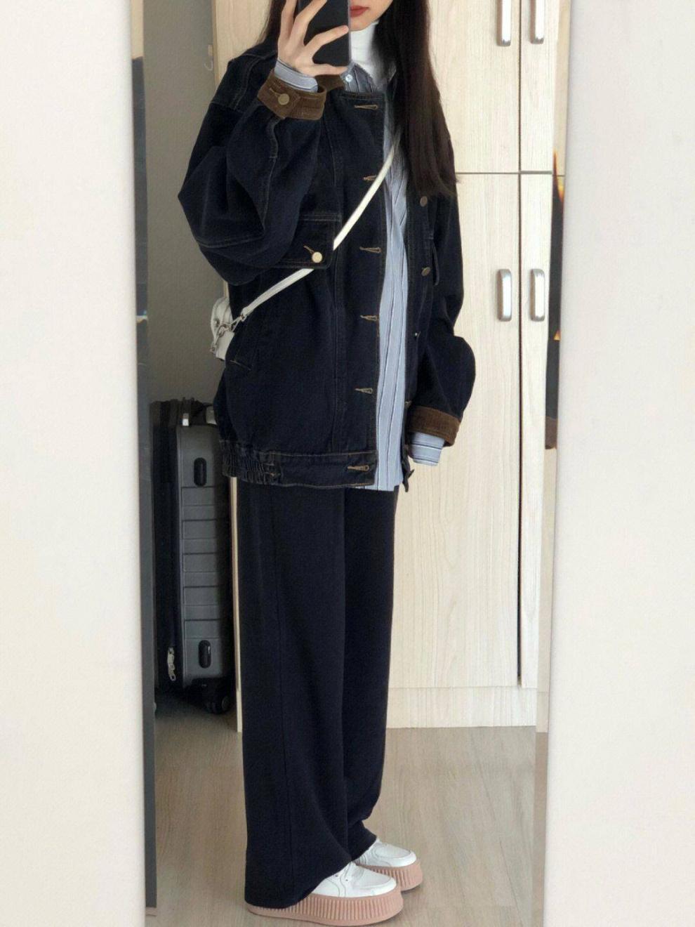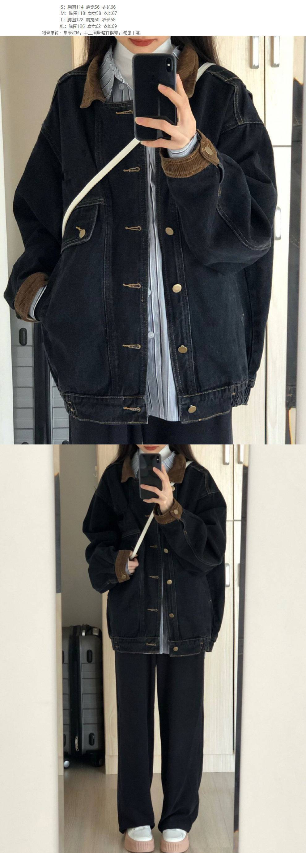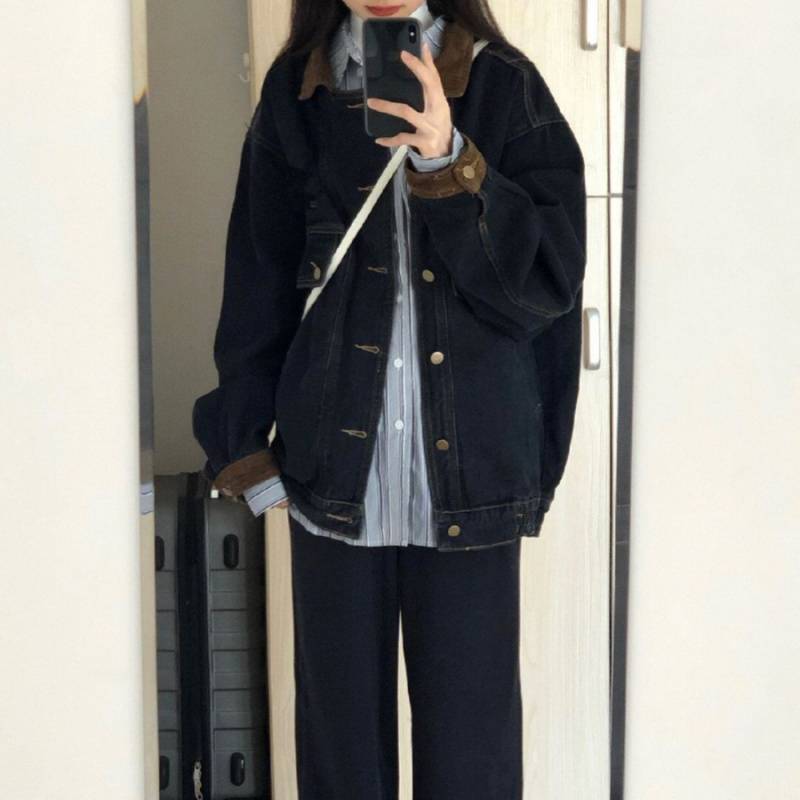 블랙 데님 코트 여자 봄 2025 새로운 도착 레트로 홍콩 스타일 디자인 틈새 한국 루즈 재킷 탑