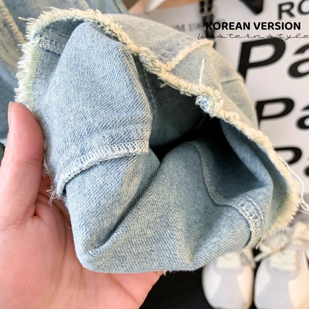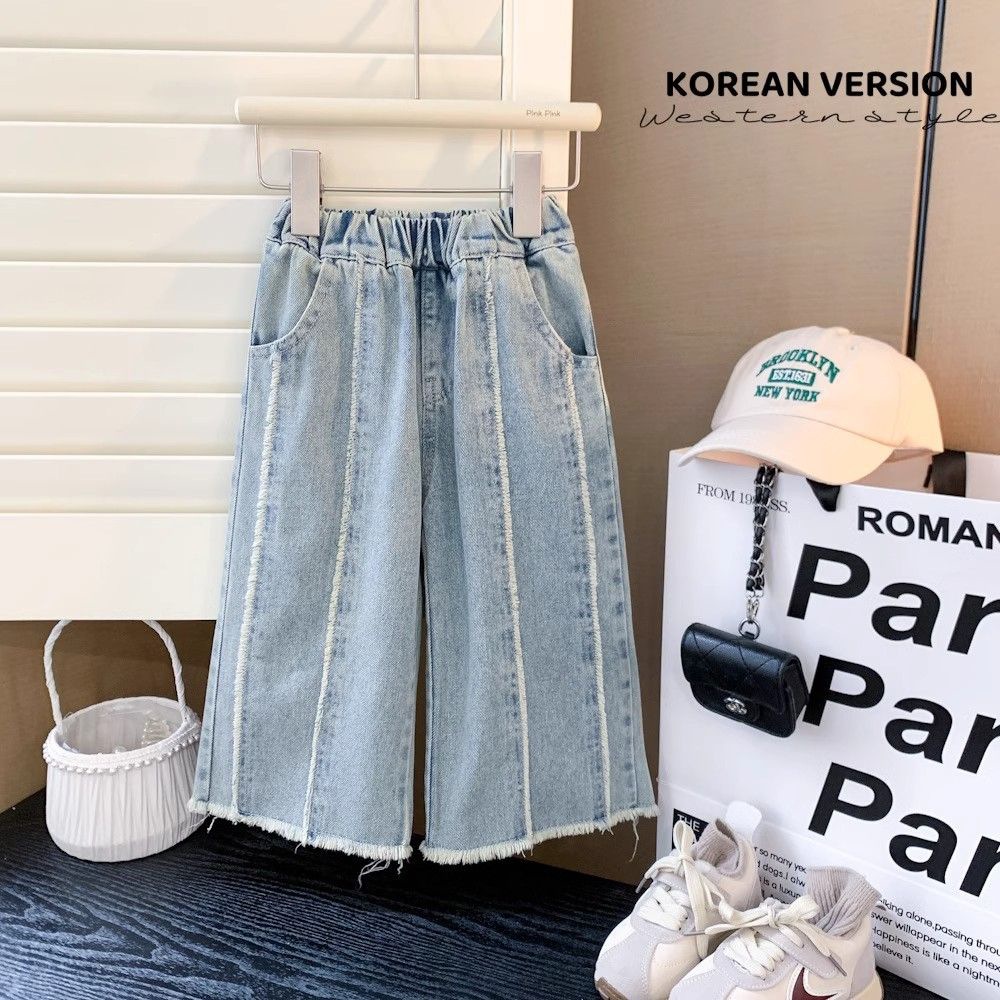 봄과 가을 소녀 청바지 아기의 서양식 어린이 성격 유행 한국 스타일 유행 바느질 레드 인터넷 인기 와이드 레그 바지스토어 가기