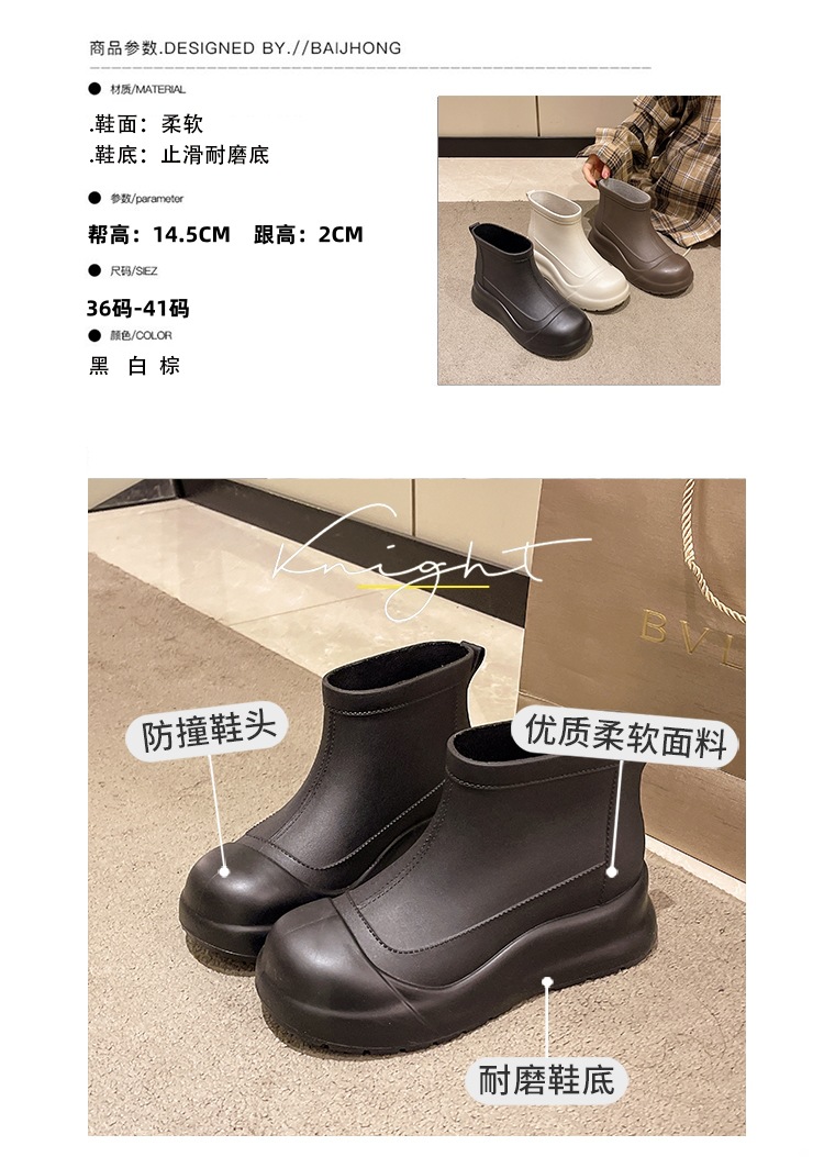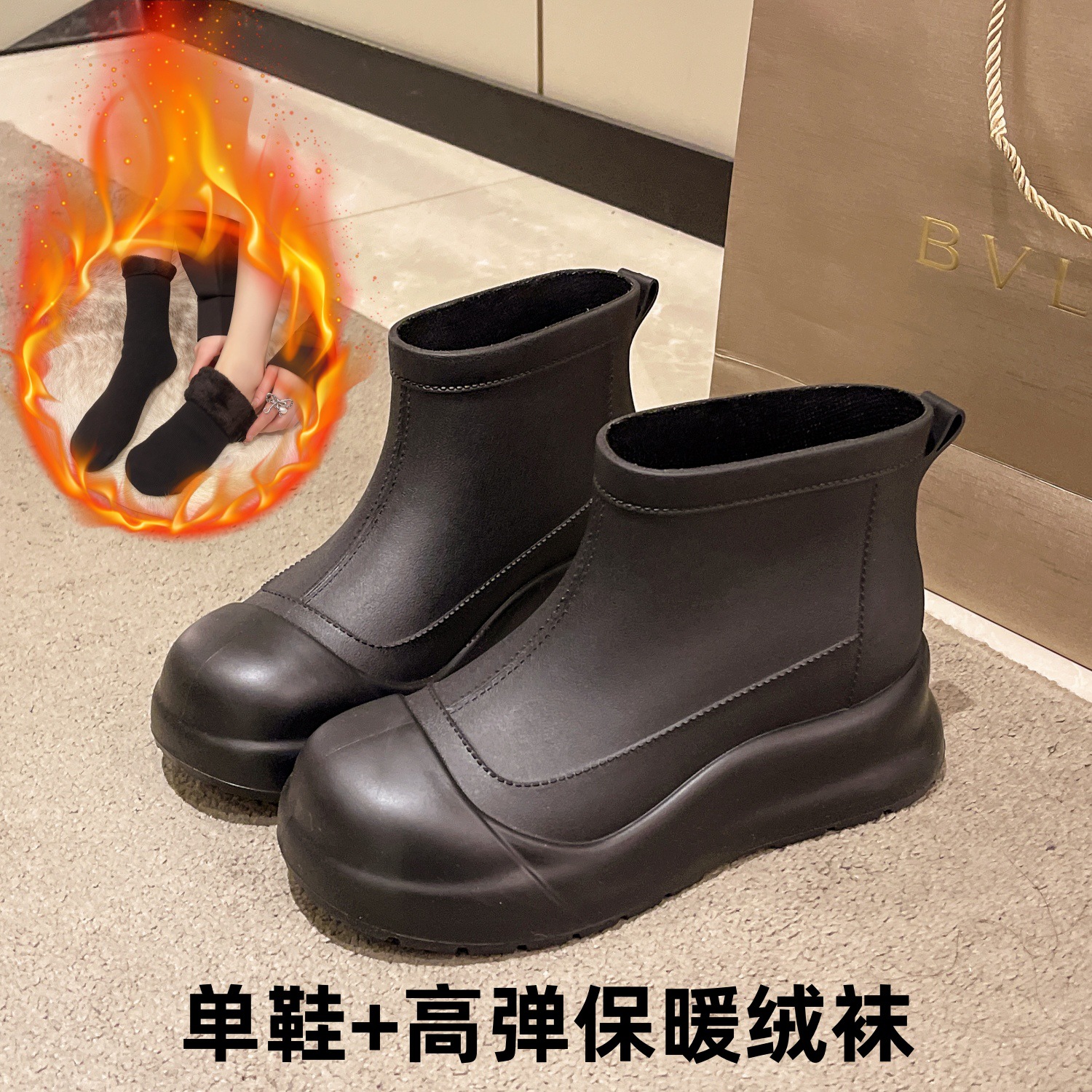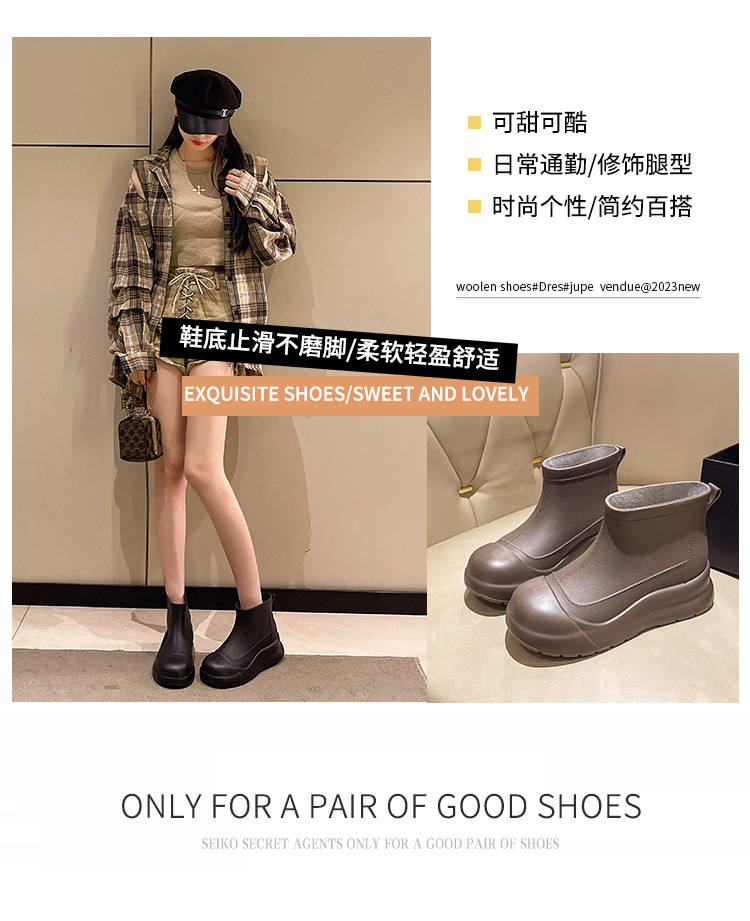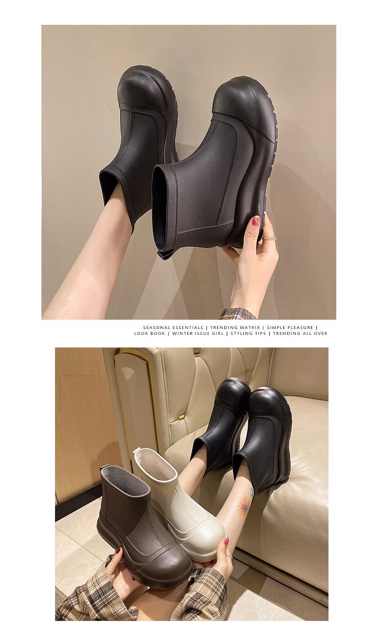 새로운 장화 여성 패션 짧은 튜브 여성용 장화 경량 외부 착용 방수 신발 주방 작업 비 슬립 고무 신발 여성