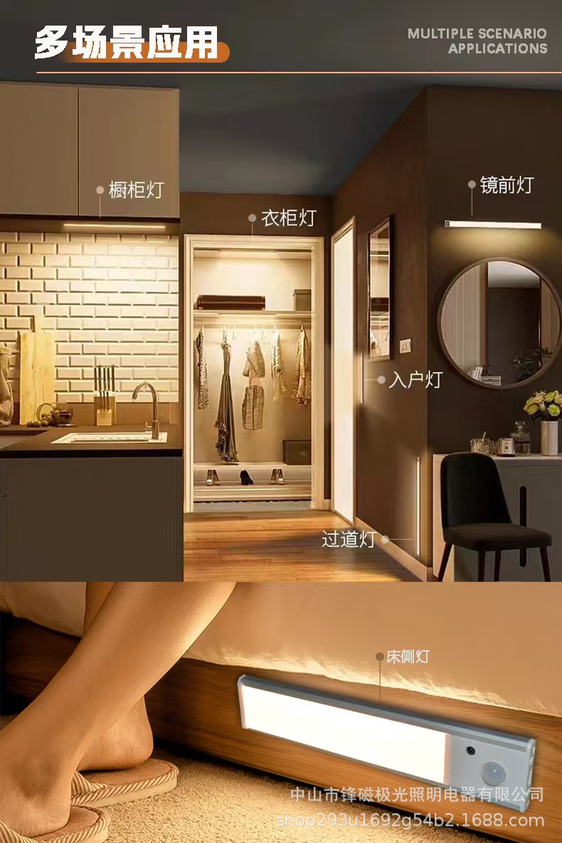 인체감지 옷장등, 센서 충전식 옷장/캐비닛 초슬림형 롱 스트립 야간등, 리모컨 스마트 디밍스토어 가기