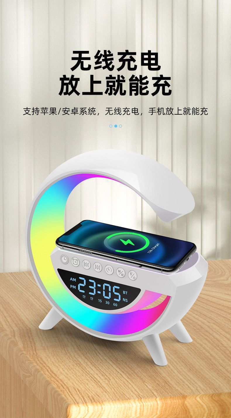 국경을 넘는 인기상품 G 블루투스 스피커 3401 다채로운 조명 스피커 알람시계 음악 데스크탑 다기능 무선충전 USB스토어 가기